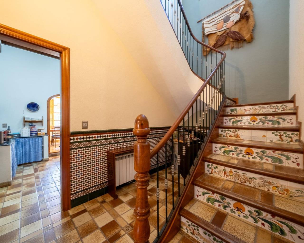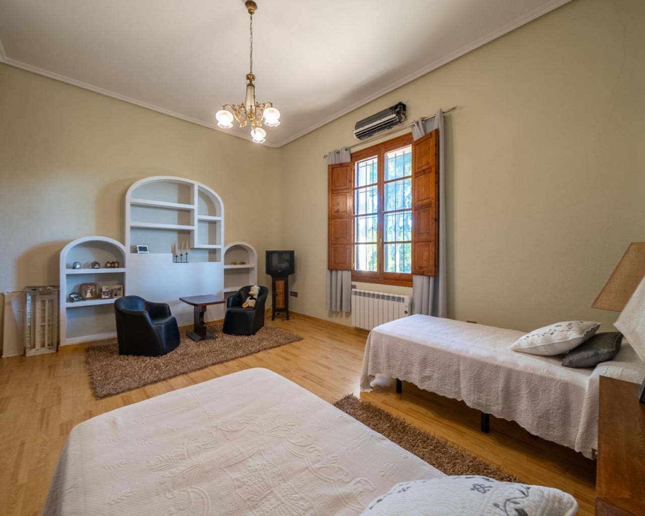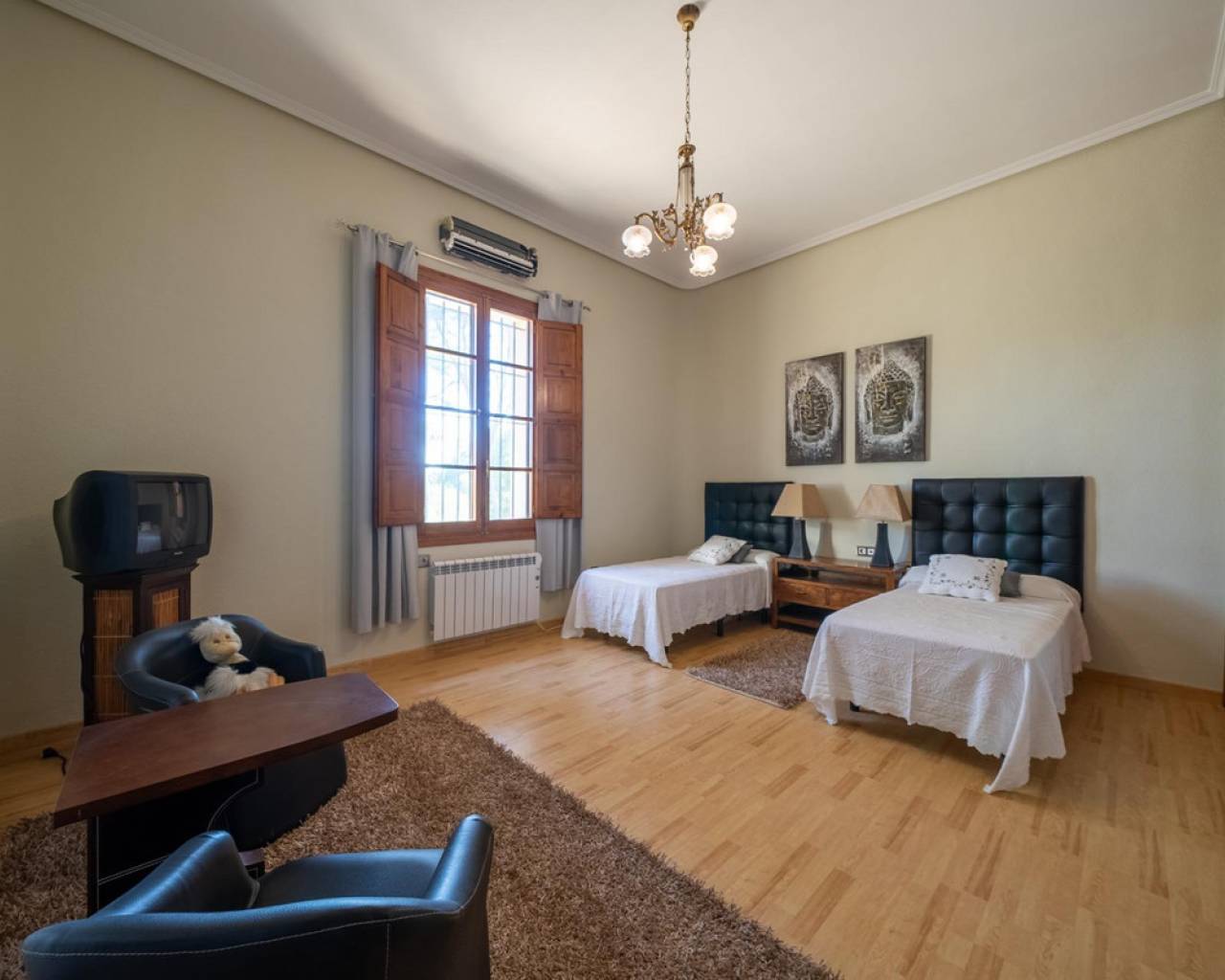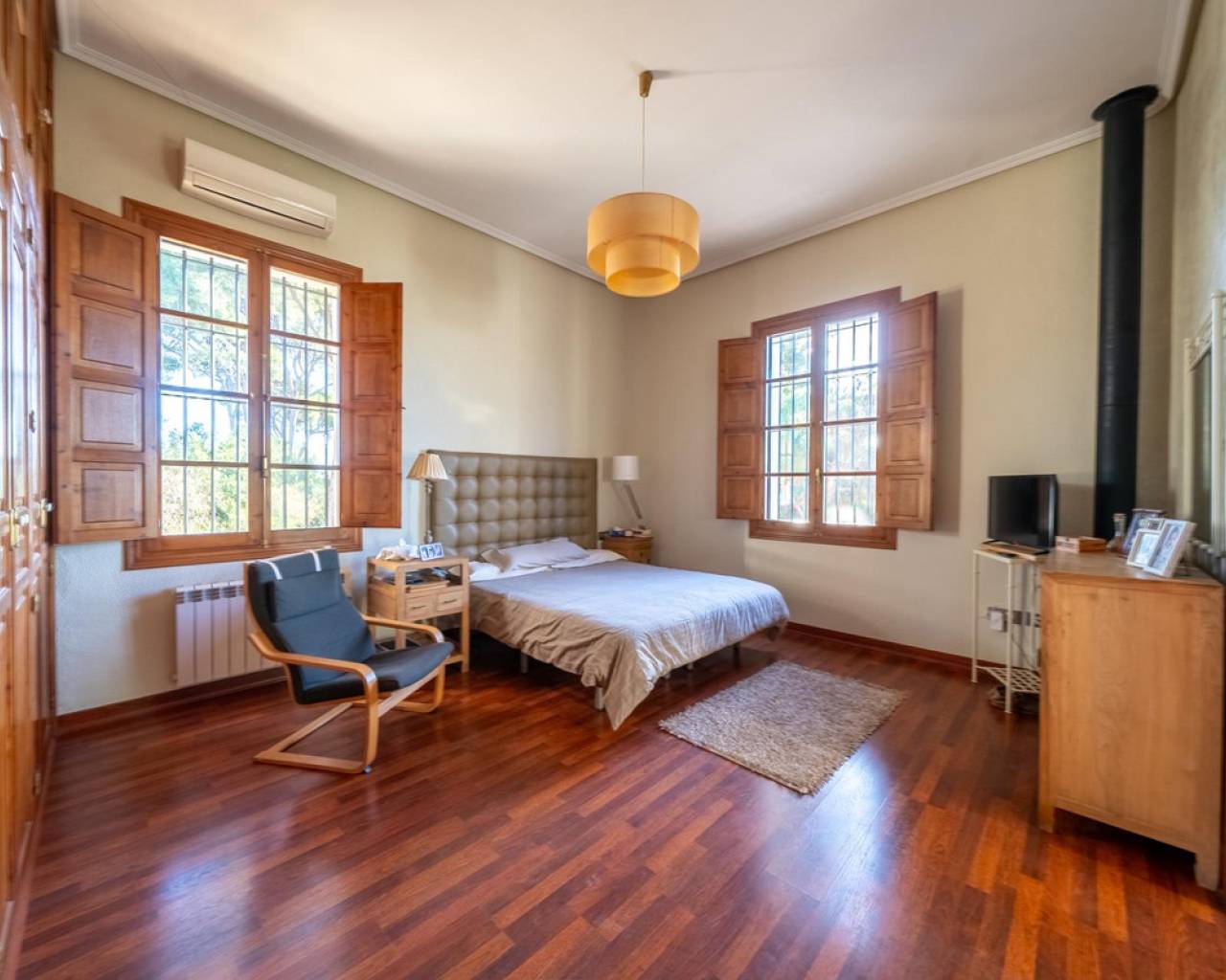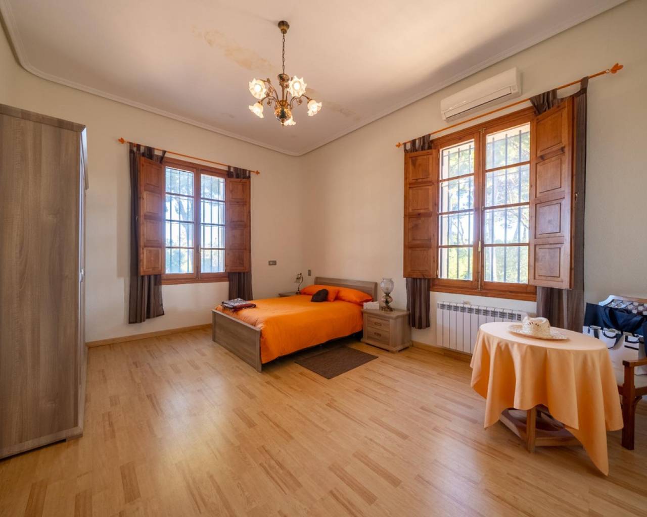 Discover this wonderful rustic house that looks like an oasis, located in Mutxamiel, just 10 minutes by car from Playa San Juan. It offers you a unique lifestyle in the middle of nature. With a total built area of ​​all facilities of 1350 m², located on a large plot of 35,000 m², this home has everything you need to enjoy comfort and relaxation. The property has a main house with 5 bedrooms, 3 bathrooms, one en suite and 1 office, 3 rooms that can be converted and used for any purpose. A cozy living room with a fireplace and a large, well-equipped kitchen. A terrace on the porch with about 90m2 offers views of the wonderful, well-kept garden. Guest house offers 2 bedrooms, a living room, a kitchen, 1 bathroom and 3 rooms for any use and that can be accommodated both as bedrooms and as spaces for other uses. The style of the house is unique, traditional colonial that offers a very cozy and unforgettable atmosphere. It also includes extras such as air conditioning, heating with electricity. The additional spaces are equally surprising: private HEATED swimming pool with a cover for the winter, gym, jacuzzi, Turkish sauna, impressive barbecue area, a wine cellar, storage and workshop, organic garden area and farm with its own well for irrigation to keep the oasis in good condition. Extensive plantations of olive, lemon and orange trees. The property is in perfect condition, all outdoor areas are well maintained by professionals. Location: 5 minutes from local schools, supermarkets and children's areas making it ideal also if you have children. It also has covered parking for 3 cars, security cameras etc., ensuring daily tranquility. Welcome those who seek to be part of this exclusive urbanization full of urban service! Do not miss the opportunity!