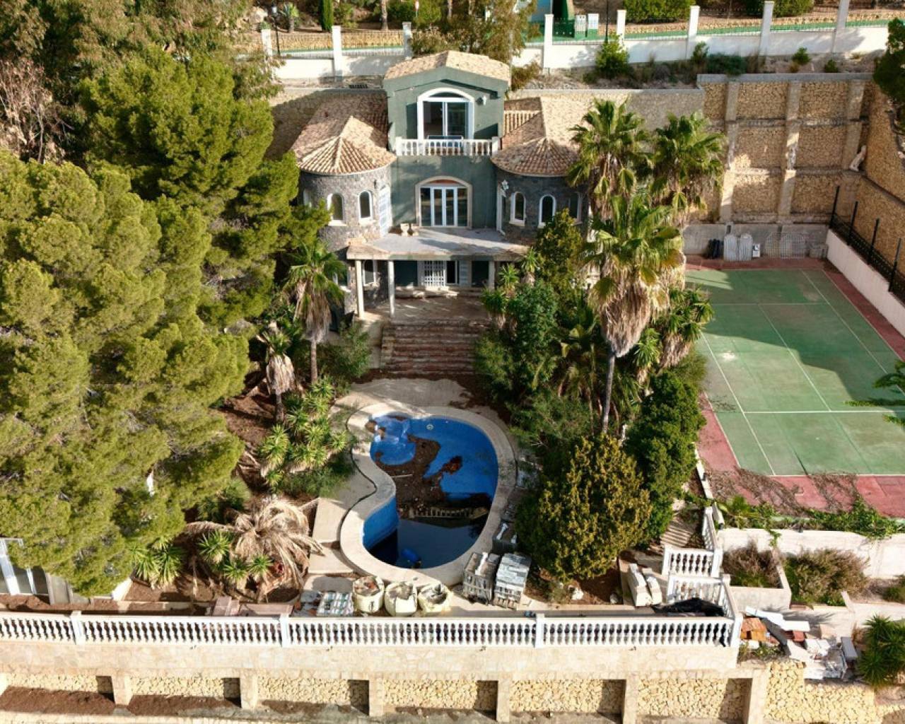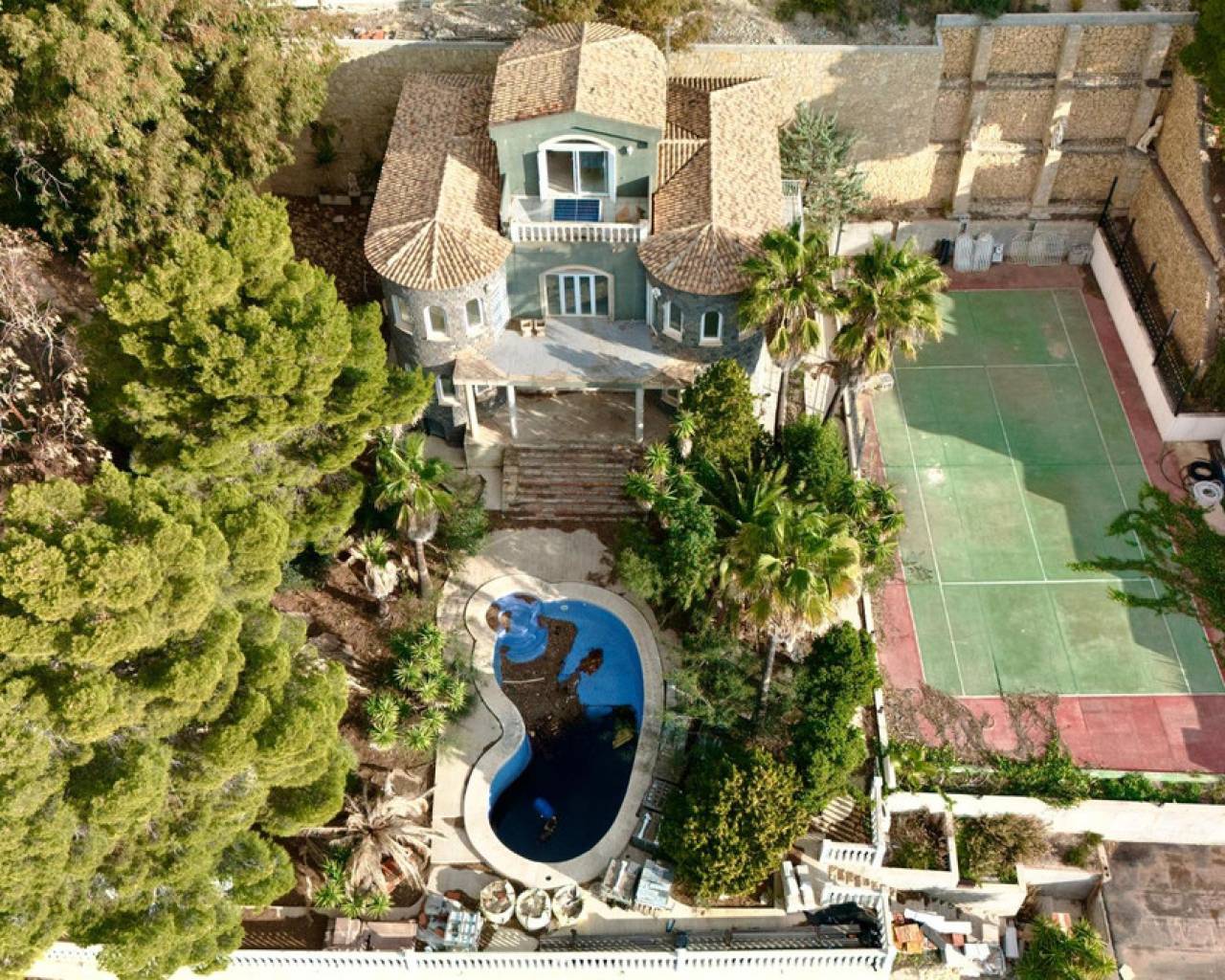 Discover luxury at its finest in the prestigious Altea Hills Urbanization, a unique location in Altea, Alicante. With the Mediterranean Sea as a backdrop and the Sierra Bernia embracing its surroundings, this property redefines the concept of exclusivity in pure Mediterranean style.The PropertyThis magnificent independent villa, distributed over two floors and with a surface area of 605 m² built (600 m² usable), is situated on a spacious plot of 1,733 m². Currently undergoing a full renovation, it offers you the opportunity to customize every detail to suit your needs and lifestyle.It features four spacious bedrooms, three modern bathrooms, a large and bright terrace facing south and east, and a garage space included in the price.Dream Outdoor SpacesHighlights of the property:Private pool to enjoy the Mediterranean sun.Landscaped gardens designed for tranquility and natural beauty.Multi-purpose sports court, perfect for football, tennis, basketball, or any activity of your choice.From its expansive terraces, you can delight in breathtaking views of the Bay of Altea and the Marina Baixa mountains, creating unforgettable moments with family and friends.Exclusivity and SecurityAltea Hills is renowned as one of the most exclusive urbanizations in the Mediterranean due to:24/7 private security.Impeccably maintained facilities.An environment designed to ensure comfort and tranquility for its residents.This property is perfect as a primary residence, a vacation home, or an exceptional investment in one of the most desirable destinations on the Costa Blanca.Don't miss this opportunity! Contact our sales team for more information or to schedule a visit. We will be delighted to assist you.