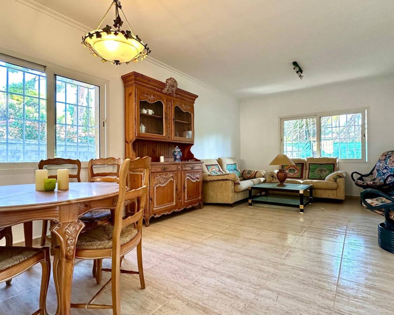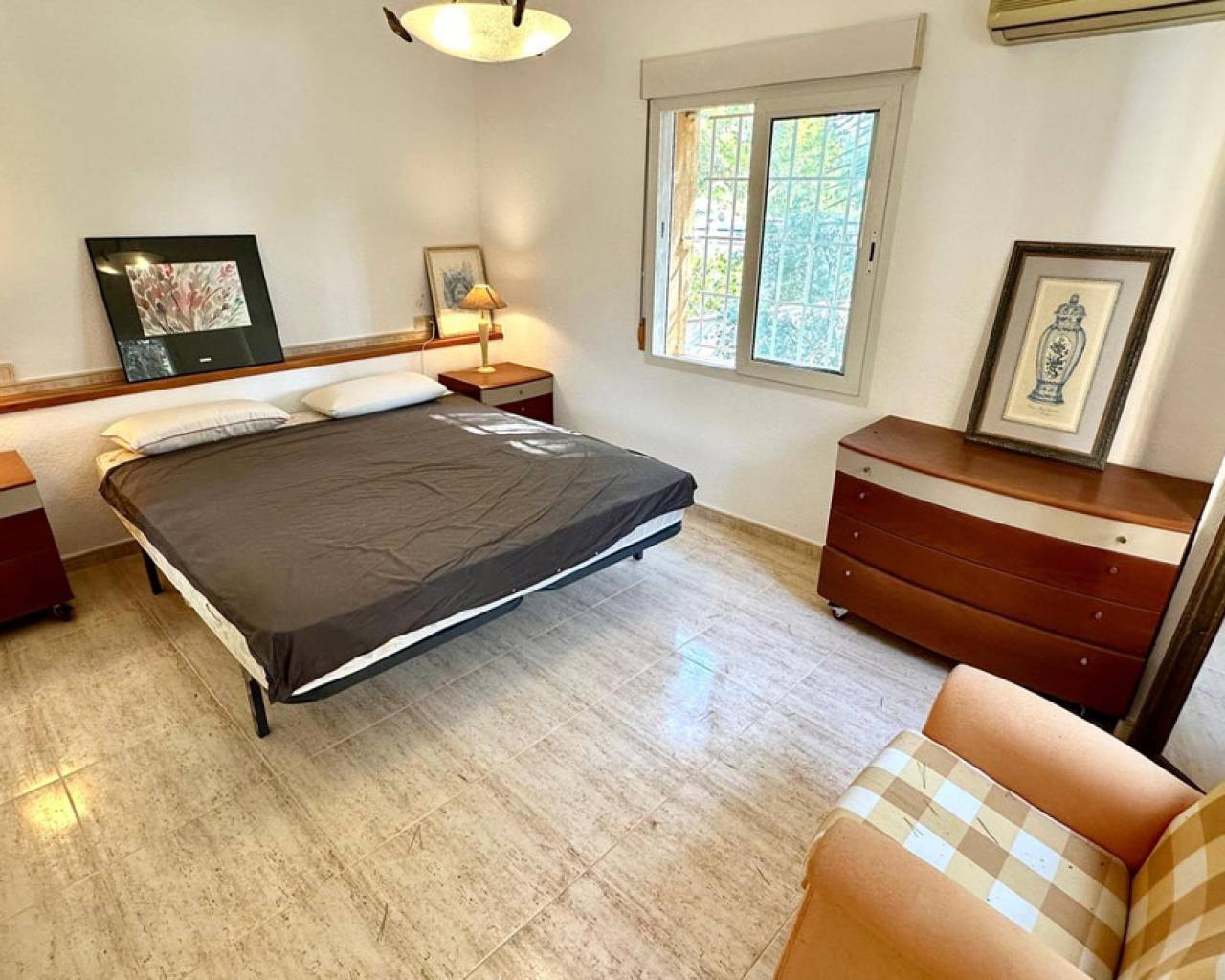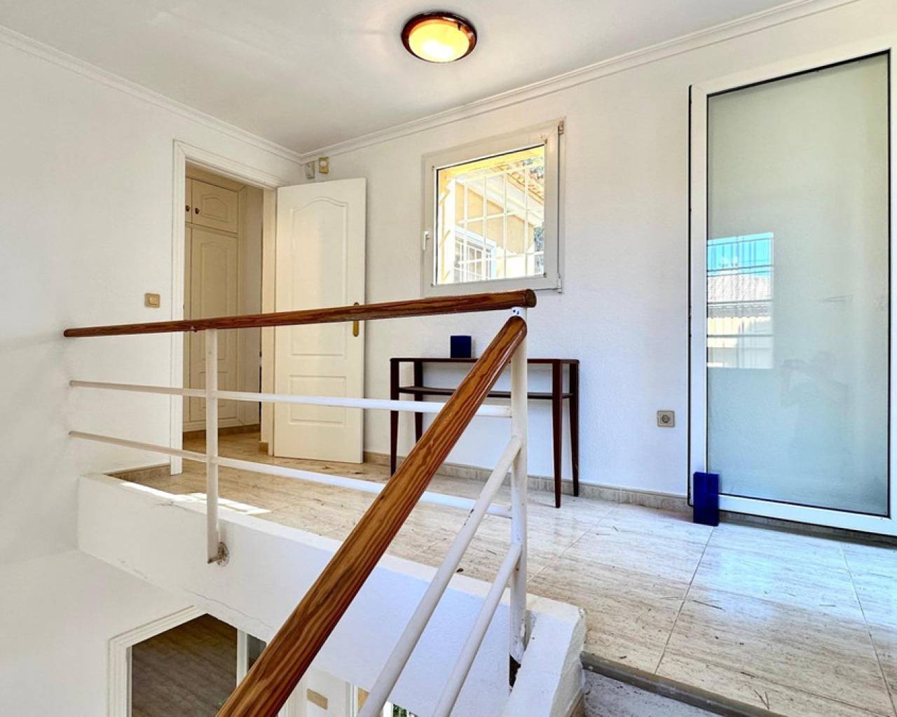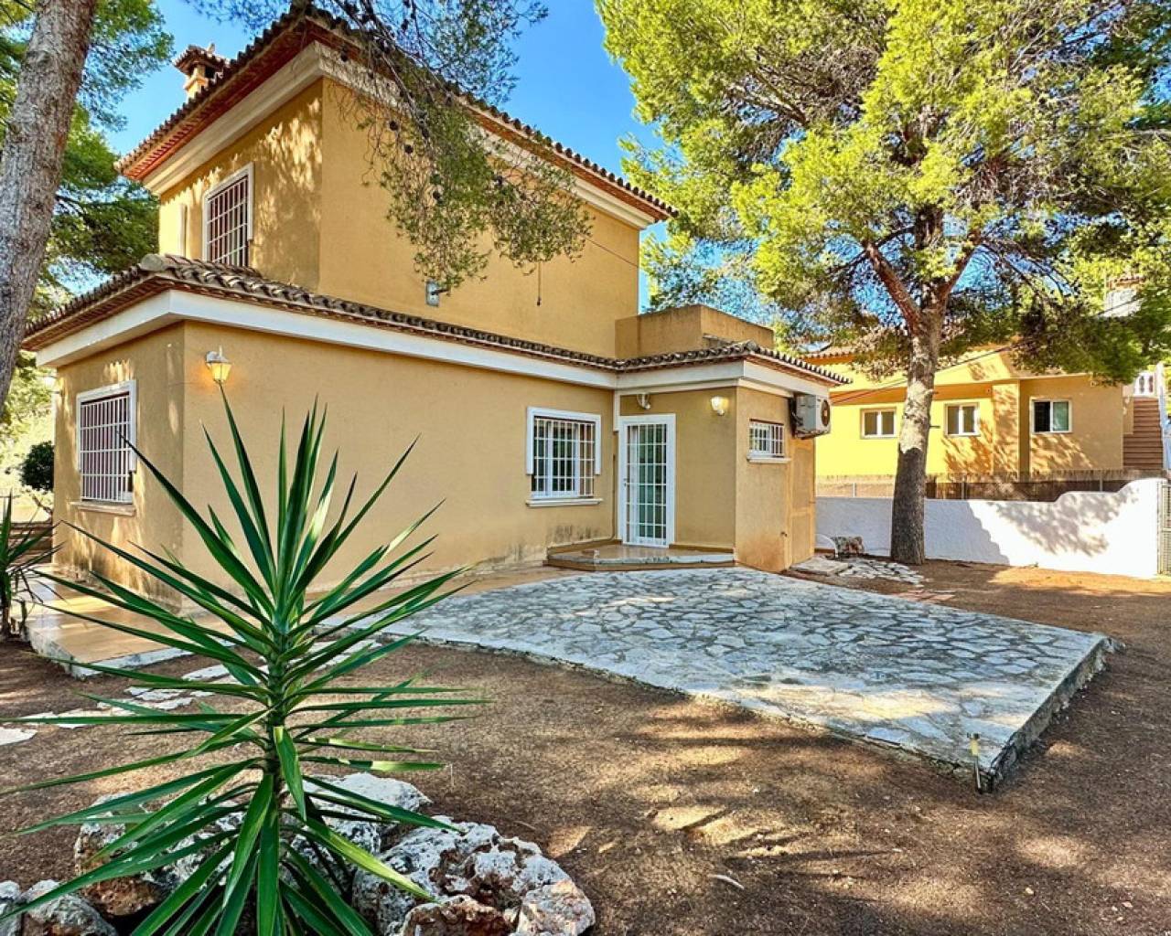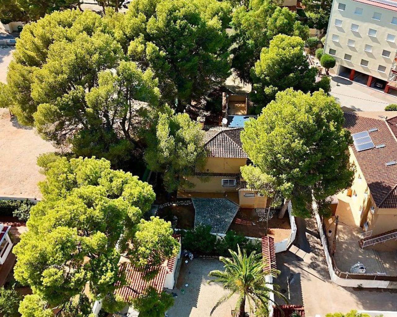 Detached villa with a beautiful garden next to the sea in Las Rotas, Denia, only 100 metres from the cozy beaches and with a perfect southeast orientation.This property has been kept in excellent condition thanks to the fact that it has had only one owner. Its functional and cosy distribution is organised on two floors and a basement.On the main floor, upon entering, we are welcomed by a spacious and bright hall that leads to an elegant living-dining room with fireplace, ideal for relaxing, with direct access to a covered terrace from which you can enjoy the views to the garden. The independent large kitchen has a window to living area and it has a separate laundry room. Furthermore, this floor houses two large bedrooms and a complete bathroom.The first floor is a private retreat where is the master bedroom with an en suite bathroom and access to two terraces offering sea and mountain views.The basement has a large storage room and a garage with capacity for 3-4 vehicles, with direct access to the property, offering comfort and security.Additional features of this property include air conditioning and fitted wardrobes in all bedrooms.Its privileged location, just 100 metres from the beaches and surrounded by a wide range of restaurants and bars on the seafront, makes this villa the perfect choice for those looking for peace and quiet with all the comforts.