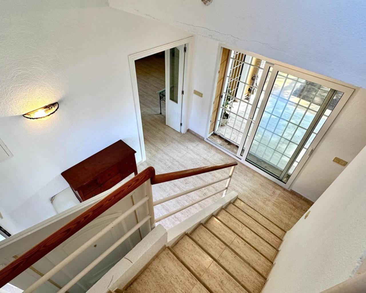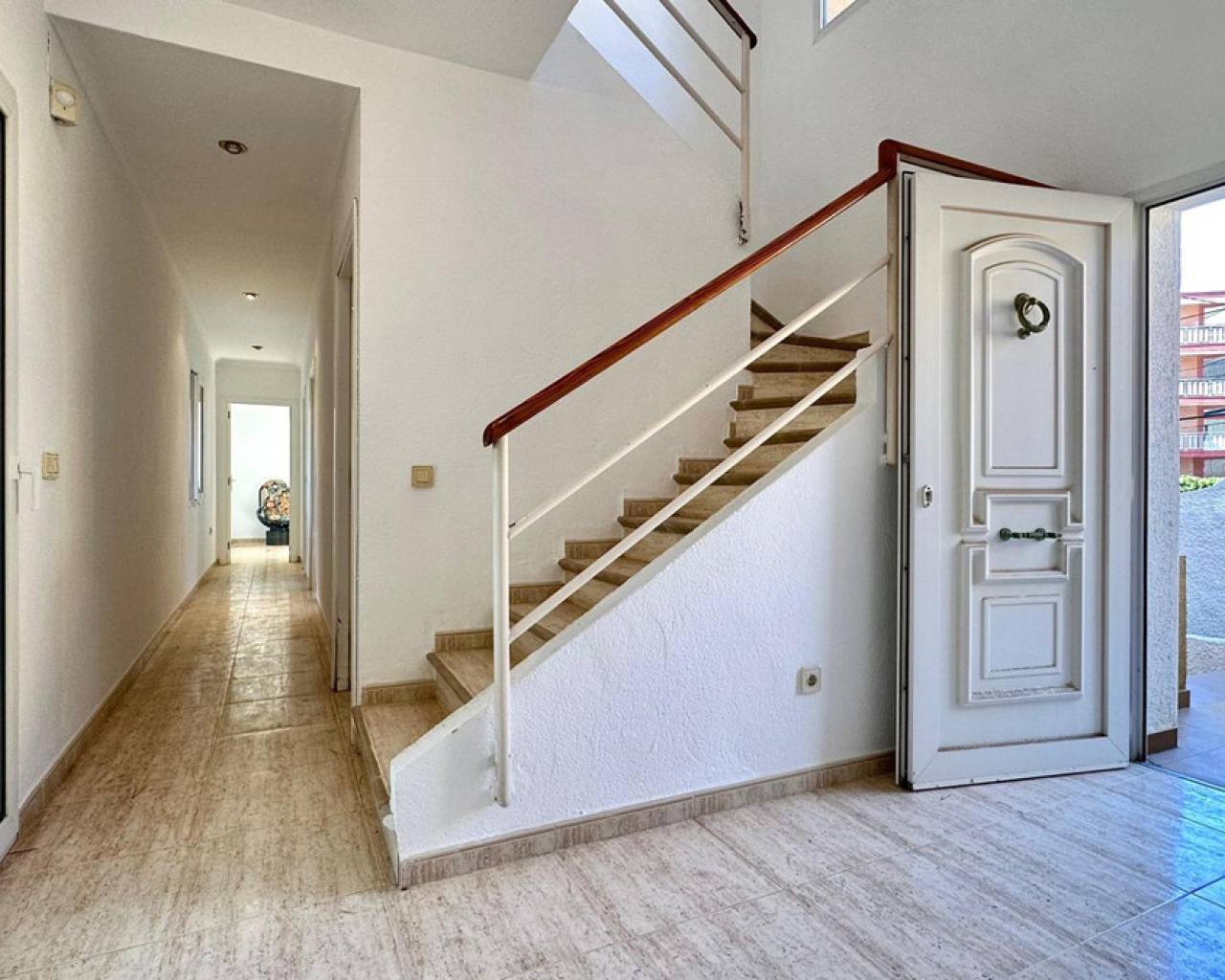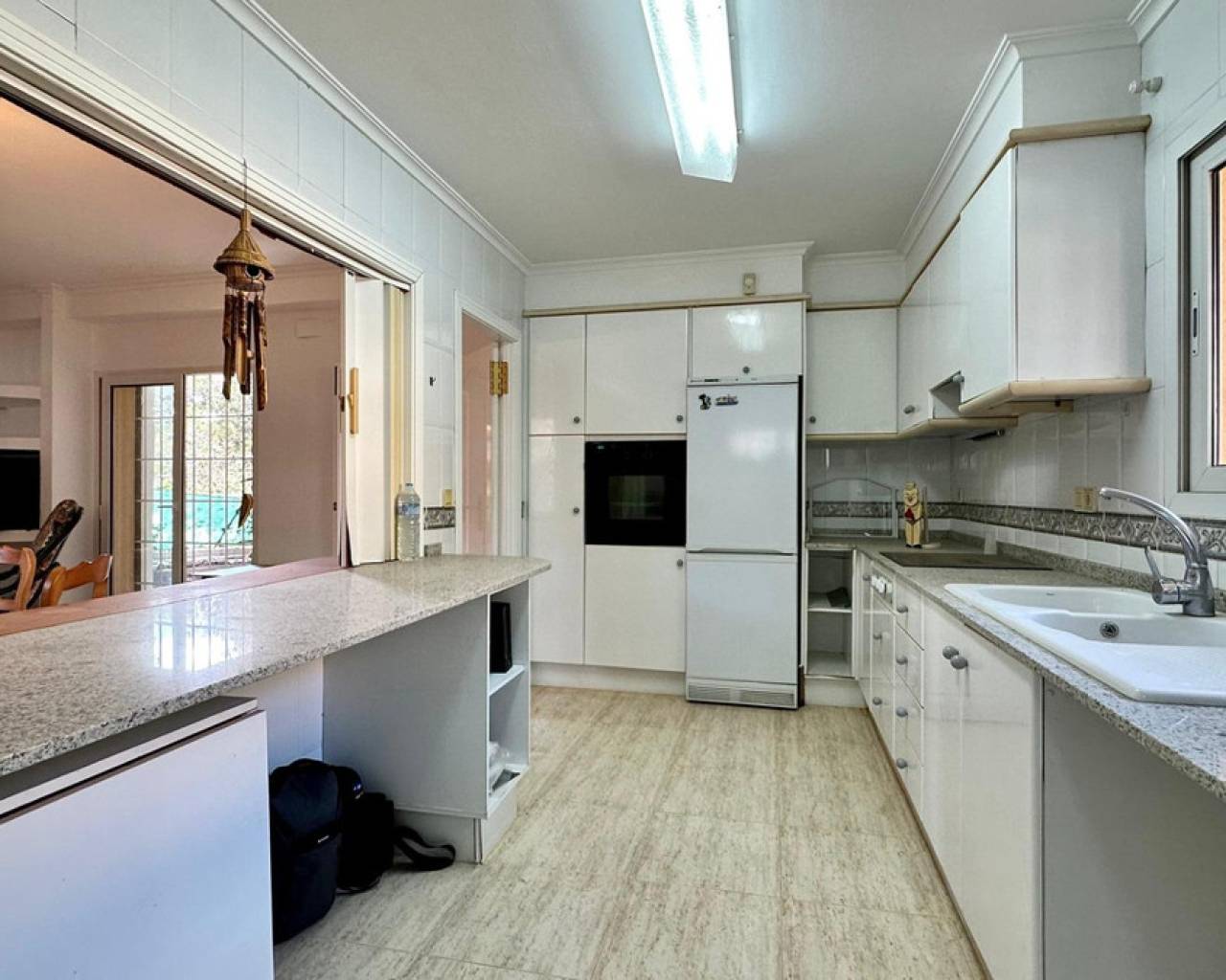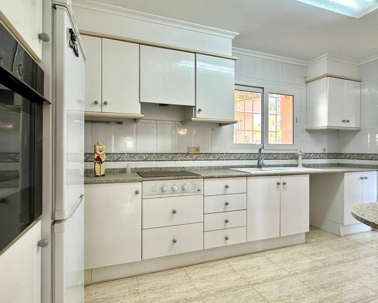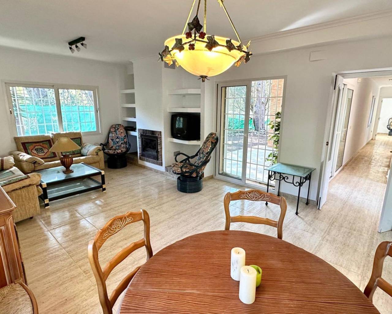 Detached villa with a beautiful garden next to the sea in Las Rotas, Denia, only 100 metres from the cozy beaches and with a perfect southeast orientation.This property has been kept in excellent condition thanks to the fact that it has had only one owner. Its functional and cosy distribution is organised on two floors and a basement.On the main floor, upon entering, we are welcomed by a spacious and bright hall that leads to an elegant living-dining room with fireplace, ideal for relaxing, with direct access to a covered terrace from which you can enjoy the views to the garden. The independent large kitchen has a window to living area and it has a separate laundry room. Furthermore, this floor houses two large bedrooms and a complete bathroom.The first floor is a private retreat where is the master bedroom with an en suite bathroom and access to two terraces offering sea and mountain views.The basement has a large storage room and a garage with capacity for 3-4 vehicles, with direct access to the property, offering comfort and security.Additional features of this property include air conditioning and fitted wardrobes in all bedrooms.Its privileged location, just 100 metres from the beaches and surrounded by a wide range of restaurants and bars on the seafront, makes this villa the perfect choice for those looking for peace and quiet with all the comforts.
