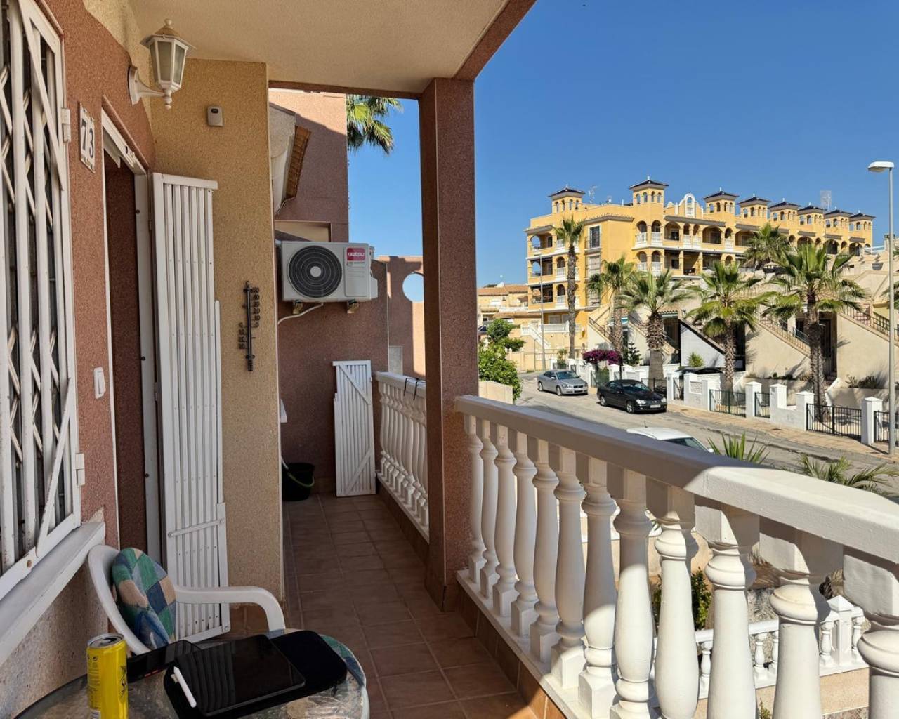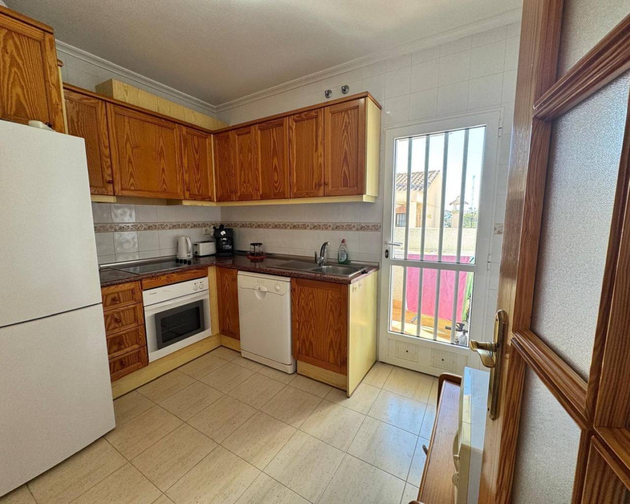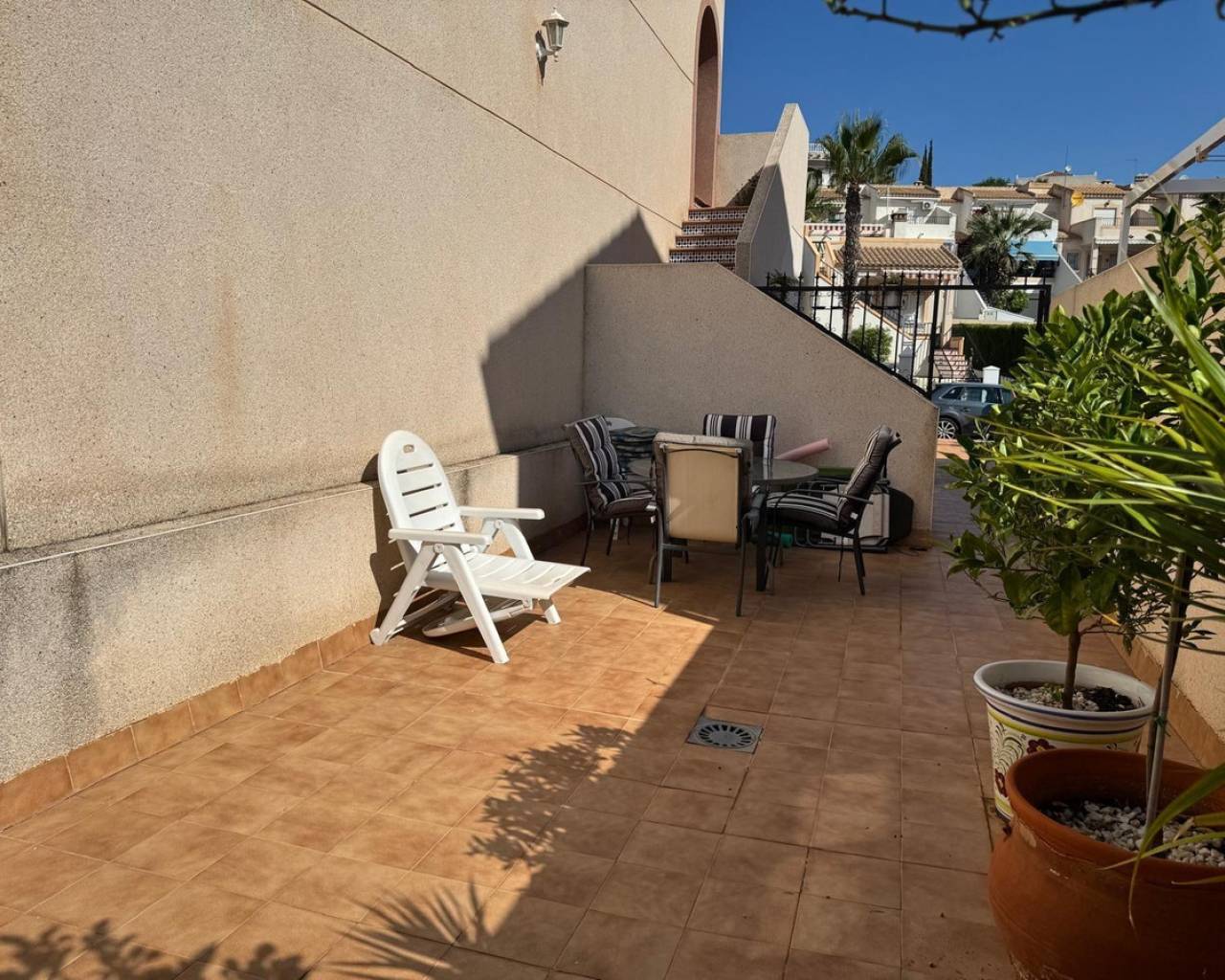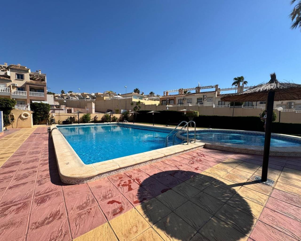 We present this charming townhouse located in the quiet area of Las Filipinas, in Orihuela Costa. With a surface area of 90 m² and a functional design that maximizes space, this property is perfect for both year-round living and vacation enjoyment. It features three spacious double bedrooms and two fully equipped bathrooms, ensuring comfort and privacy for its residents. The kitchen is ready to use and includes all necessary appliances. The southeast orientation allows for excellent natural light throughout most of the day, creating a cozy atmosphere. Additional amenities include hot and cold air conditioning, spacious built-in wardrobes, and a bright balcony where you can relax at the end of the day while enjoying unobstructed views of nearby green areas or even the sea. The exterior does not disappoint: it features a well-maintained garden ideal for spending pleasant moments outdoors; it also has a built-in barbecue perfect for gatherings with family or friends. It also has access to a communal pool located within the residential complex. Its location is unbeatable; Located just 5,000 meters (5 km) from the nearest beach, it offers a variety of recreational options, including renowned golf courses and numerous playgrounds ideal for young families. You'll also be surrounded by all the necessary urban amenities, such as supermarkets, regular buses, shopping centers, schools, etc.; with very reasonable community fees of just €280 per year! Don't miss out on this unique opportunity... Contact us today!