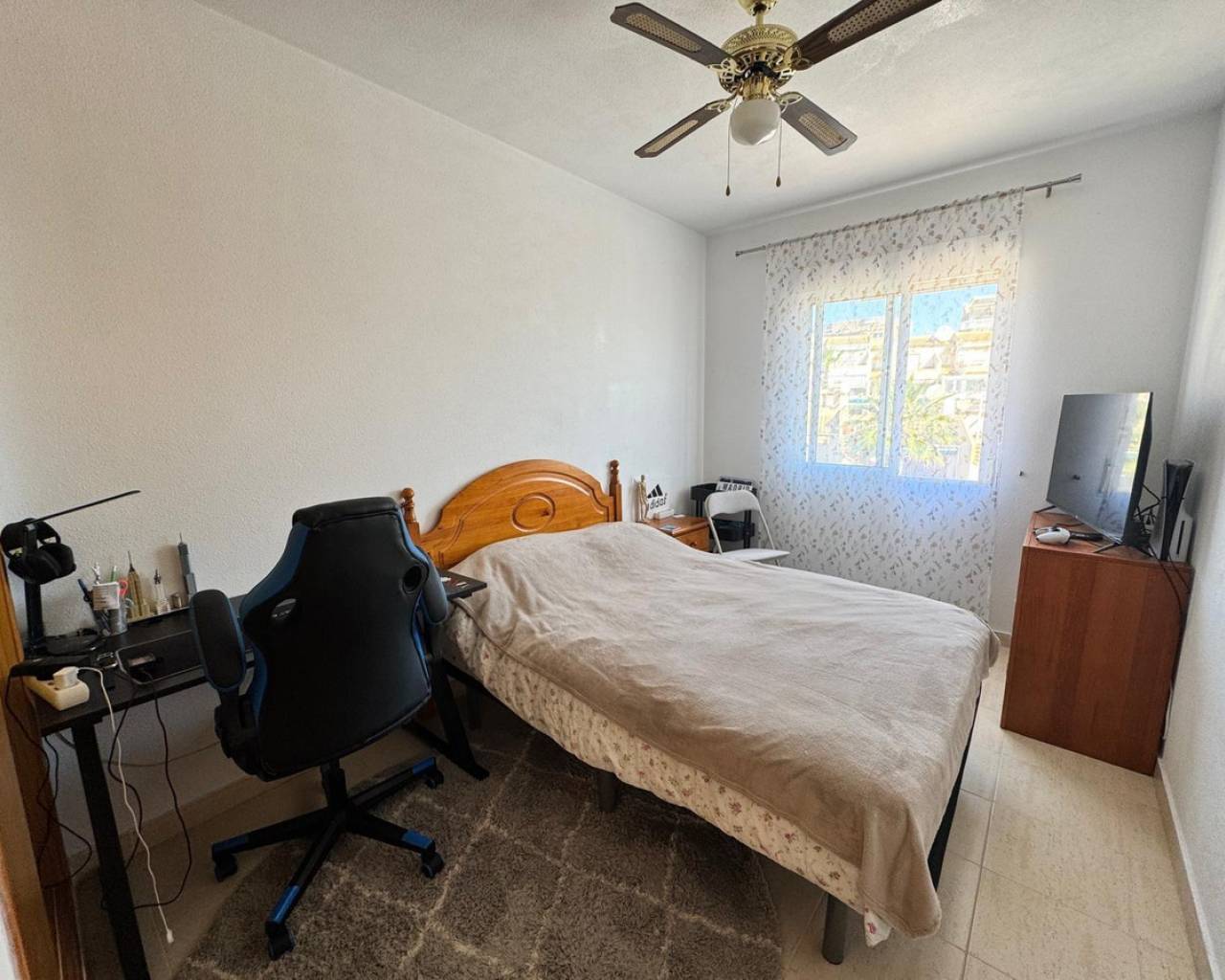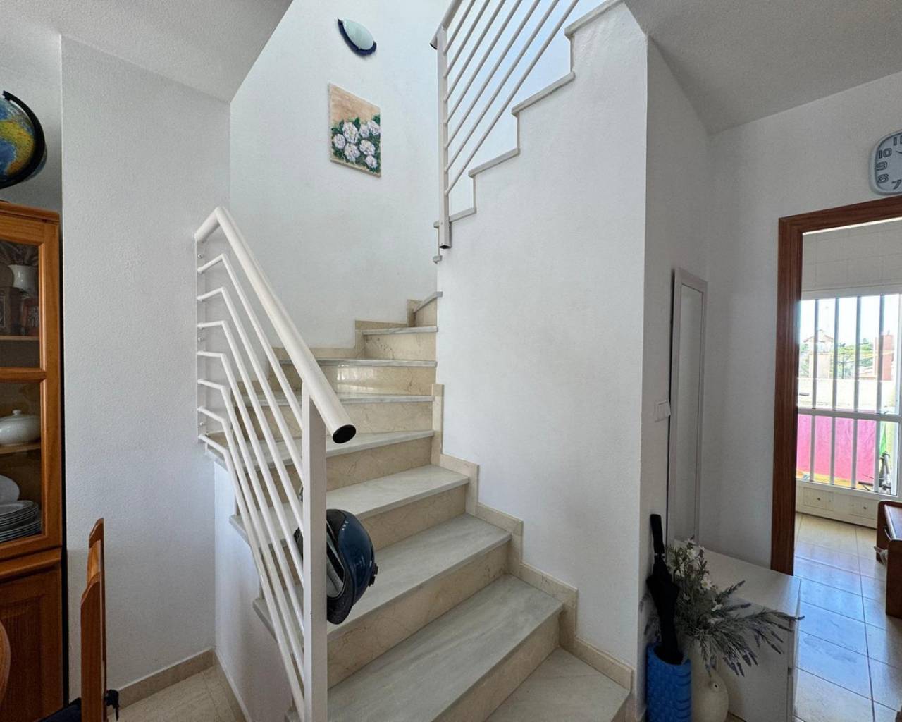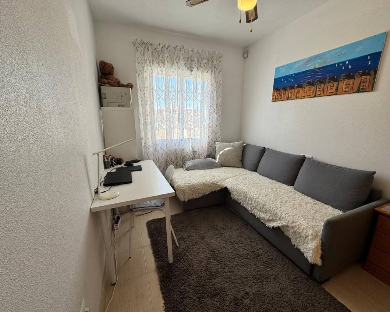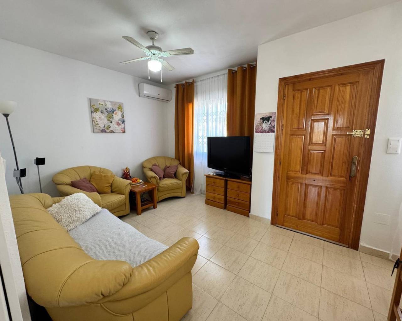 We present this charming townhouse located in the quiet area of Las Filipinas, in Orihuela Costa. With a surface area of 90 m² and a functional design that maximizes space, this property is perfect for both year-round living and vacation enjoyment. It features three spacious double bedrooms and two fully equipped bathrooms, ensuring comfort and privacy for its residents. The kitchen is ready to use and includes all necessary appliances. The southeast orientation allows for excellent natural light throughout most of the day, creating a cozy atmosphere. Additional amenities include hot and cold air conditioning, spacious built-in wardrobes, and a bright balcony where you can relax at the end of the day while enjoying unobstructed views of nearby green areas or even the sea. The exterior does not disappoint: it features a well-maintained garden ideal for spending pleasant moments outdoors; it also has a built-in barbecue perfect for gatherings with family or friends. It also has access to a communal pool located within the residential complex. Its location is unbeatable; Located just 5,000 meters (5 km) from the nearest beach, it offers a variety of recreational options, including renowned golf courses and numerous playgrounds ideal for young families. You'll also be surrounded by all the necessary urban amenities, such as supermarkets, regular buses, shopping centers, schools, etc.; with very reasonable community fees of just €280 per year! Don't miss out on this unique opportunity... Contact us today!