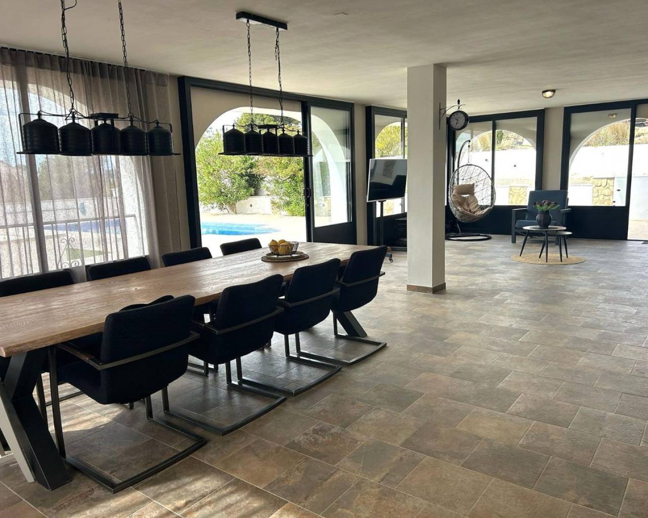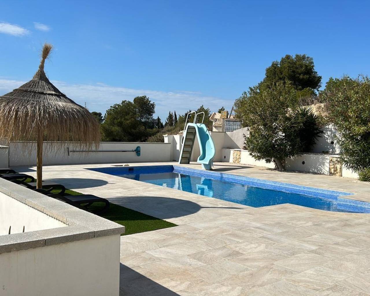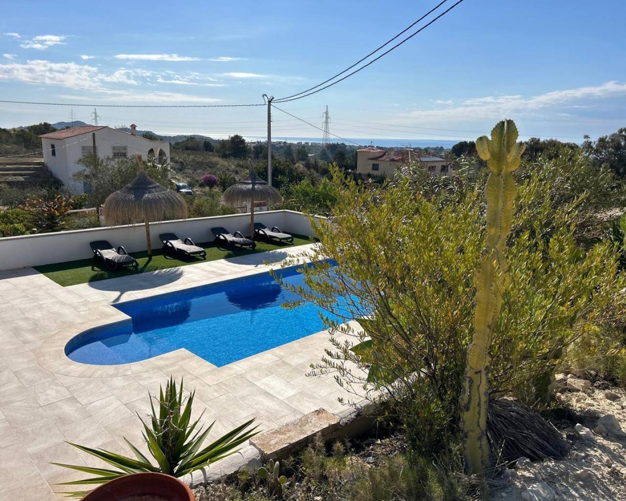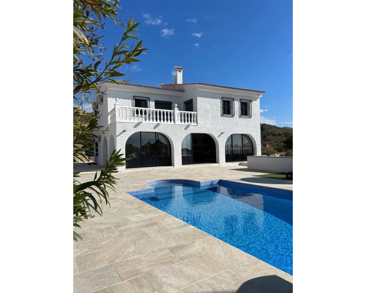 Located in a quiet area of Villajoyosa, famous for its colorful houses and dreamlike beaches, this property combines luxury, comfort, and nature.???? The Main Villa (241 m² fully renovated):-- 2 floors with an ideal layout.-- Ground floor: spacious open area of 70 m² with a modern fully equipped kitchen ????, sliding glass doors that merge indoor and outdoor living ????, 2 bedrooms and 1 bathroom with shower ????.-- Upper floor: bright living room with open kitchen, 2 additional bedrooms, including the master with private terrace and stunning sea ???? and Villajoyosa views ????.-- Sunny terraces, air conditioning ❄️, water filtration system ????, and full privacy on a quiet cul-de-sac.???? Guest House / Chalet (60 m²):-- 3 bedrooms ????️, 1 bathroom ????, living room with open kitchen + bar ????.-- Direct access to the garden ???? through sliding doors.-- Views of the equestrian area ????.???? Equestrian Zone:-- 5 covered stables with feed storage.-- REGA license in place ✔️.-- Direct access to the mountains for outdoor rides and horse trails ????.???? Exteriors & Extras:-- Spectacular private pool, fully renovated, with slide ????♂️.-- Non-slip terrace for maximum safety.-- Large garage with decorative arches ???? and closed storage room.-- 10 solar panels ☀️ for energy efficiency.-- Plot of 7,701 m² facing south ????.???? Privileged Location:-- Only 8 minutes from the beach ????️.-- 10 min from Benidorm ????, 40 km from Alicante Airport ✈️, and 1h30 from Valencia.-- Close to golf courses ⛳, amusement parks ????, zoo ????, and La Marina shopping center ????️.-- Surrounded by charming villages such as Altea, Albir, and El Campello.✅ Basic Features:-- Independent 2-story chalet.-- 4 bedrooms + 2 bathrooms in the main villa.-- Guest house with 3 bedrooms + 1 bathroom.-- Pool, garden, terraces, and balcony.-- Garage + storage room.-- Solid construction (1990) in excellent condition.???? Unbeatable Price & Quality! ????This property is not just a house, it's a unique lifestyle between the sea, nature, and comfort!???? Contact us today and come discover your new home in Villajoyosa!