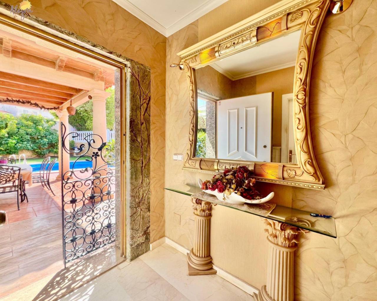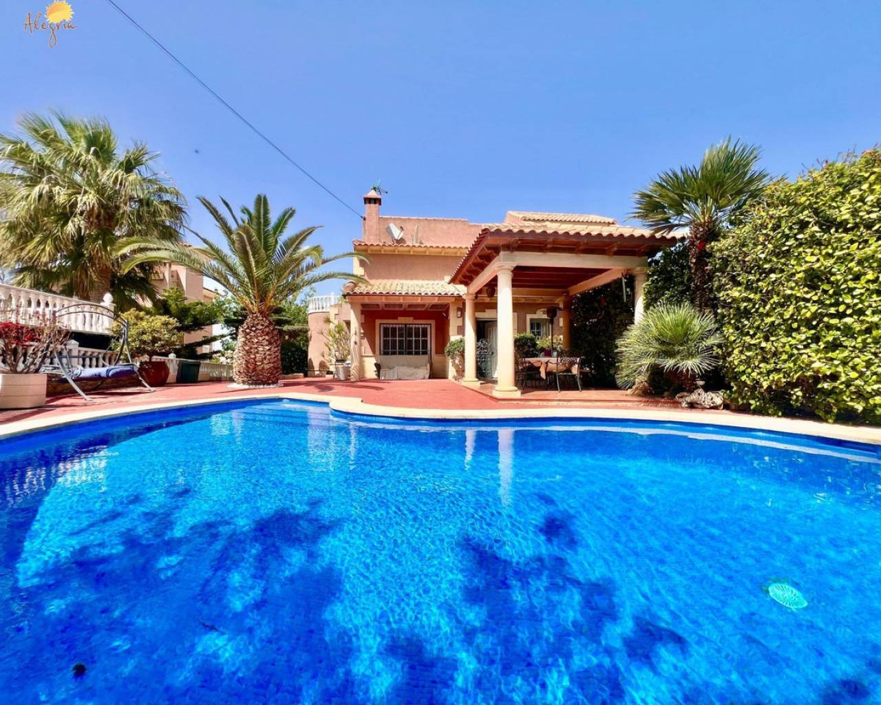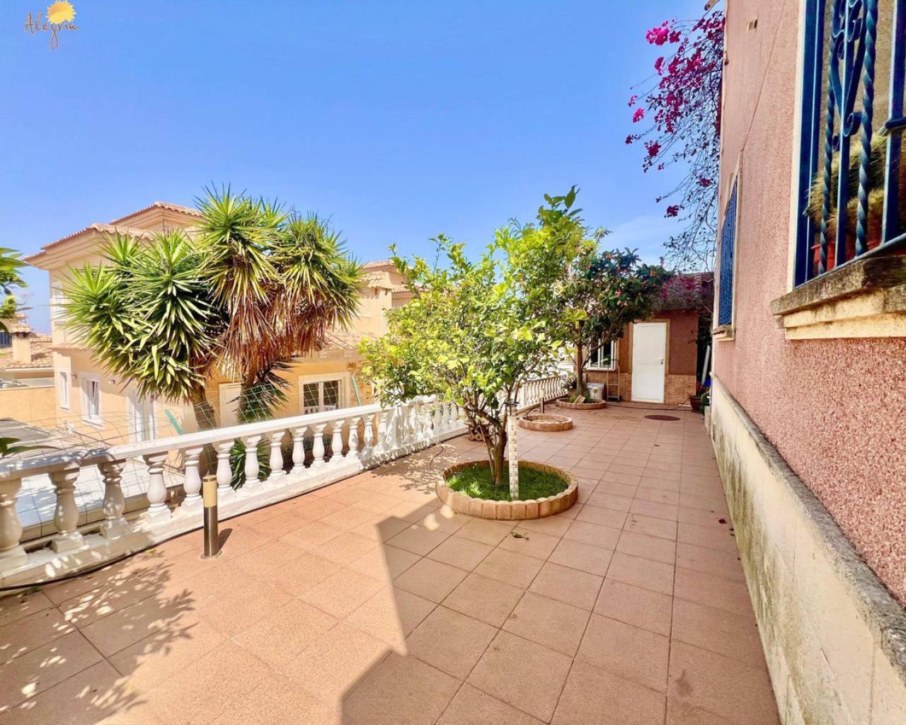 Discover this stunning villa located in the coveted area of Los Balcones, just 1.6 km from the splendid beaches of Torrevieja. This property boasts a generous built area of 151 m2 on an extensive private plot of 367 m2, providing an ideal space for outdoor enjoyment. The villa features three spacious double bedrooms and two full bathrooms equipped with windows for better ventilation, as well as a practical additional toilet.The upper floors house two cozy bedrooms complemented by private terraces ideal for enjoying clear views.Designed with modern comfort in mind, it includes a fully equipped kitchen and a bright living room that opens to outdoor spaces perfect for relaxing or entertaining. Its south orientation ensures abundant natural light throughout the day while the high ceilings add even more spaciousness.Outside, you will find attractive garden areas adorned with fruit trees next to the private pool where you can refresh yourself under the Mediterranean sun; there is also a barbecue perfect for family gatherings and a closed garage included that offers extra convenience.In this well-connected villa, you will have quick access to essential services including schools, banks, and hospitals, where every corner is designed for both investing and establishing your home. You will also have extras such as heating, pre-installed central air conditioning ducts, and an alarm system. Live in a select environment!