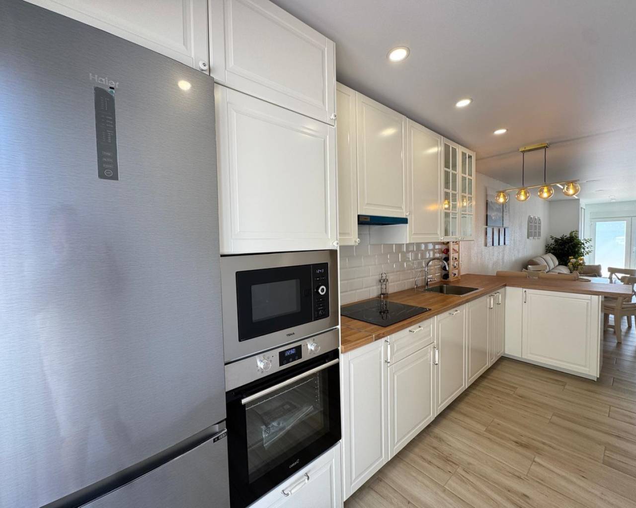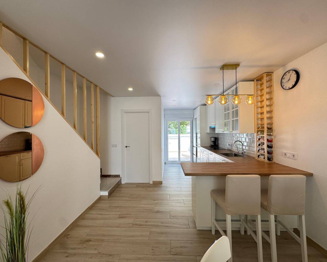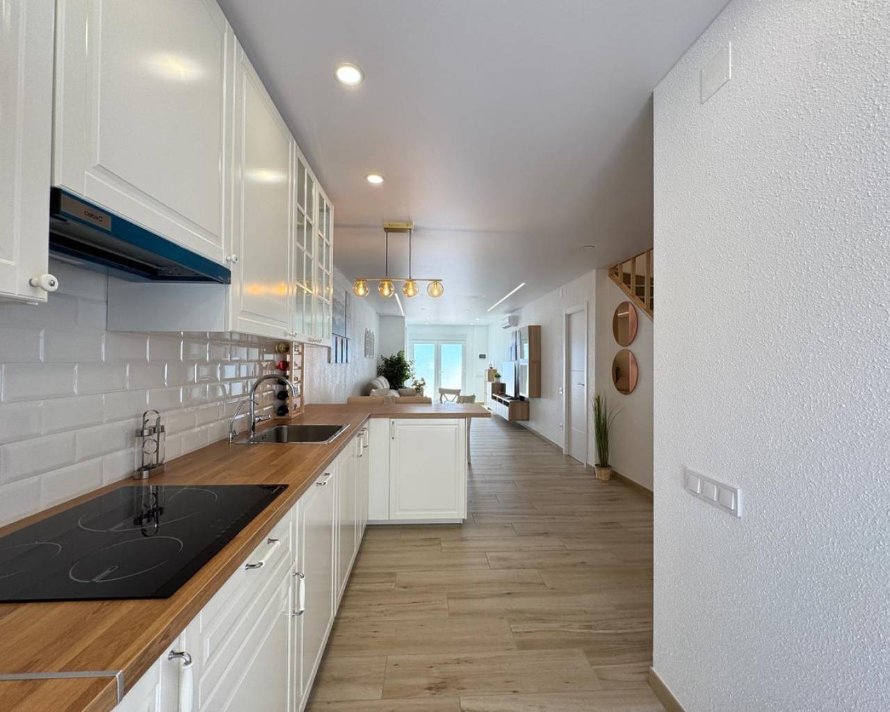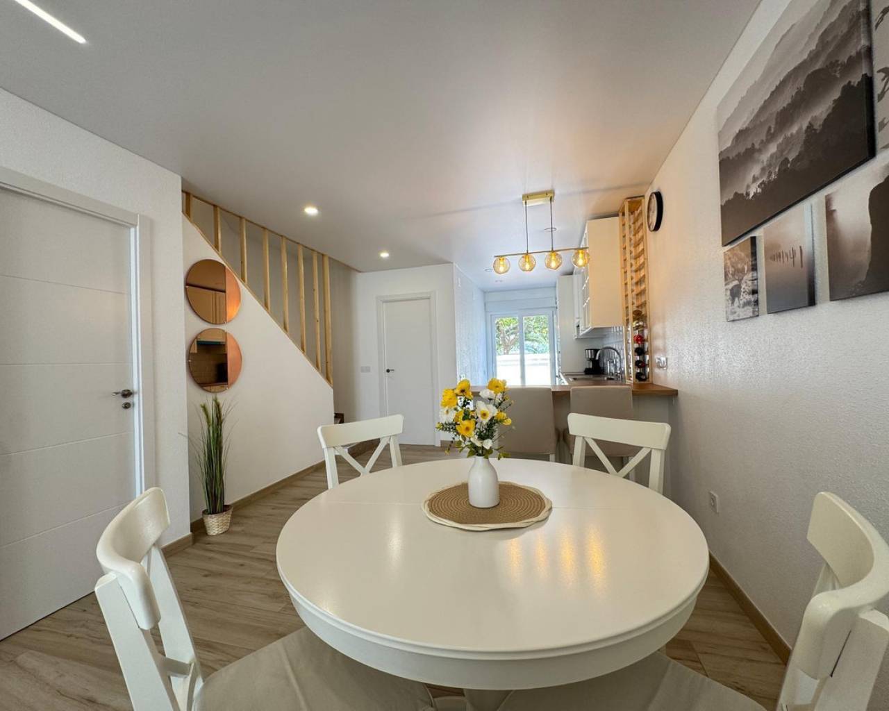 Modern and cozy townhouse for sale, ready to move in!This spacious townhouse with three bedrooms and two bathrooms is an excellent option for both permanent residence and family vacations. Each bedroom has air conditioning, ensuring a pleasant climate all year round. The living room also has its own air conditioning.DistributionOn the ground floor, we find a very spacious living-dining room, integrated with the kitchen in open space style, providing spaciousness and brightness. The property has undergone a complete renovation, with a full renewal of the electrical and plumbing installations, ensuring maximum safety and durability.Condition and equipmentIt is sold fully furnished and equipped with all necessary appliances — everything seen in the photos is included in the price.Outdoor spaces• Main terrace of 20 m² — ideal for enjoying morning coffee or relaxing at sunset.• Back terrace (30 m²) with access to the patio — perfect for barbecues, outdoor meals, or as a play area for children.On the upper floor:• Terrace of 10 m² — perfect for sunbathing or relaxing privately.• Terrace of 15 m² — with views of the park and community pool.Finishes and extras• Laminated flooring on the upper floor and wood-effect ceramic tiles on the ground floor.• Tensioned ceilings with modern lighting.• Electric blinds.• Decorative elements, high-quality fittings on interior doors.• Magnetic locking system on doors.InfrastructureLocated in an urbanization with a community pool and green areas, ideal for families. Within walking distance of shops, cafes, schools, public transport, and all necessary services.???? Usable area: 75 m²???? Pool: community???? Excellent location: quiet area but close to the center and the beaches