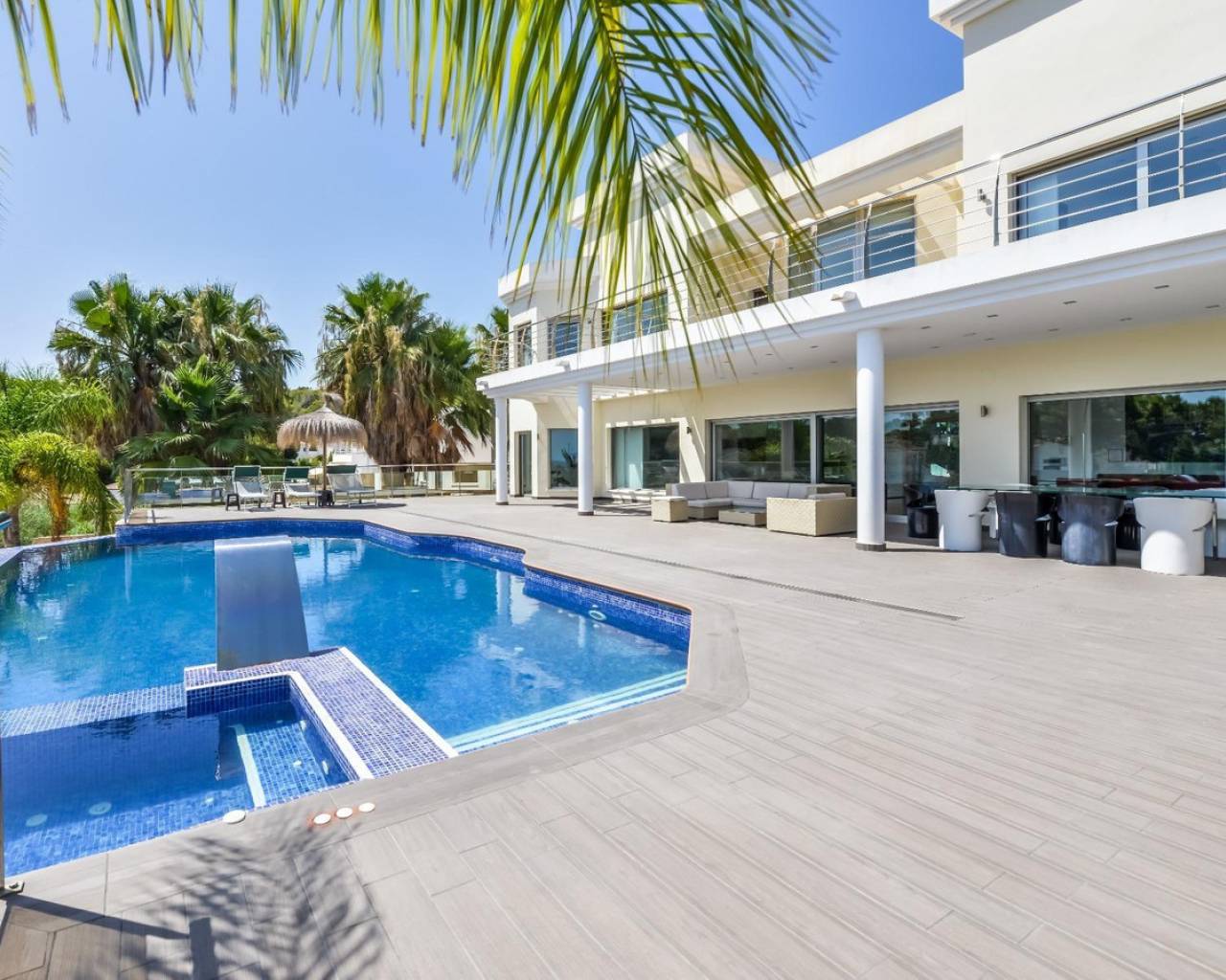 Located in the prestigious La Fustera urbanization, just 10 minutes from Calpe and 15 minutes from Moraira, this spectacular mansion redefines elegance and comfort.???? Main Features:--Sea views and privacy: Enjoy breathtaking panoramic views of the Mediterranean from different areas of the property.--Spacious and bright interiors: Majestic entrance with an imperial staircase and marble floors that add distinction and elegance.--Open-plan living room: Large space divided into three areas — formal dining, living room, and TV corner with a gas fireplace.--Dream outdoor area: Expansive terrace with dining area, outdoor kitchen, pool with jacuzzi and waterfall.--Wellness area: Fully equipped spa with gym, sauna, indoor pool, and jacuzzi for year-round enjoyment.--Entertainment area: Elegant bar, perfect for gatherings or relaxing moments with friends.--Independent apartment: Ideal for guests, family, or staff.--Luxury bedrooms: Four spacious en-suite bedrooms; the master features a dressing room, private terrace, and bathtub.--Office with views: Dedicated workspace with a large terrace and spectacular views, ideal for working from home.???? Additional Details:--Built area: 585 m²--Plot: 1,843 m²--5 bedrooms | 5 bathrooms--3 floors--South facing ☀️--Air conditioning and electric heating--Garden, pool, garage, and storage room???? Only 1.5 km from La Fustera Beach.✨ A dream villa ready to live in and enjoy all year round!