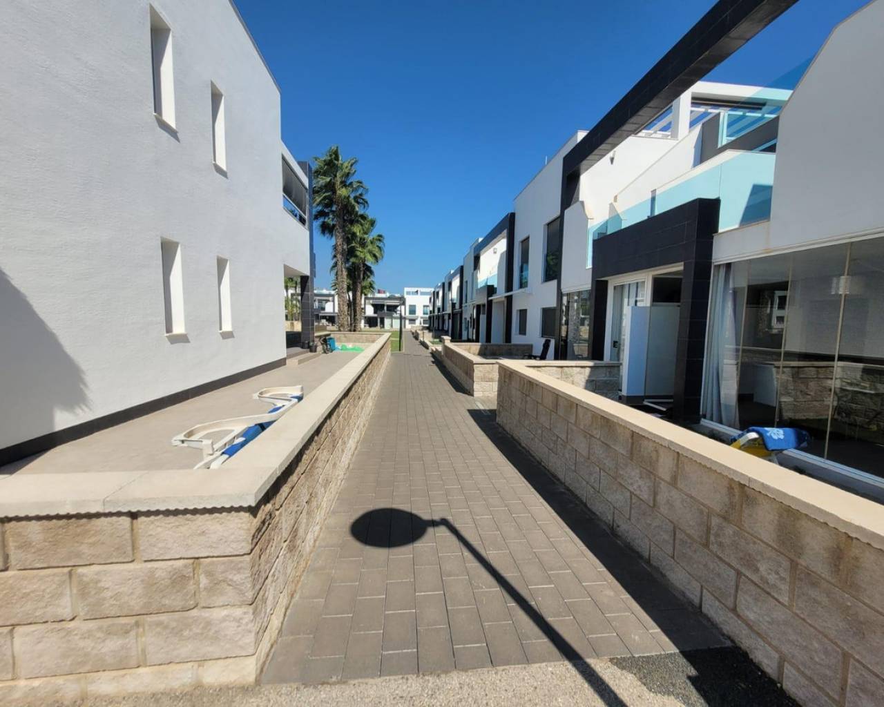 Discover this charming ground floor bungalow located in the privileged area of La Zenia, Orihuela Costa. With a built area of 90 m² and south-facing orientation, this property features two spacious double bedrooms and two full bathrooms. Its impeccable condition allows for immediate occupancy without the need for renovations. Situated just 1500 meters from the Mediterranean Sea, you will enjoy exceptional weather year-round.The home is located within a community that offers a communal pool and children's areas ideal for families. Furthermore, its location is perfect due to the proximity to public buses that facilitate access to the rest of the municipality as well as the most important shopping centers where you can find all the necessary amenities: shops, schools, and even hospitals equipped with efficient medical services.Don't miss the unique opportunity this bungalow represents; ideal as both a permanent residence or a vacation investment.