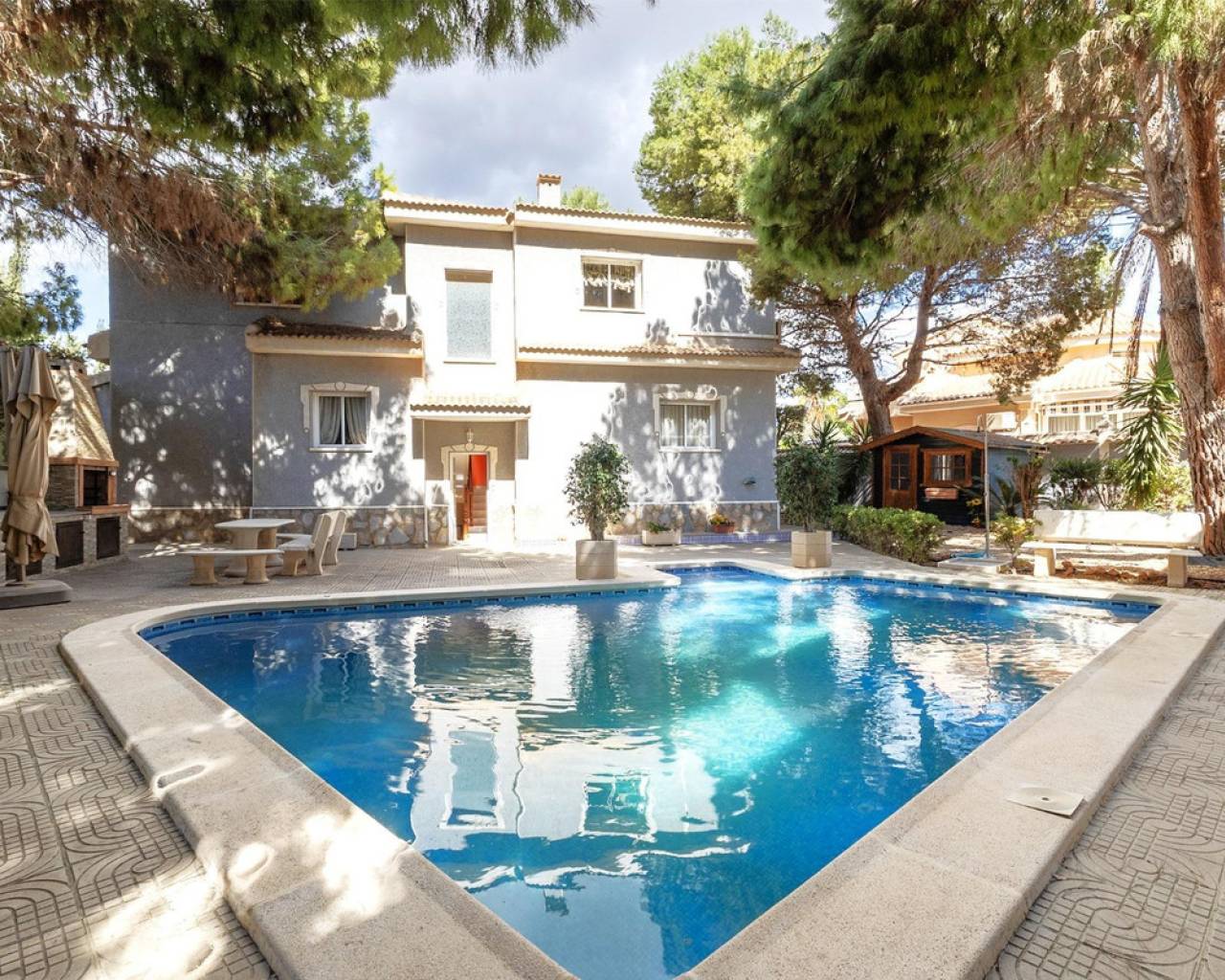 It's not for everyone.~But if what you value is peace, elegance and the feeling of being in your own world… you might have just found your place.~~In Doña Pepa, Ciudad Quesada, there's a villa where no one sees you… unless you want them to.~And trust me, you'll want to be here.~~The lush greenery surrounding the house doesn't just decorate—it protects.~No nosy neighbours, no one overlooking. Just silence, privacy and that feeling of "this is where I belong."~~You're 40 minutes from Alicante Airport and just a five-minute walk from the exclusive La Laguna Spa Hotel.~Very close to La Marquesa Golf Club, and not far from the renowned La Finca course.~Everything nearby, yet nothing disturbs you.~~The villa is fully detached, and you can feel it from the moment you pass through the electric gates.~The driveway leads to a spacious double garage—and from that moment, you know this place is different.~~Inside, there's space. Lots of it.~Five bedrooms, each with its own bathroom. Bright, generous rooms with that special sense of freedom that's hard to describe—but easy to feel.~Three floors designed for comfort, entertaining, relaxing, living.~And in the basement, a perfect area for parties, dinners or whatever you feel like.~~This isn't about starting over.~It's about continuing your life—but better.~~You know that phrase "living the way you've always wanted"?~This is it.~~Not for you? That's fine.~This isn't for everyone. It's for someone who knows exactly what they want.~~(Purchase taxes and expenses not included)