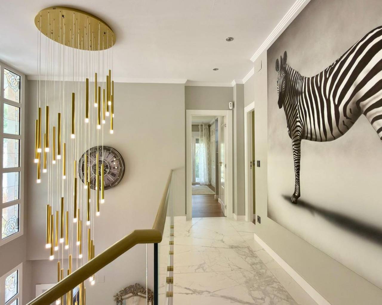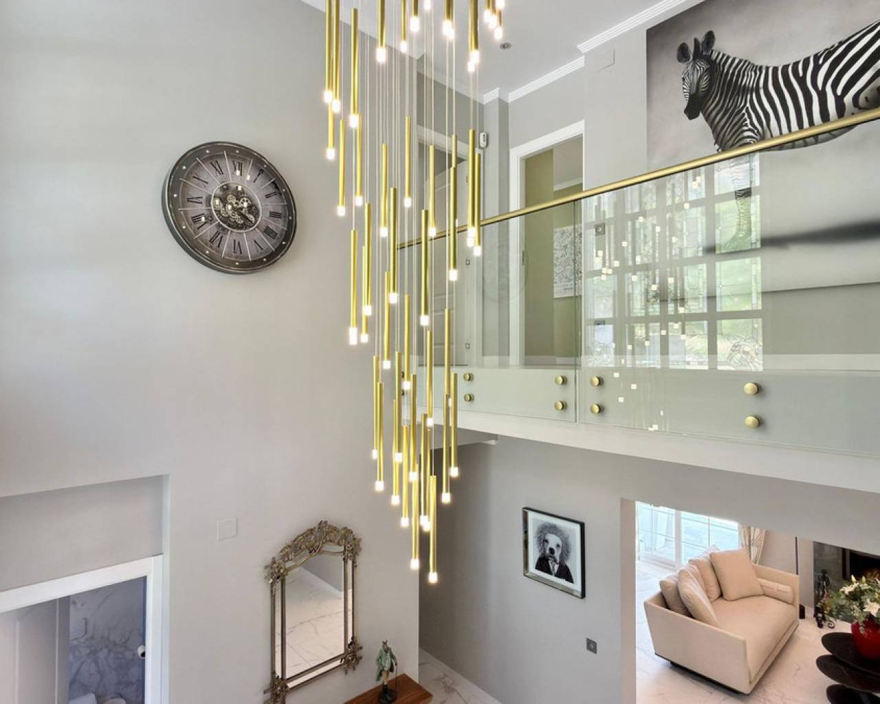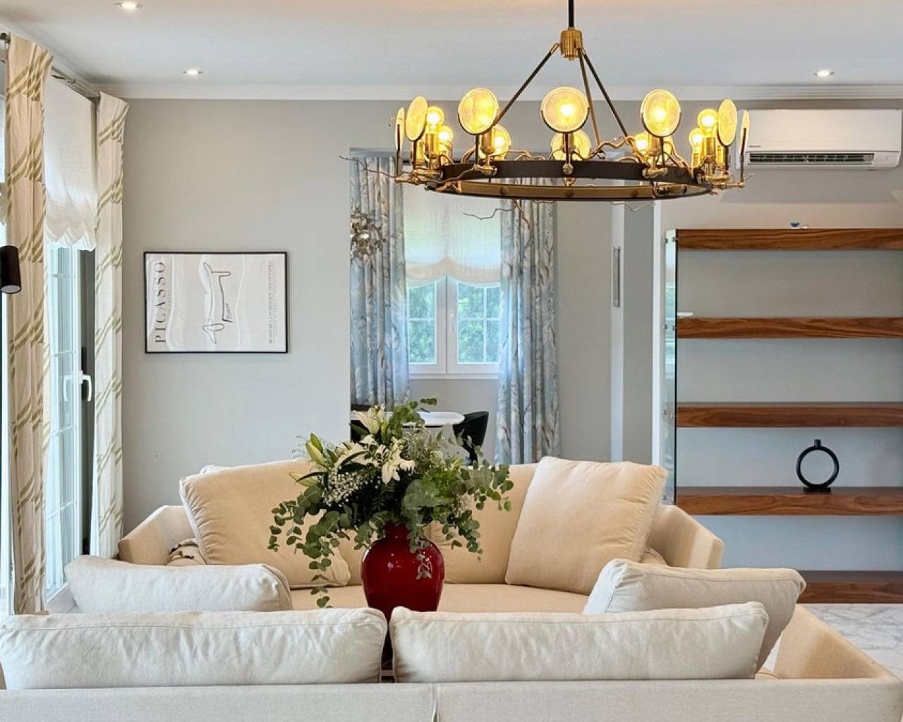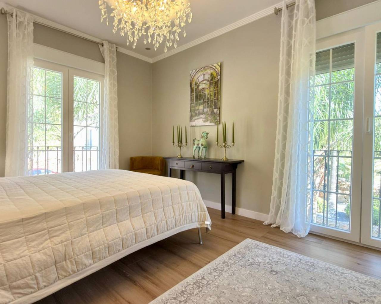 FOR SALE: EXCLUSIVE VILLA ON MONTGÓ, JÁVEA Enjoy stunning mountain and valley views from every corner of this fully furnished and equipped villa — ready to move in. • Total plot size: 3,150 m² • Main house: 439m² | Guest house: 144 m² DESCRIPTION The villa is located on a corner property, with no direct neighbors, in a very private area. The property consists of a two-storey main house with basement, guest house, heated saltwater swimming pool, summer kitchen with barbecue, enclosed pool area, basement with gym and karaoke room, dog house with workshop and garage. It has ample access for vehicles and a parking area. DISTRIBUTION AND DESIGN Main House The villa is distributed over two floors plus a basement, offering spacious and elegant living. It features three bedrooms, five bathrooms, a large dressing room, a private office, and a beauty room, making it ideal for both comfort and lifestyle. On the ground floor, a spectacular entrance hall with double-height ceilings and stained-glass windows welcomes you with natural light. The main living room includes a working fireplace with hand-painted golden details, while a second lounge area is designed for entertainment, equipped with a large TV and automatic blinds. The modern kitchen is fully equipped with high-quality appliances by Gaggenau, including an American-style fridge and a large wine fridge, and connects directly to the terraces, pool, and summer house. A guest toilet and office complete this level. The private study is set apart from the main living areas, offering an ideal environment for focused and quiet work. If needed, the space can easily be converted into an additional bedroom. Basement The lower level of the villa is dedicated to leisure and wellness. It features a fully equipped gym for everyday training, as well as a karaoke studio with professional sound system, microphones, and a large screen—a perfect space for entertainment with family and friends. Extras & Technology The villa is equipped with the latest comforts and technology to ensure a luxurious living experience. It offers air conditioning (heating and cooling) and underfloor heating throughout, as well as double-glazed windows with electric blinds for both efficiency and comfort. For entertainment, the house includes an 85-inch television, while video surveillance and a full smart-home system provide security and convenience. Connectivity is guaranteed thanks to fiber-optic internet with dual providers, always ensuring uninterrupted service. Pool & Chill-Out Areas At the heart of the estate lies the saltwater swimming pool with a heating system, perfect for year-round enjoyment. Surrounding the pool, a spacious terrace offers cozy chill-out areas, designed for relaxation and quality time with family and friends. Terraces & Leisure Areas The villa offers multiple outdoor spaces designed for both relaxation and entertainment. A fully equipped summer kitchen with automatic roof and BBQ makes it ideal for dining al fresco. The beautifully landscaped garden features over 60 palm trees and lush Mediterranean plants, all maintained with a domotics-controlled automatic irrigation system. Entrance & Additional Spaces The villa is accessed via double automatic gates a grand main entrance. The entire perimeter is secured with reinforced fencing, ensuring privacy and safety, while also adapted for pets. A guest house with open-plan kitchen and bathroom offers independence and comfort, with beautiful views of Montgó and the main residence. The garage with storage room is equipped with an electric car charger, providing modern convenience. For pet lovers, the property includes a dedicated dog kennel with cleaning area, covered open-air space, and a 36 m² workspace. The property has ample parking for 3–5 cars, completing the estate's functionality. Location The villa is located within 5 minutes' reach of La Sella golf course, several restaurants, as well as La Ermita Local Market supermarket. Jávea – a Mediterranean sanctuary between the sea and the mountains. This prestigious Costa Blanca destination blends the charm of a traditional coastal town with the comfort of an exclusive modern resort. Turquoise coves, over 300 days of sunshine a year, and the natural beauty of the Montgó Natural Park create an ideal setting for both relaxation and refined living. The town is divided into three key areas — the historic Old Town, the lively marina, and the vibrant Arenal beachfront. Here you'll find top-class dining, international school Xábia International College and a welcoming international community. Jávea offers a premium lifestyle in one of the most desirable Mediterranean locations.