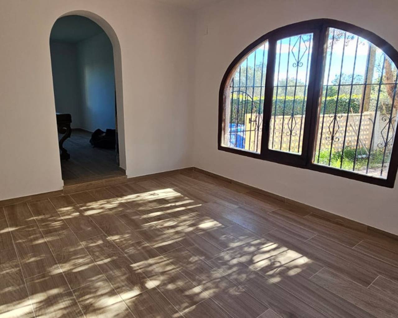 Fantastic detached villa of 150m2 built with a plot of 1400m2 for sale. Unique opportunity in Jávea, just a 10-minute walk from the Arenal beach! This completely renovated and brand new property offers 3 bedrooms, 1 bathroom, and an open kitchen connected to the living room with a cozy fireplace. The property is set in a spacious garden of 1400 m², full of fruit trees, ideal for enjoying the outdoors. In addition, it has a porch for the car and a totally new electrical and plumbing installation. Don't miss out on this perfect opportunity to live in the heart of Javea!