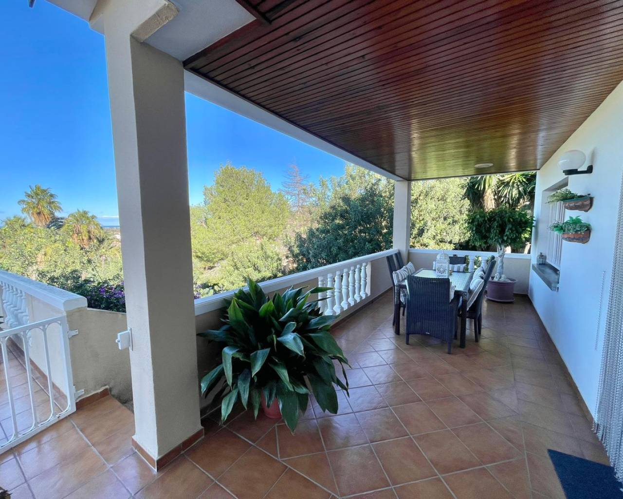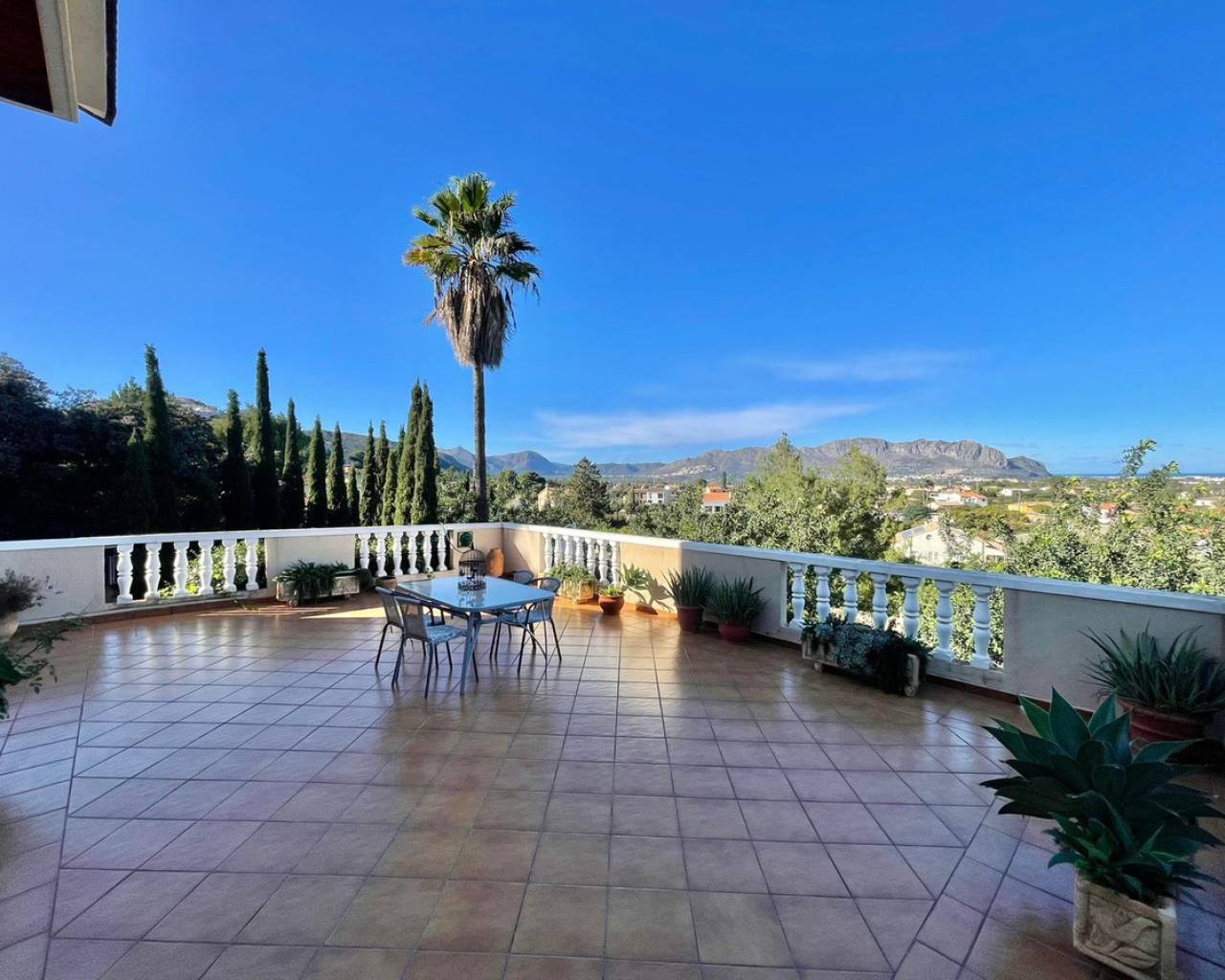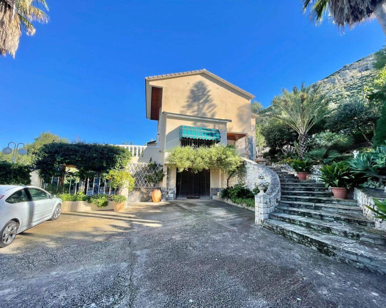 Stunning 400m² Villa for Sale in Pedreguer with Panoramic Sea and Mountain Views This exceptional villa, set on a private 3,450 m² plot, combines spaciousness, comfort, and breathtaking views, offering a unique lifestyle in a tranquil and exclusive setting. Functional and Spacious Layout The villa is arranged over three levels: Ground Floor: An elegant entrance hall leads to a bright and expansive living-dining room filled with natural light. Additionally, there is another lounge with a fireplace that opens onto a covered terrace and a 60 m² open terrace, perfect for enjoying the panoramic views. This floor also includes a guest toilet, an independent kitchen with a pantry, and access to the utility room and the extensive garden. Upper Floor: This level features five bedrooms with built-in wardrobes, including a master bedroom with an en-suite bathroom. There is also a second full bathroom. One of the bedrooms provides access to a covered terrace with stunning views of the city and the sea. Lower Floor: An independent guest apartment, ideal for family, visitors, or even as a professional office. It comprises a living-dining room with a fireplace, access to a covered terrace, a kitchen, pantry, full bathroom, storage room, and a large closed garage. Outdoor Spaces and Features Parking Area: Covered parking for two vehicles, plus additional uncovered space for several more. Gardens: A well-maintained garden with spacious areas and an additional small house currently used as a storage room. Comfort and Details: Air conditioning with a heat pump, high ceilings that enhance the sense of space and design, and high-quality finishes, carefully built by the current owners. Water Supply: The property features two water meters—one for potable water for the house and another dedicated solely to the garden's automatic irrigation system. Unmatched Potential This villa is perfect for a large family or for those seeking a Mediterranean retreat that combines space, privacy, and proximity to local amenities. The property stands out for its versatility and customization potential, making it ideal for enjoying the Mediterranean climate year-round. Don't miss the chance to visit this magnificent property and be captivated by its unique charm and privileged location.