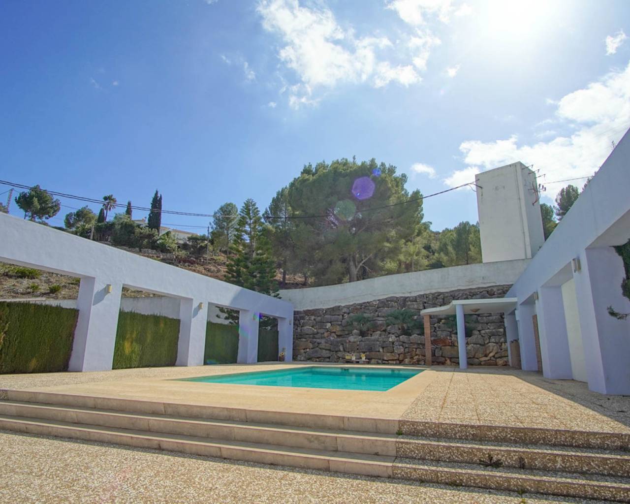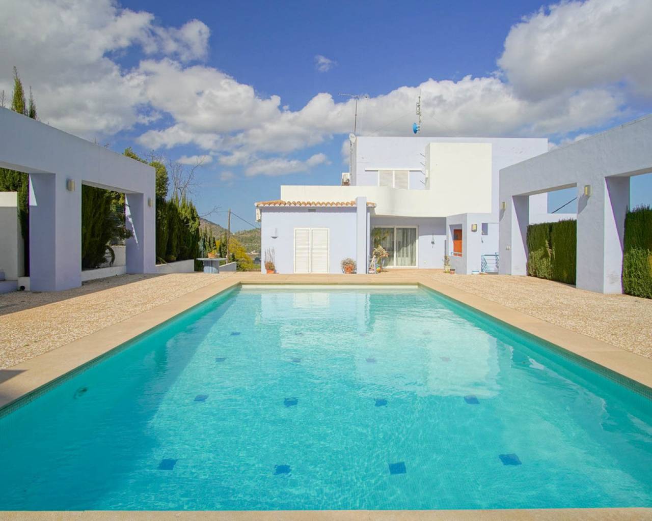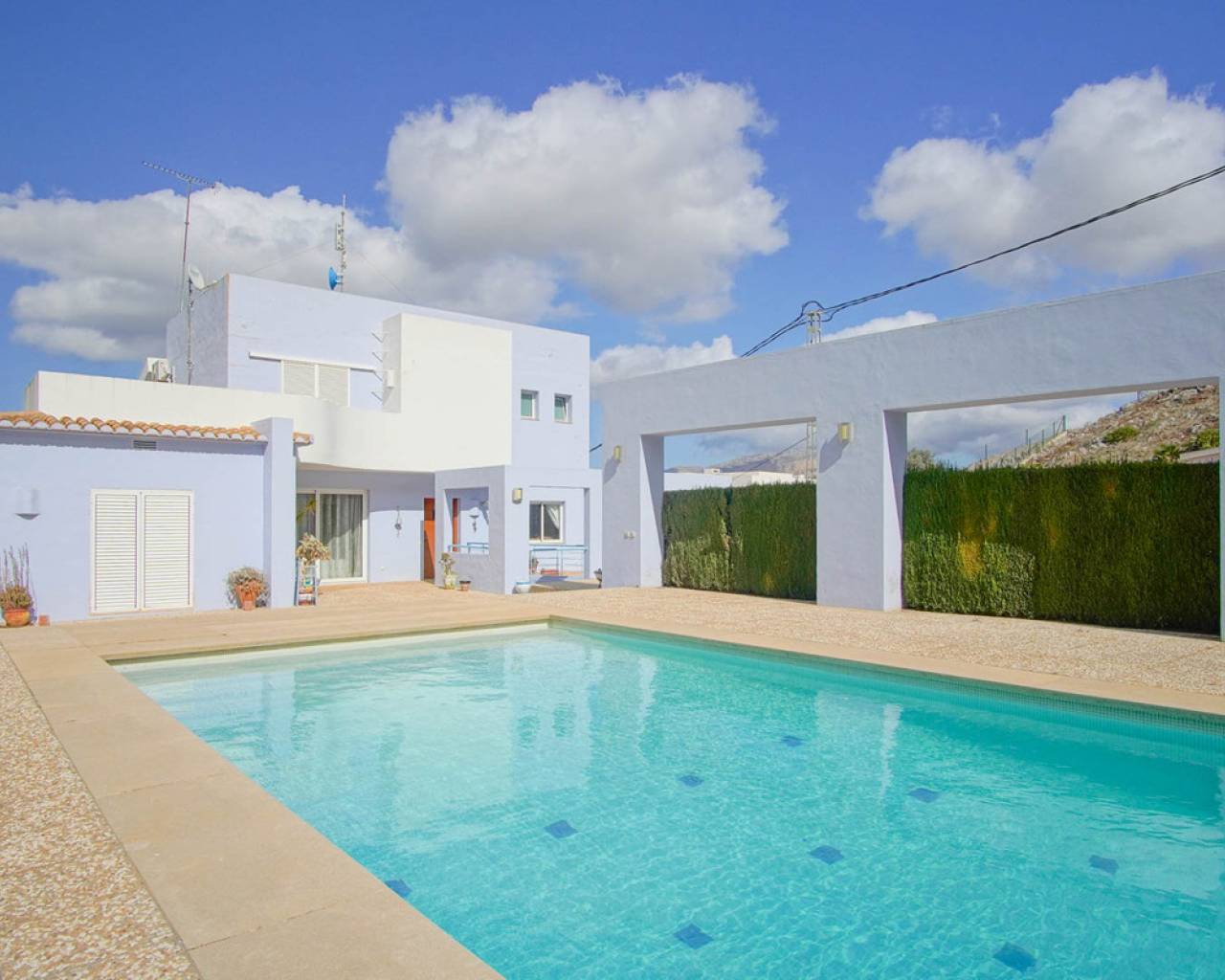 Welcome to this spectacular detached villa, a true solar paradise nestled on a gently sloping plot that embraces a lush Mediterranean garden and a swimming pool complete with dreamy chill out area, outdoor bathroom and a barbecue area perfect for memorable gatherings. From here, panoramic views of the majestic mountains and, on clear days, even glimpses of the sparkling Mediterranean Sea. This impressive property has two entrances, one at the top ideal for parking several vehicles, and another that leads directly to three private garages. Crossing the main threshold, you will be greeted by a welcoming living-dining room and a fully equipped eat-in kitchen, both with access to a terrace offering picture postcard views. Furthermore, on this floor, you will find a full bathroom and two bedrooms, one of which opens directly onto the swimming pool, inviting you to enjoy a dip at any time. Ascending an elegant staircase, you will find a surprisingly open-plan area on the first floor, which includes an office with inspiring panoramic views, a luxurious dressing room that leads to the master bedroom and a designer bathroom that perfectly combines functionality with luxury. This space becomes an oasis of tranquillity where you can relax and delight in the incomparable views of the valley. As if that wasn't enough, the semi-basement has been cleverly designed to function as an independent flat, offering an additional bedroom, a well-equipped bathroom, a laundry area with its own patio and a versatile space ready to adapt to your needs. Strategically located, this property offers easy access to the motorway and national road, allowing you to quickly reach destinations such as Alicante and Valencia. Imagine being able to enjoy the peace and serenity of your own Mediterranean oasis, while knowing that just a few minutes' drive away you have at your disposal all the amenities and services that these vibrant cities have to offer. Both Alicante with its bustling coastal life and international airport, and Valencia with its rich history and cosmopolitan modernity, are within easy reach. Whether it's a day of shopping in the exclusive shopping centres, an afternoon of culture in the museums and theatres, or simply savouring the delicious local cuisine, you'll have it all at your fingertips. And when you return home, you will be greeted by breathtaking views of the mountains and the Mediterranean Sea, reminding you that you have found the perfect balance between urban life and the tranquillity of the countryside. This property is more than a home, it's a lifestyle, whether for a large family or for those who love to host, here you will find the perfect space and ambience to create unforgettable memories... Discover the magic of living in Pedreguer and make this place your home where every day becomes a new adventure, come and discover your luxury retreat in the heart of the Mediterranean!