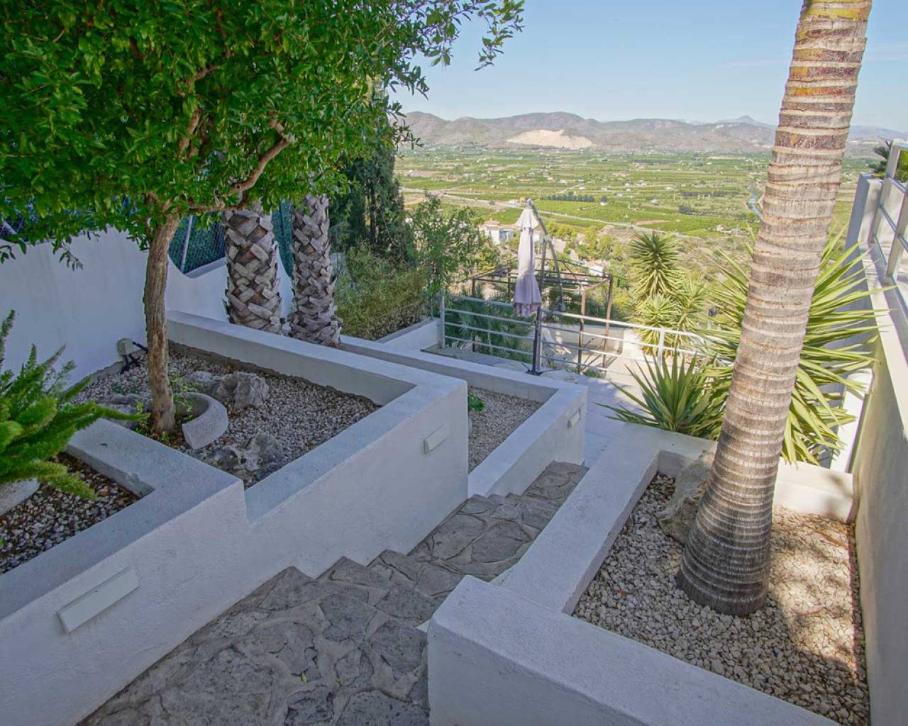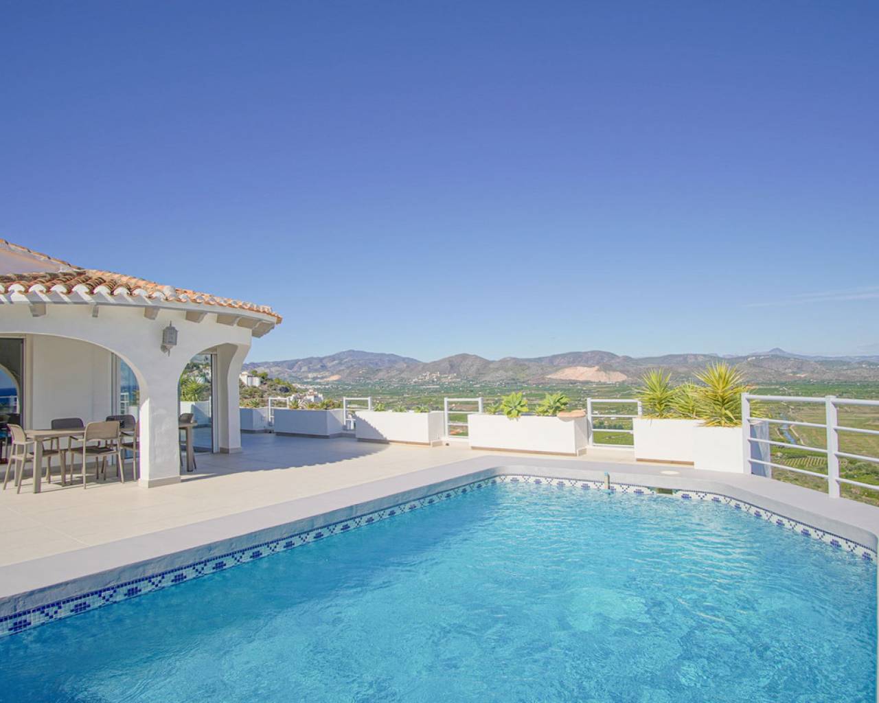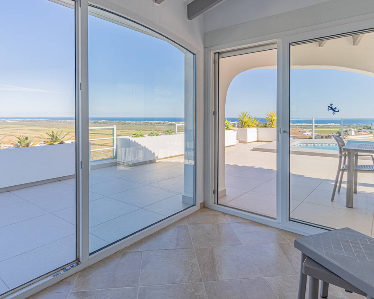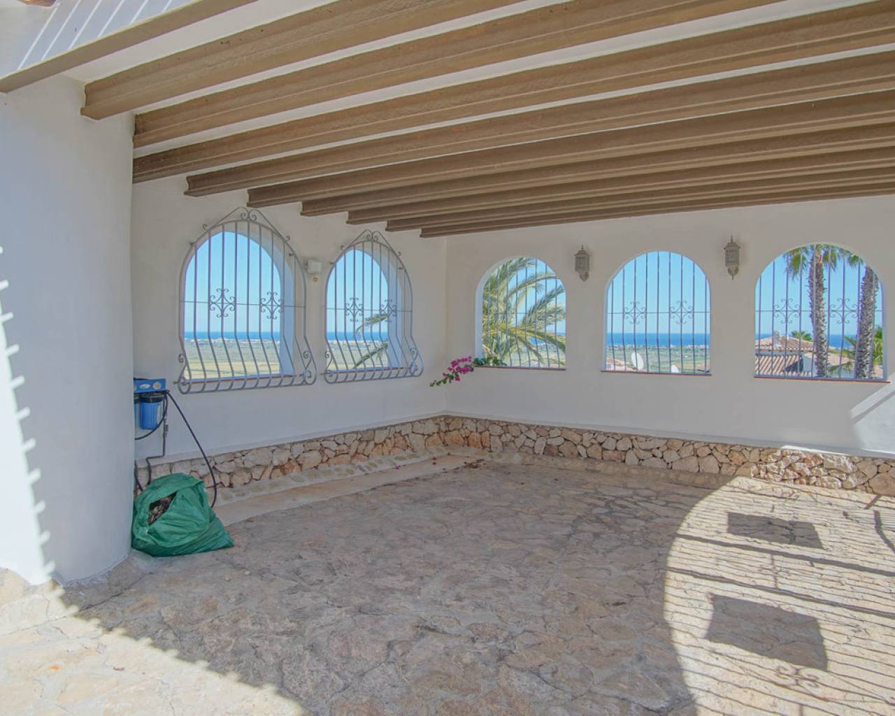 Located in the privileged area of Montepego, this stunning Mediterranean style villa, modernised in 2022, offers unrivalled panoramic views of the sea, the mountains and the Marjal Natural Park. Designed to combine traditional elegance with modern comfort, this property is the perfect place to enjoy coastal living in a unique setting. Entering through the carport, equipped with an electric car charging point, you will be greeted by an entrance level that is laid out in a comfortable and functional way, without the need for stairs. Here you will find a spacious living room and a modern kitchen, both with large windows that allow you to enjoy the spectacular views. On this floor, you will find two bedrooms and a master bedroom with en-suite bathroom; all rooms have direct access to the terrace, providing a continuous connection to the outside and a bright and welcoming atmosphere. The naya, a covered outdoor space ideal for relaxing, invites you to enjoy the Mediterranean climate while contemplating the sea and the private swimming pool, with the perfect barbecue area for family gatherings or with friends. A second independent living area is accessed via external stairs. This area has a living room with an open kitchen and panoramic windows, accompanied by an automatic pergola that allows you to enjoy the outdoors at any time of the day. In addition, there are two bedrooms with en-suite bathrooms, a laundry room and a storage room, offering additional space for independent living. The exterior of the villa is completed with a well-kept Mediterranean garden and several terraces from where you can enjoy the landscape that surrounds the property. Its excellent location allows access in just a few minutes to the beaches of Las Marinas or Deveses in Denia, as well as to shopping centres in Ondara and El Vergel, and the prestigious Oliva Nova Golf Resort. The cities of Alicante and Valencia are only an hour's drive away, making it easy to commute to the main urban centres. With ample space to comfortably accommodate two families, this villa is ideal for those who enjoy entertaining guests. A property that combines luxury, comfort and an unbeatable location on the Costa Blanca.