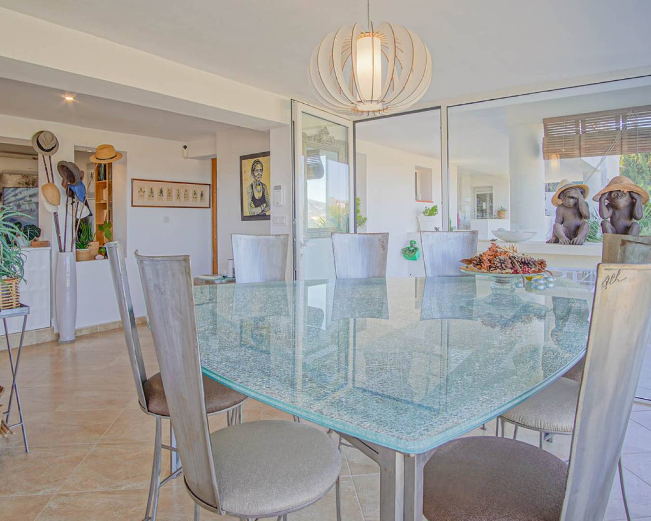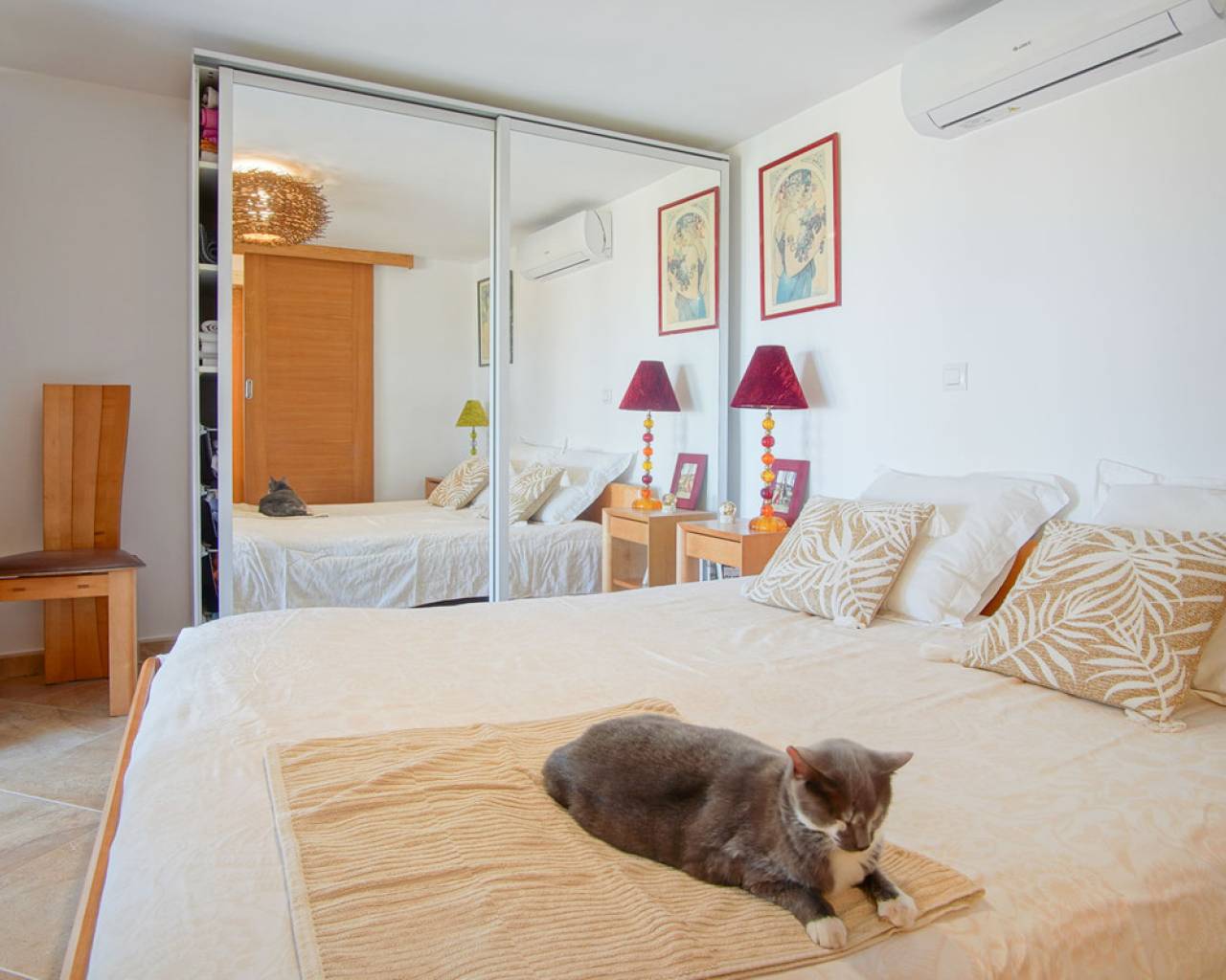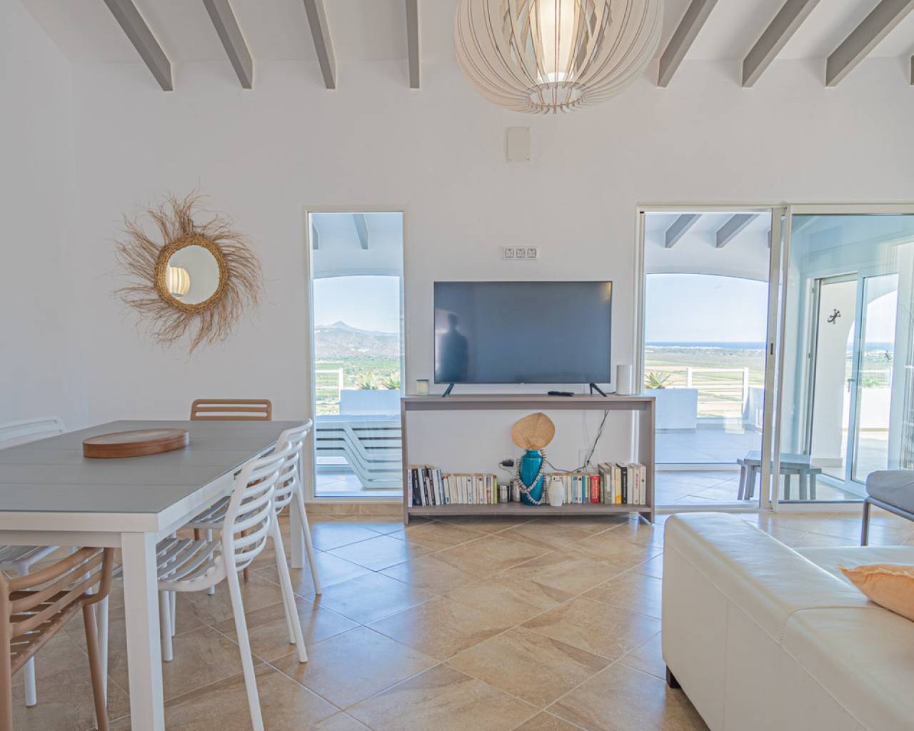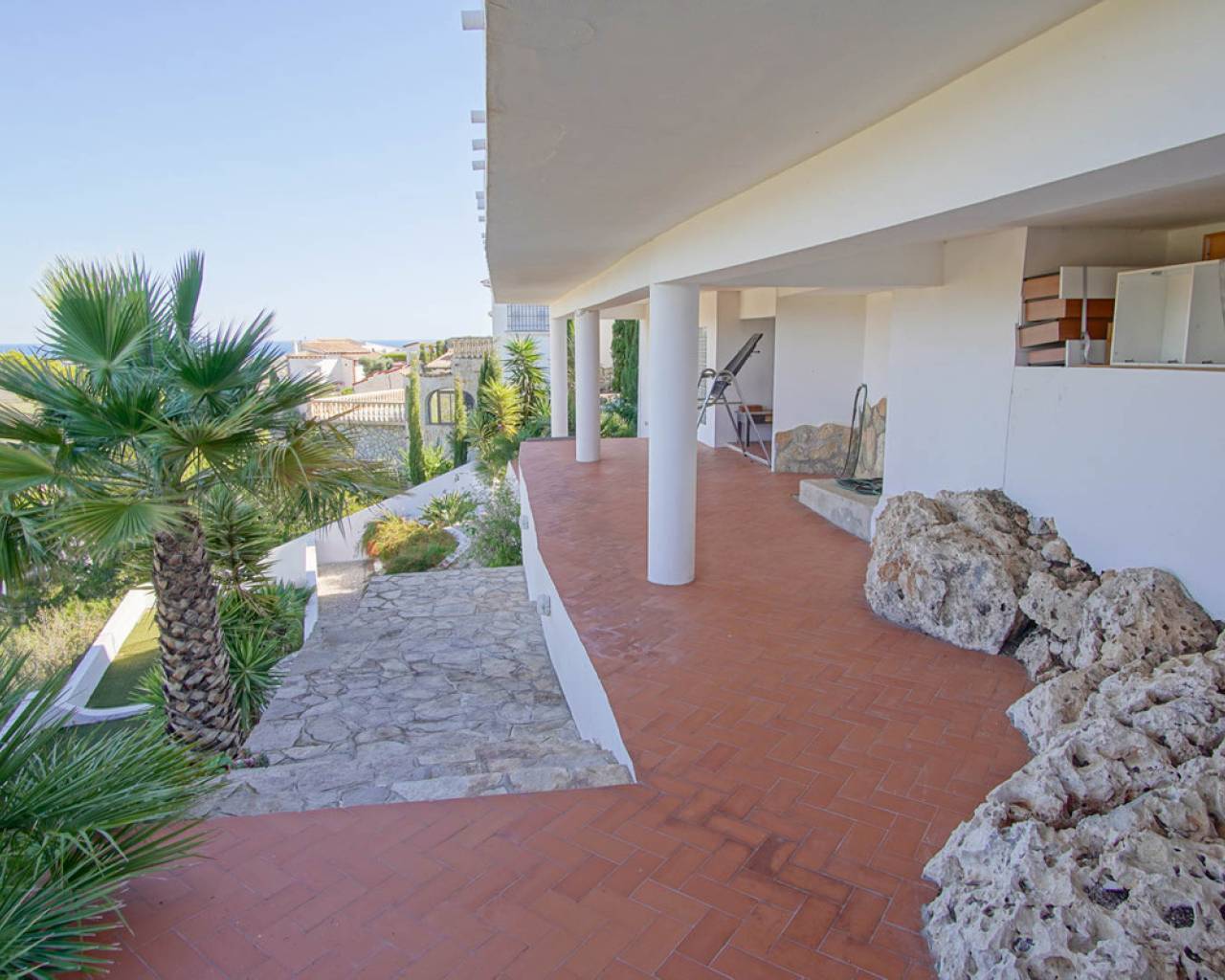 Located in the privileged area of Montepego, this stunning Mediterranean style villa, modernised in 2022, offers unrivalled panoramic views of the sea, the mountains and the Marjal Natural Park. Designed to combine traditional elegance with modern comfort, this property is the perfect place to enjoy coastal living in a unique setting. Entering through the carport, equipped with an electric car charging point, you will be greeted by an entrance level that is laid out in a comfortable and functional way, without the need for stairs. Here you will find a spacious living room and a modern kitchen, both with large windows that allow you to enjoy the spectacular views. On this floor, you will find two bedrooms and a master bedroom with en-suite bathroom; all rooms have direct access to the terrace, providing a continuous connection to the outside and a bright and welcoming atmosphere. The naya, a covered outdoor space ideal for relaxing, invites you to enjoy the Mediterranean climate while contemplating the sea and the private swimming pool, with the perfect barbecue area for family gatherings or with friends. A second independent living area is accessed via external stairs. This area has a living room with an open kitchen and panoramic windows, accompanied by an automatic pergola that allows you to enjoy the outdoors at any time of the day. In addition, there are two bedrooms with en-suite bathrooms, a laundry room and a storage room, offering additional space for independent living. The exterior of the villa is completed with a well-kept Mediterranean garden and several terraces from where you can enjoy the landscape that surrounds the property. Its excellent location allows access in just a few minutes to the beaches of Las Marinas or Deveses in Denia, as well as to shopping centres in Ondara and El Vergel, and the prestigious Oliva Nova Golf Resort. The cities of Alicante and Valencia are only an hour's drive away, making it easy to commute to the main urban centres. With ample space to comfortably accommodate two families, this villa is ideal for those who enjoy entertaining guests. A property that combines luxury, comfort and an unbeatable location on the Costa Blanca.