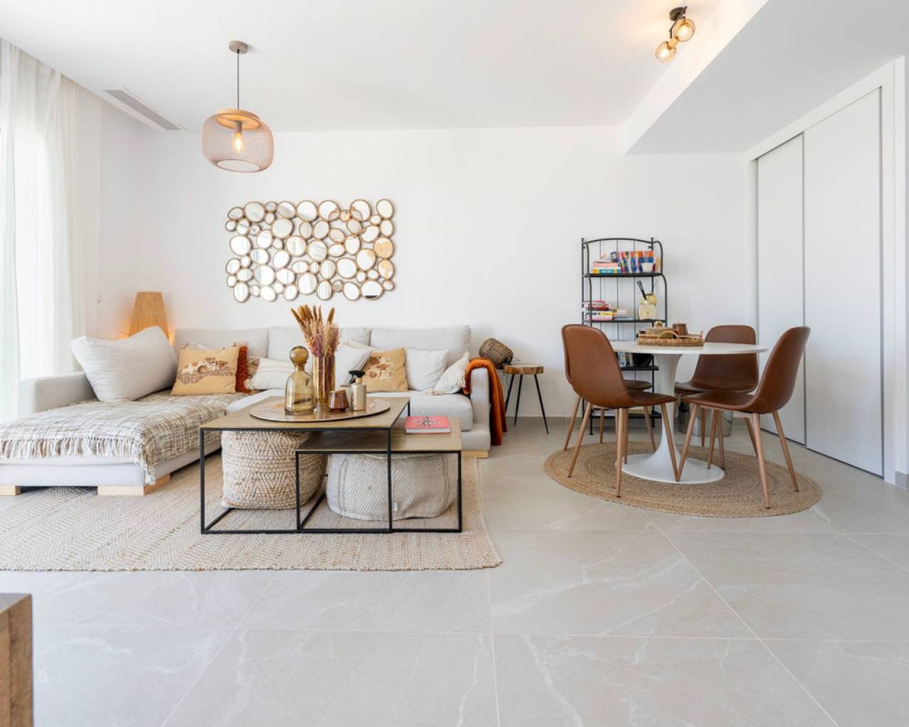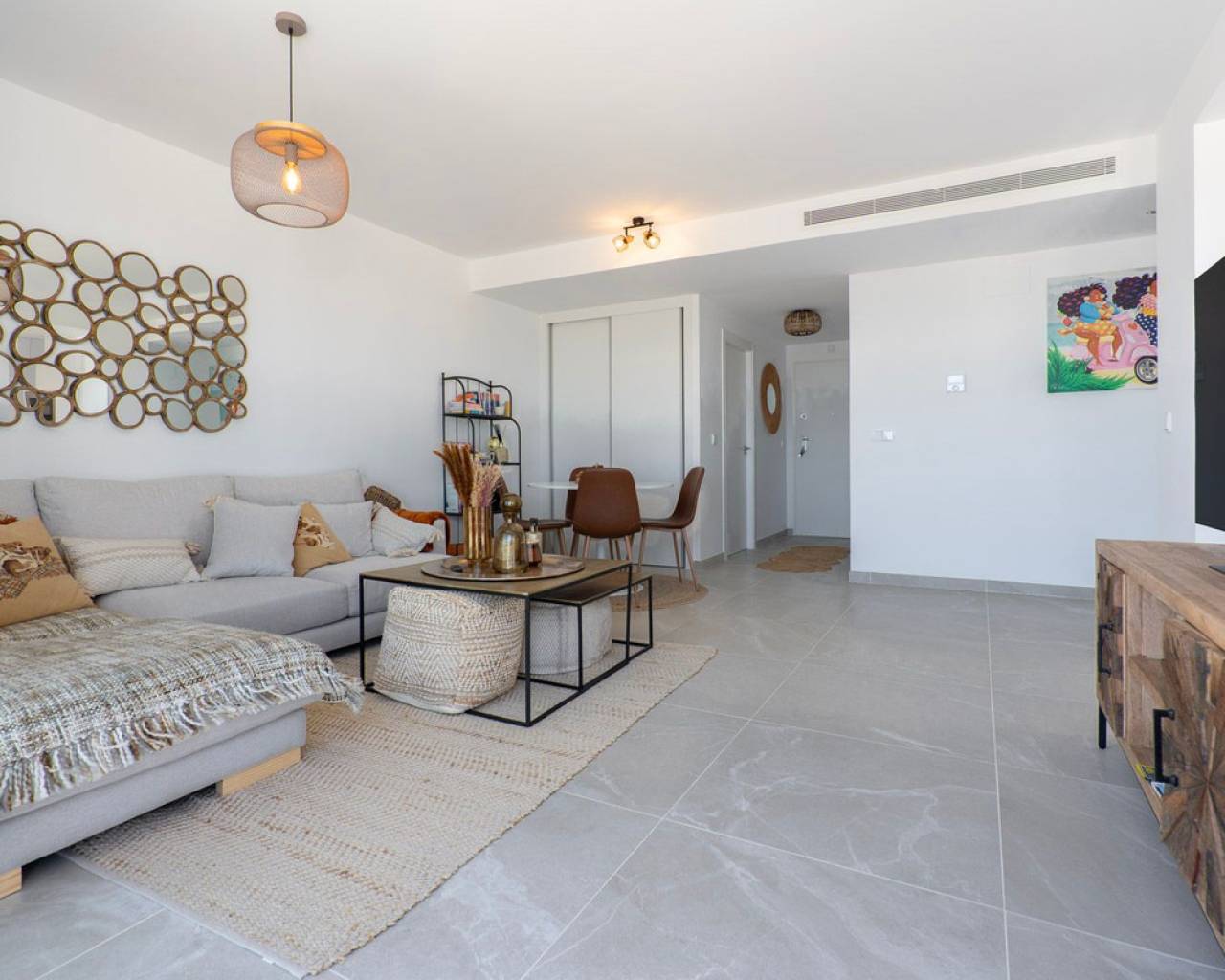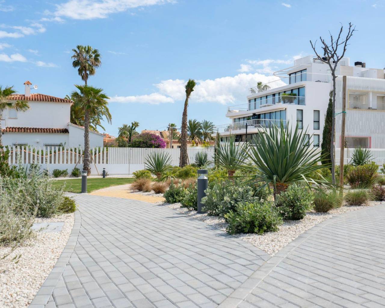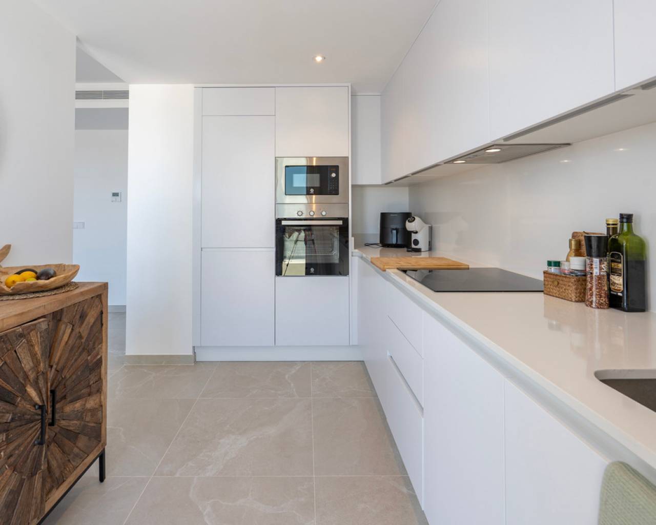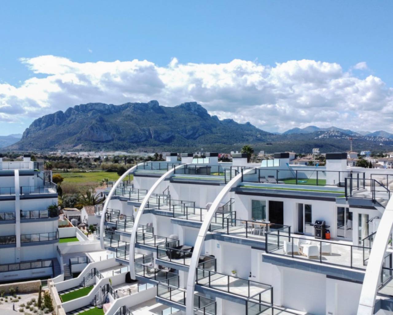 Fantastic luxury penthouse with panoramic sea views, located on the sandy beach of Playa de la Almadraba, in the modern Taylor Wimpey Bella Beach complex. This exclusive penthouse has stunning sea views from all rooms and also features a rooftop terrace of no less than 94.85 m2 where you can enjoy spectacular 360° views. To the east, the coastline stretches to Gandía, to the west the towers of the Montgó mountain, to the north you can see the sea directly, and to the south it overlooks the impressive Sierra de Segaria. With a usable area of 84.90 m2 and a terrace of 51.46 m2 on the same floor, this penthouse offers space and comfort. It features an elegant hallway with a spacious double bedroom to the left and a bathroom to the right. The hallway leads to a living room, where the spectacular sea view immediately captures attention and where sliding windows give access to the terrace. The modern, fully equipped kitchen is located next to the living room and also has direct access to the terrace. Further down the hallway is a second double bedroom with access to the terrace, and at the end of the hallway is the master bedroom with an en-suite bathroom, dressing room, and also direct access to the terrace. The penthouse is equipped with air conditioning for heating and cooling, and all windows are fitted with electric shutters. It is sold fully furnished, allowing you to move in immediately. On the terrace, there is also a handy storage room and a built-in closet with a washing machine. Additionally, you will have a private parking space and an independent storage room of 7.15 m² in the underground garage. The location is ideal: you will enjoy total tranquility and privacy, while the bustling Denia with its vibrant restaurants, shops, and marina is only a 15-minute drive away. This unique penthouse is part of a new complex completed in 2024, giving you the opportunity to have your hands on a dream home ready to move in, as good as new. Contact us today for a visit.
