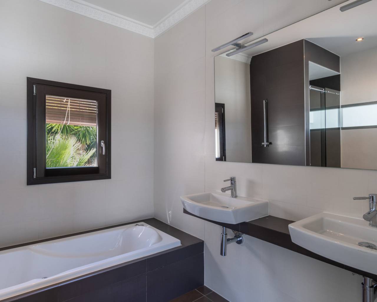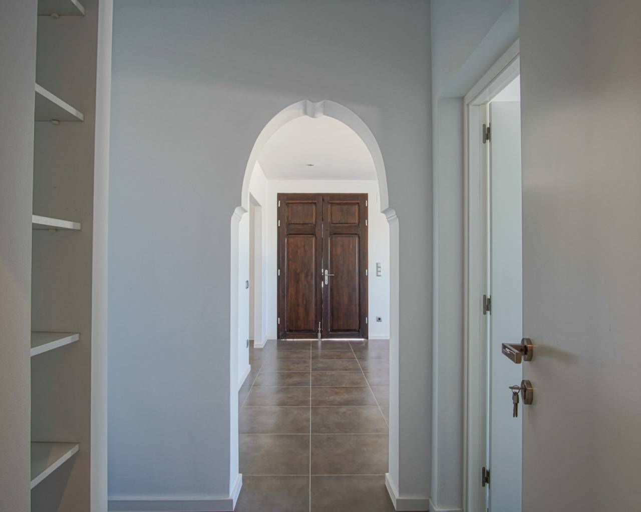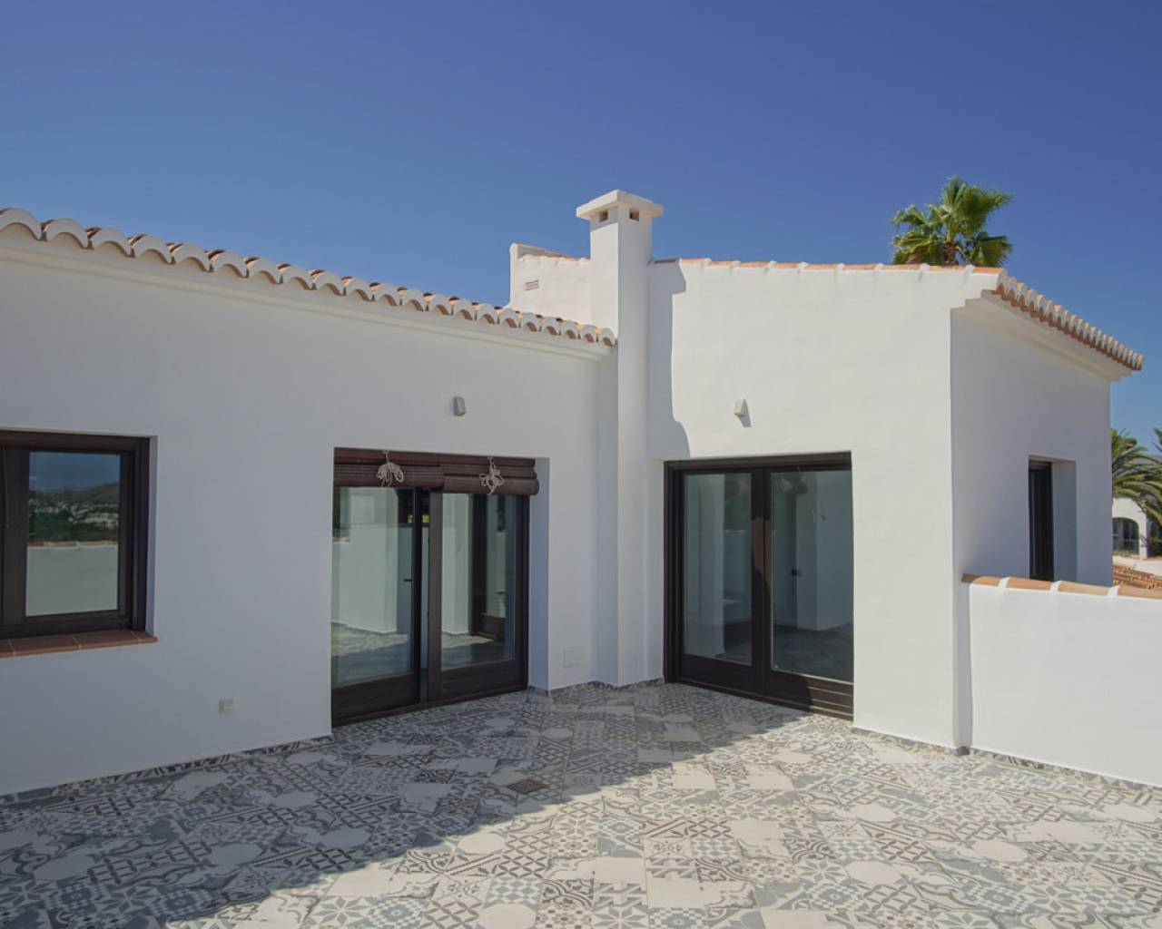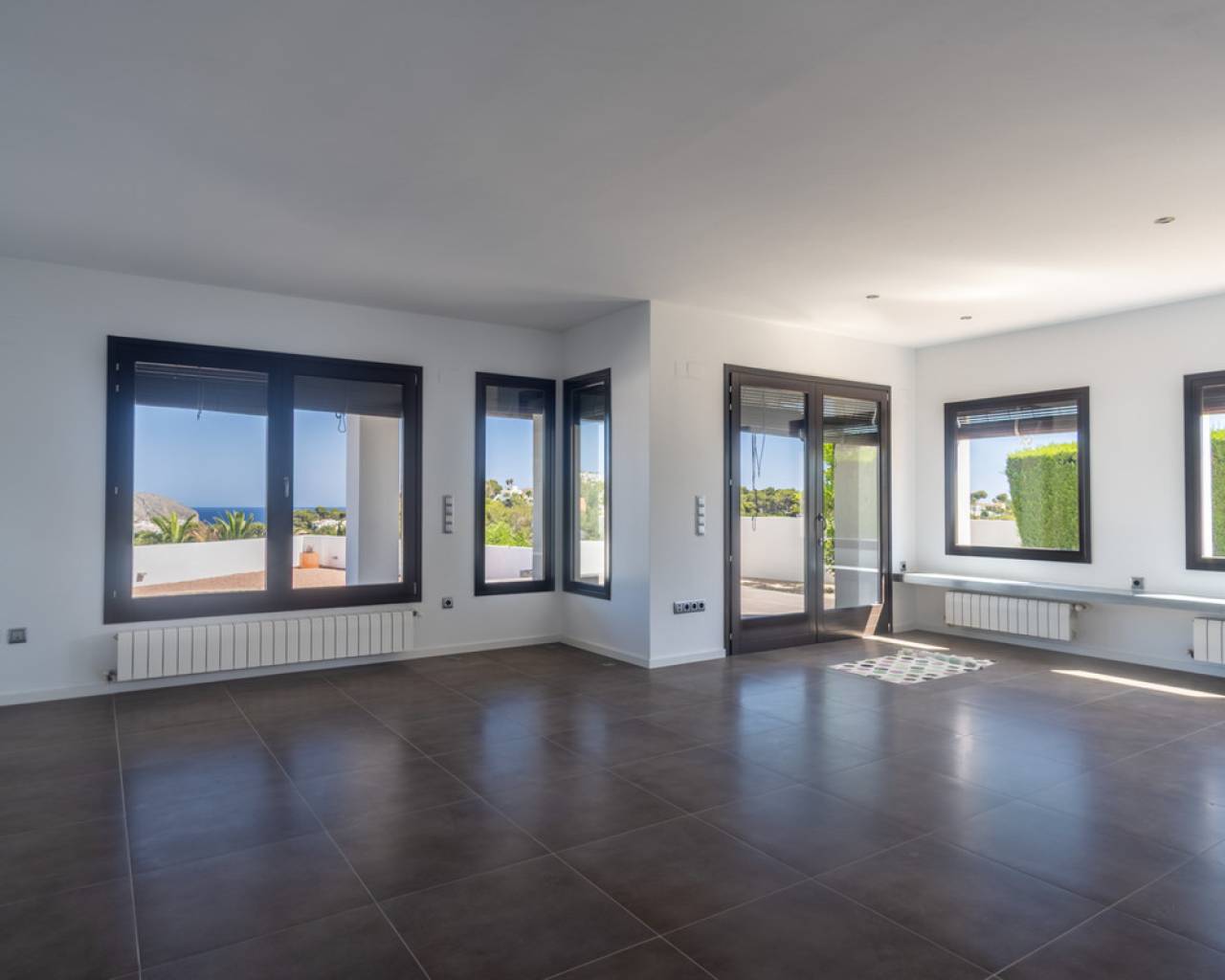 Located in one of the most exclusive areas of Moraira, this captivating Mediterranean-style villa offers stunning open views of Cabo de Moraira, the sea, and the entire coastline. Nestled atop a hill, the property enjoys absolute privacy in its outdoor spaces: a spacious sunny terrace, a low-maintenance garden, and a uniquely designed pool, all perfectly integrated into the natural surroundings. The home stands out for its unique character and a design crafted with attention to the smallest details. Spread over two floors connected by an interior staircase, both levels also have independent access, which adds great versatility and functionality. On the main floor, there is a large and bright living-dining room with a fireplace, an open area prepared for kitchen installation, and a laundry room with pre-installation already done, as well as a full bathroom with a shower. On this same floor, there is a charming annex apartment, with independent access and interior connection, ideal for guests or as a master suite. This space features a comfortable living-dining area convertible into a bedroom, a second bedroom, a full bathroom, and an additional area designated for a kitchen or dressing room, also with the necessary pre-installations. The entrance to this annex features a beautiful restored antique wooden door that adds an authentic and distinctive touch. The upper floor houses two bedrooms, a full bathroom, and a spectacular solarium-style terrace with sea views, perfect for relaxing or enjoying the sunsets. All the main rooms of the villa enjoy views of the sea, the garden, and the pool, reinforcing the feeling of being in a private oasis. The garden has been designed to require minimal maintenance and includes an automatic irrigation system. The property also has a parking area within the premises, with a motorized sliding door for vehicles and a separate pedestrian entrance. Among the finishes and amenities, notable features include aluminum windows with a wood-effect finish and double security glazing, shutters and mosquito nets (motorized on the upper floor), built-in wardrobes with sliding doors, radiator heating, and warm, adjustable lighting in both floors and ceilings. A property with soul, perfect for those seeking tranquility, breathtaking sea views, and the unmistakable charm of Mediterranean style.