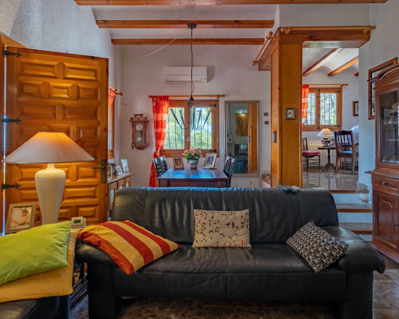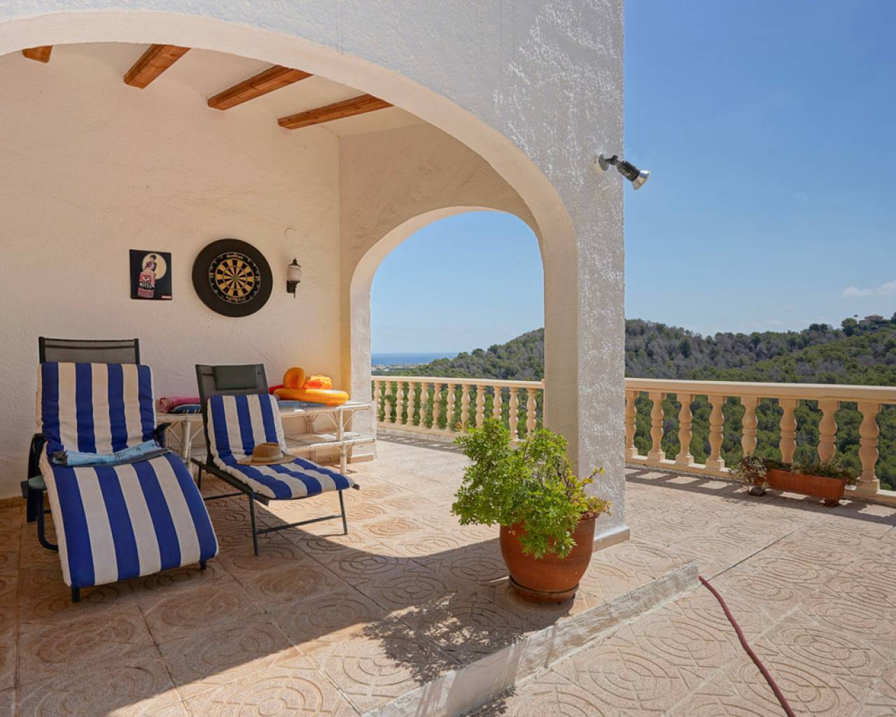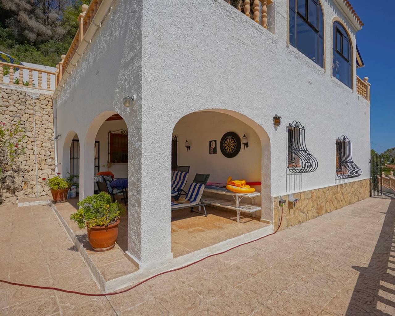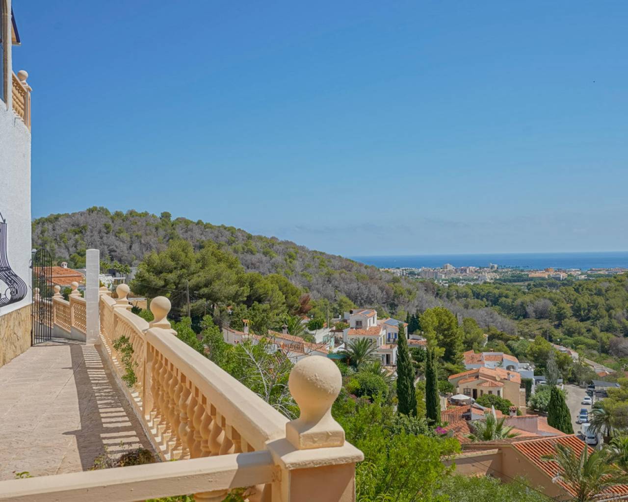 Located on a quiet cul-de-sac within the Sol de Este urbanization, this villa offers total privacy, stunning sea views, and a cozy atmosphere, ideal for both permanent residence and vacation home. Due to its elevated position, it enjoys open views over the natural landscape and the Mediterranean. The property features 4 bedrooms spread over three floors. On the main floor, we find a spacious living-dining room with a fireplace, a separate kitchen with access to a terrace and barbecue area, a study, and two bedrooms that share a bathroom. The east-facing naya, the north-facing balcony, and the south-facing terrace allow you to enjoy the sun at any time of the day. On the upper floor is the master bedroom with an en-suite bathroom. The ground floor offers an additional room, a guest toilet, a storage room with pre-installation for a kitchen—ideal for an independent apartment—and direct access to the double garage, with the possibility of expansion. Next to it, a covered terrace leads to the large private pool of 53 m² facing south. Equipped with air conditioning, gas heating via radiators, built-in wardrobes, televisions, and infrared heating, this villa offers comfort year-round. Additionally, it is only a 4-minute drive from Arenal Beach and close to the Benitachell Golf Club, making it an excellent option for both living and investing.