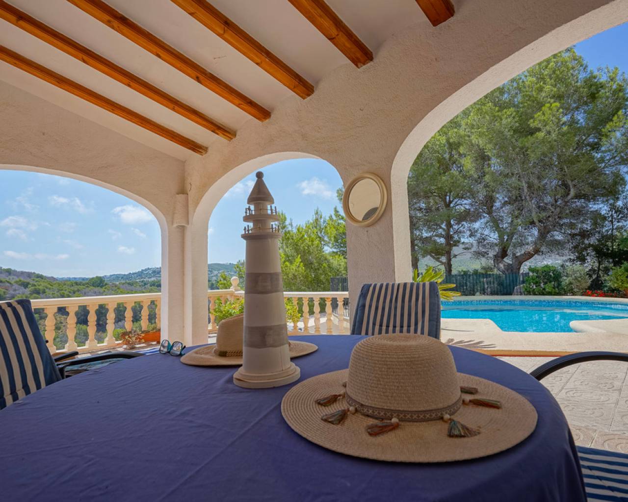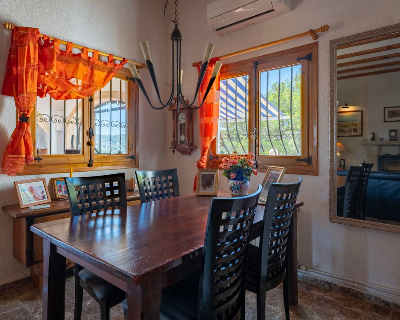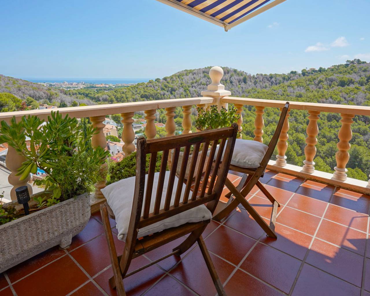 Located on a quiet cul-de-sac within the Sol de Este urbanization, this villa offers total privacy, stunning sea views, and a cozy atmosphere, ideal for both permanent residence and vacation home. Due to its elevated position, it enjoys open views over the natural landscape and the Mediterranean. The property features 4 bedrooms spread over three floors. On the main floor, we find a spacious living-dining room with a fireplace, a separate kitchen with access to a terrace and barbecue area, a study, and two bedrooms that share a bathroom. The east-facing naya, the north-facing balcony, and the south-facing terrace allow you to enjoy the sun at any time of the day. On the upper floor is the master bedroom with an en-suite bathroom. The ground floor offers an additional room, a guest toilet, a storage room with pre-installation for a kitchen—ideal for an independent apartment—and direct access to the double garage, with the possibility of expansion. Next to it, a covered terrace leads to the large private pool of 53 m² facing south. Equipped with air conditioning, gas heating via radiators, built-in wardrobes, televisions, and infrared heating, this villa offers comfort year-round. Additionally, it is only a 4-minute drive from Arenal Beach and close to the Benitachell Golf Club, making it an excellent option for both living and investing.