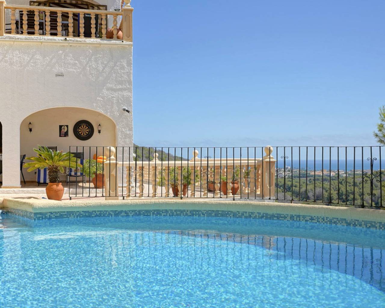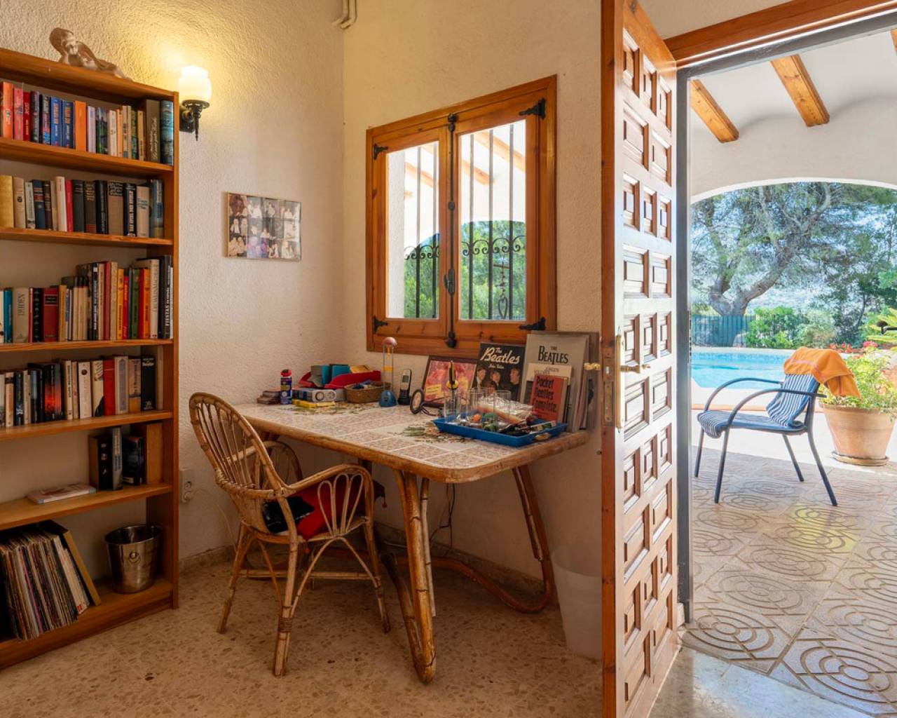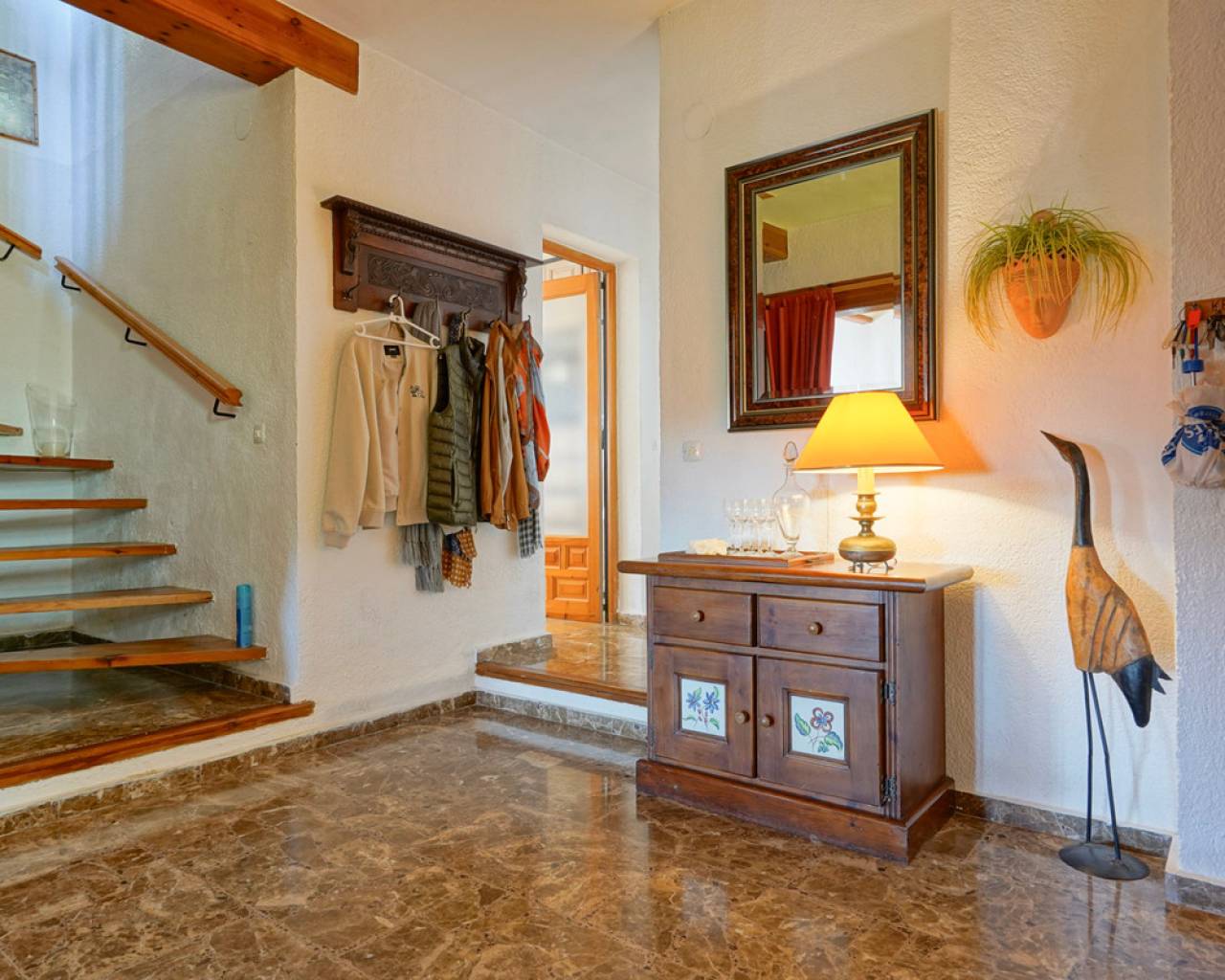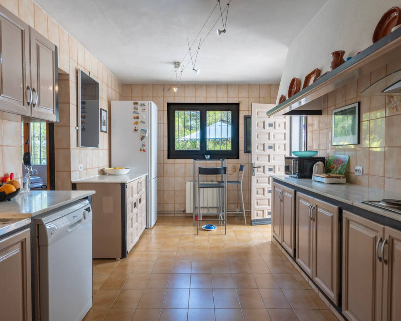 Located on a quiet cul-de-sac within the Sol de Este urbanization, this villa offers total privacy, stunning sea views, and a cozy atmosphere, ideal for both permanent residence and vacation home. Due to its elevated position, it enjoys open views over the natural landscape and the Mediterranean. The property features 4 bedrooms spread over three floors. On the main floor, we find a spacious living-dining room with a fireplace, a separate kitchen with access to a terrace and barbecue area, a study, and two bedrooms that share a bathroom. The east-facing naya, the north-facing balcony, and the south-facing terrace allow you to enjoy the sun at any time of the day. On the upper floor is the master bedroom with an en-suite bathroom. The ground floor offers an additional room, a guest toilet, a storage room with pre-installation for a kitchen—ideal for an independent apartment—and direct access to the double garage, with the possibility of expansion. Next to it, a covered terrace leads to the large private pool of 53 m² facing south. Equipped with air conditioning, gas heating via radiators, built-in wardrobes, televisions, and infrared heating, this villa offers comfort year-round. Additionally, it is only a 4-minute drive from Arenal Beach and close to the Benitachell Golf Club, making it an excellent option for both living and investing.