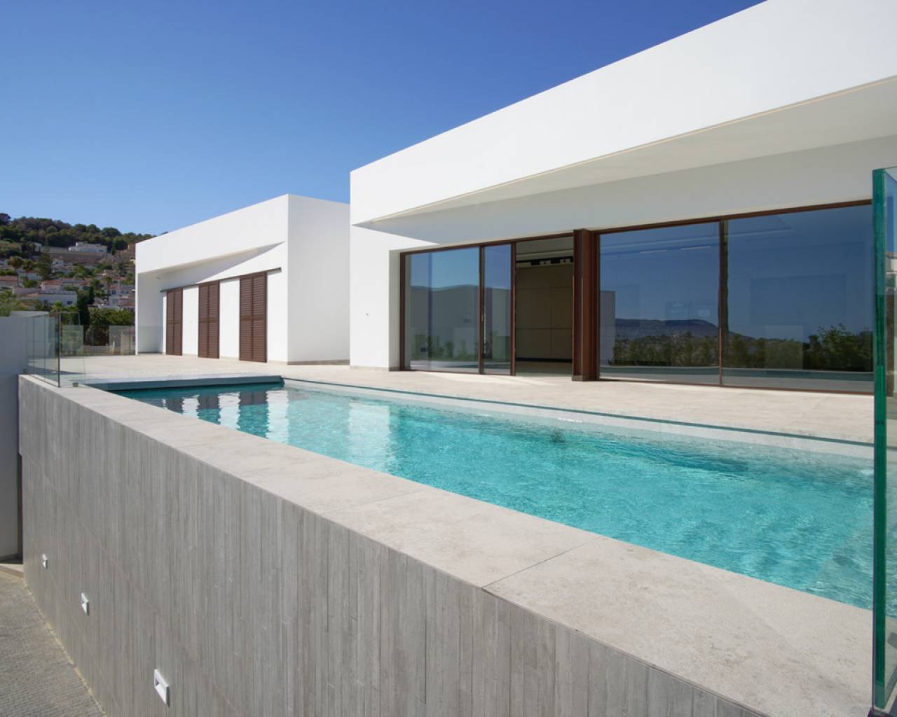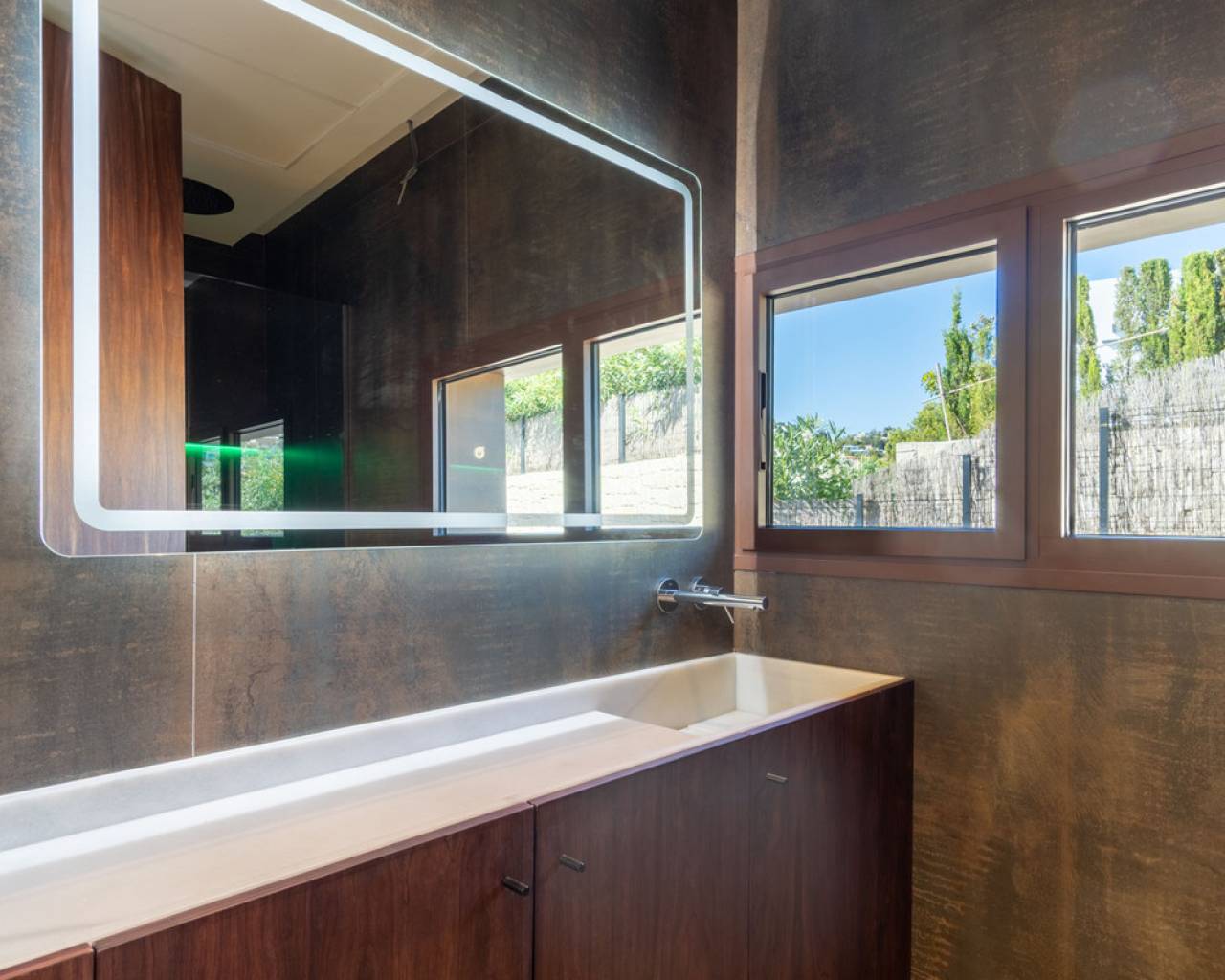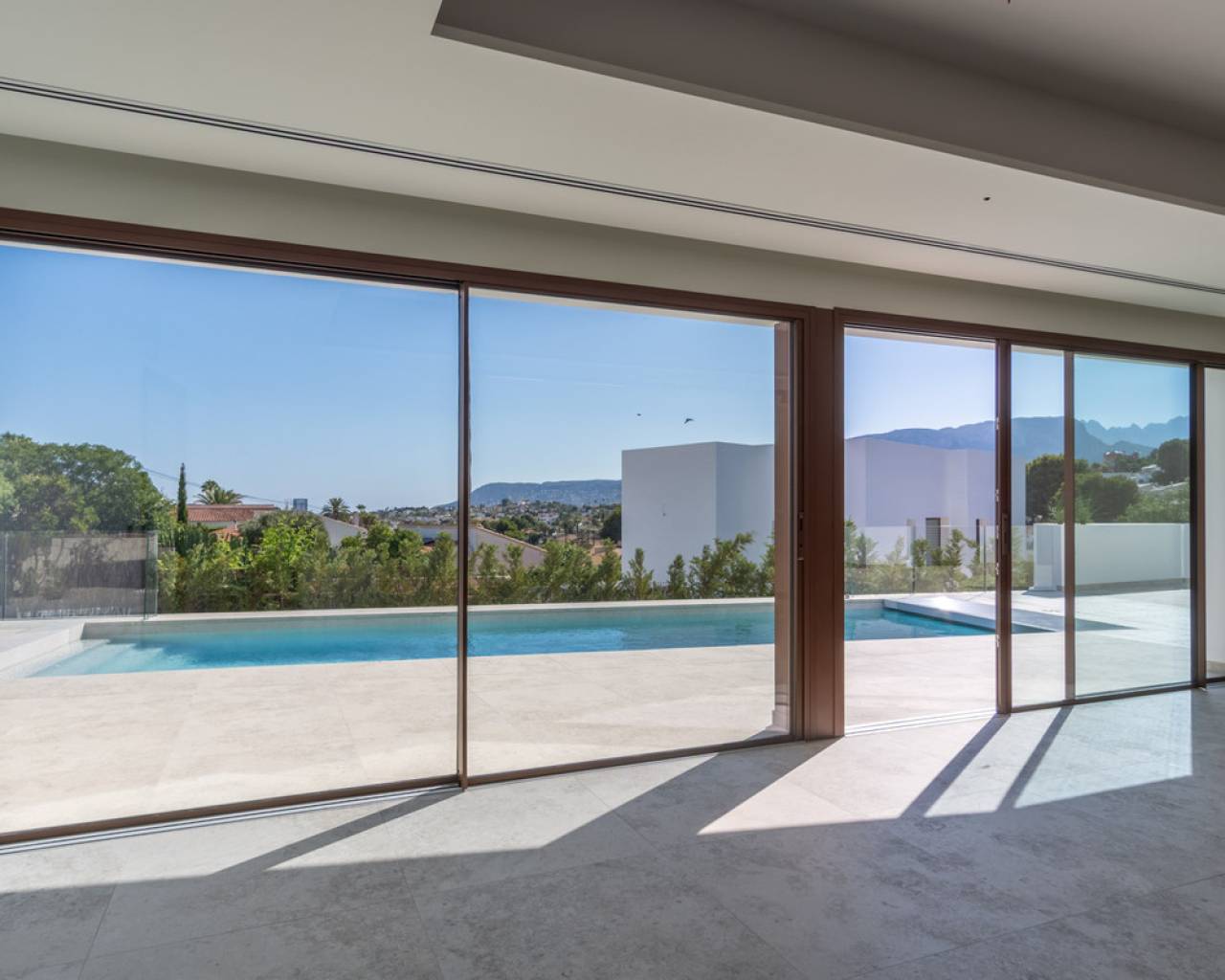This newly built villa stands out for its modern style, high level of comfort, and excellent location. It is located in one of the most sought-after residential areas between Calpe and Moraira, just 1.5 km from La Fustera beach and very close to the Les Basetes Marina. The property is distributed over two floors with spacious, bright, and well-utilized spaces. It comprises four bedrooms, two of which have en-suite bathrooms, three full bathrooms, a guest toilet, a large living-dining room, and a fully equipped open kitchen. It also includes a laundry room and a spa and leisure area with pre-installation for a jacuzzi, a bar, a cinema room, and other entertainment options. Outdoors, it features a heated pool with LED lighting and an automatic cover, wide terraces, and an easy-to-maintain garden, perfect for enjoying the pleasant climate all year round. It is equipped with high-quality materials and technology, including underfloor heating, ducted air conditioning with room control, aluminum windows with thermal insulation, low-emission glass, photovoltaic installation, motorized blinds, fitted wardrobes, LED lighting, and a pre-installed alarm system. A modern, comfortable, and well-located villa, perfect for those looking to live close to the sea and enjoy the Mediterranean lifestyle with all the amenities.