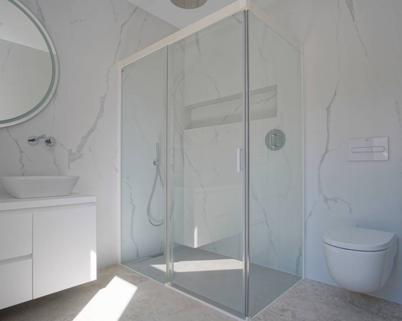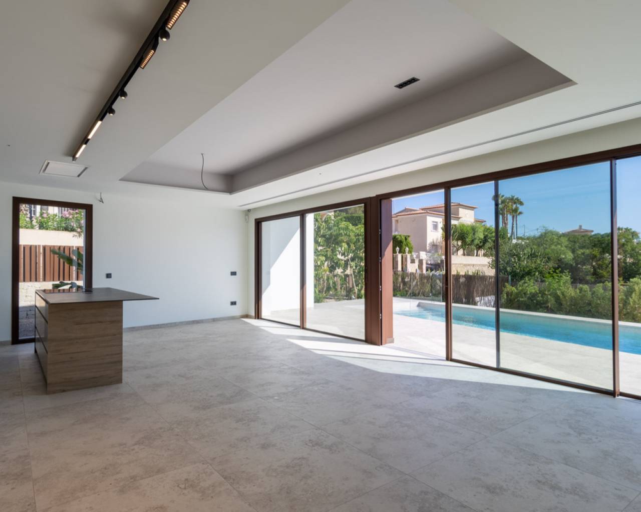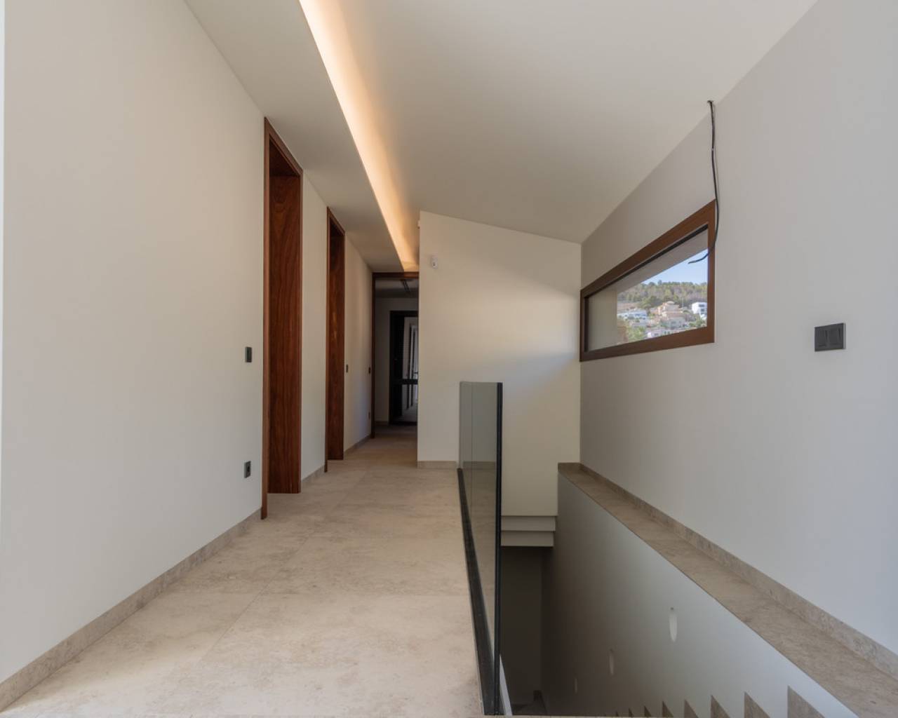 This newly built villa stands out for its modern style, high level of comfort, and excellent location. It is located in one of the most sought-after residential areas between Calpe and Moraira, just 1.5 km from La Fustera beach and very close to the Les Basetes Marina. The property is distributed over two floors with spacious, bright, and well-utilized spaces. It comprises four bedrooms, two of which have en-suite bathrooms, three full bathrooms, a guest toilet, a large living-dining room, and a fully equipped open kitchen. It also includes a laundry room and a spa and leisure area with pre-installation for a jacuzzi, a bar, a cinema room, and other entertainment options. Outdoors, it features a heated pool with LED lighting and an automatic cover, wide terraces, and an easy-to-maintain garden, perfect for enjoying the pleasant climate all year round. It is equipped with high-quality materials and technology, including underfloor heating, ducted air conditioning with room control, aluminum windows with thermal insulation, low-emission glass, photovoltaic installation, motorized blinds, fitted wardrobes, LED lighting, and a pre-installed alarm system. A modern, comfortable, and well-located villa, perfect for those looking to live close to the sea and enjoy the Mediterranean lifestyle with all the amenities.