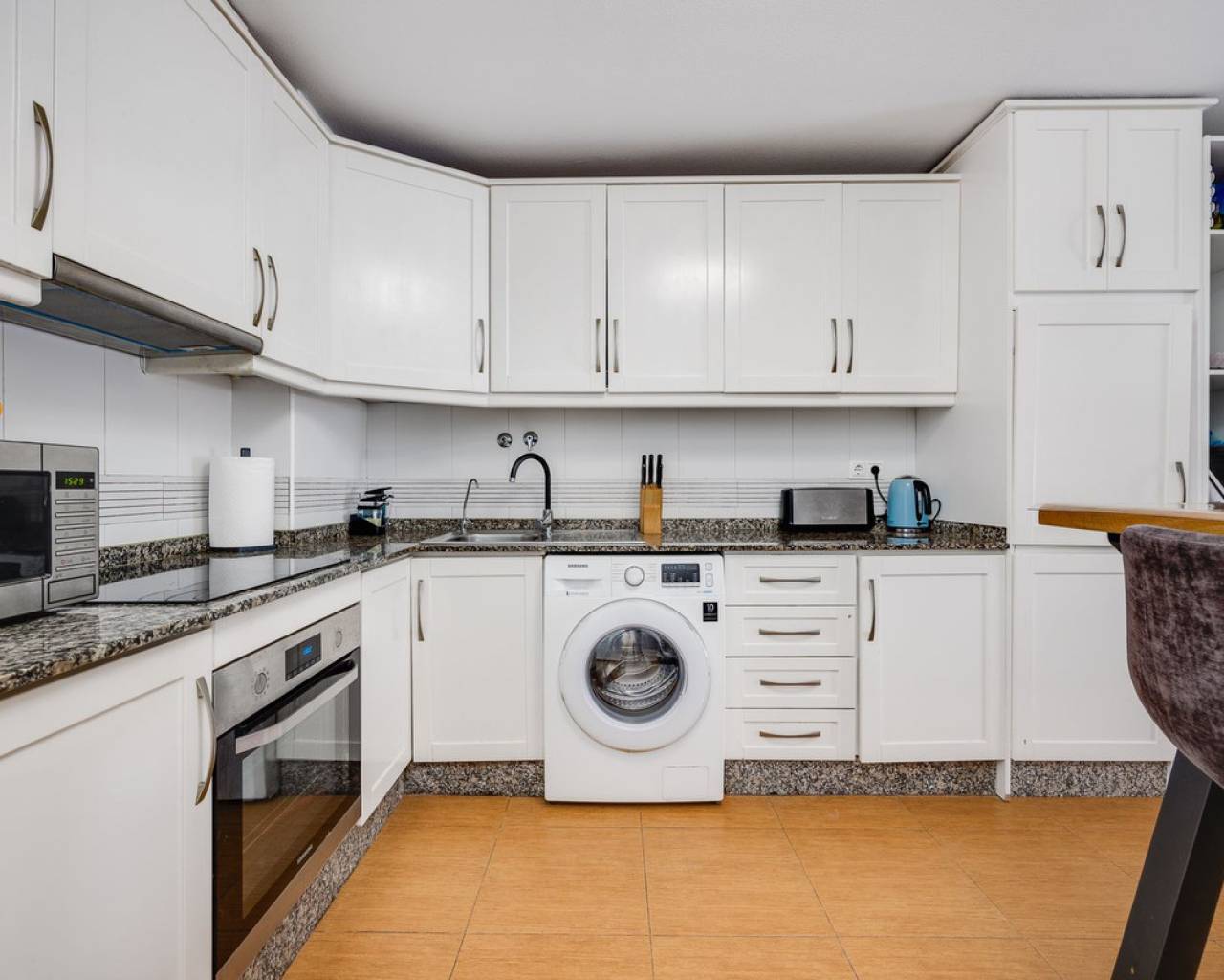 A stunning apartment in Torrevieja with three bedrooms and two bathrooms, located just 100 meters from the beach. Spacious and bright, with an area of 104 m², it is fully furnished and perfectly suited both for holidays and for permanent living. The apartment is on the third floor of a modern building with an elevator. A brand new kitchen and renovated bathrooms provide maximum comfort. This is an excellent option for those who value convenience, quality, and proximity to the sea!