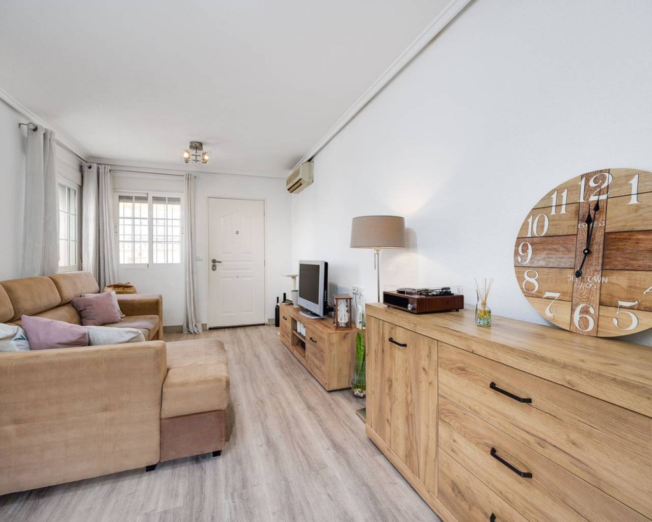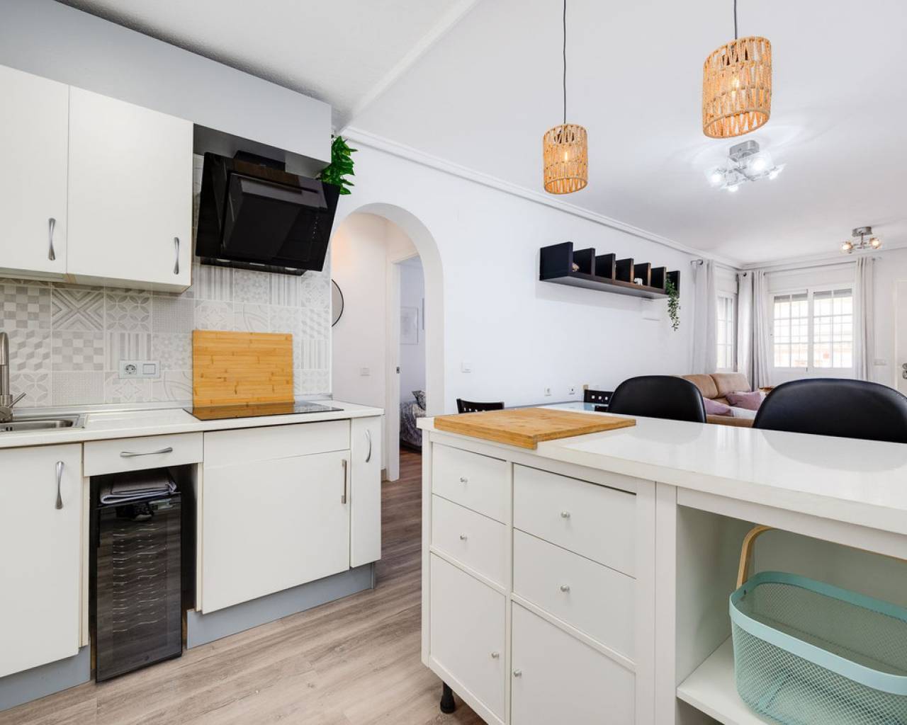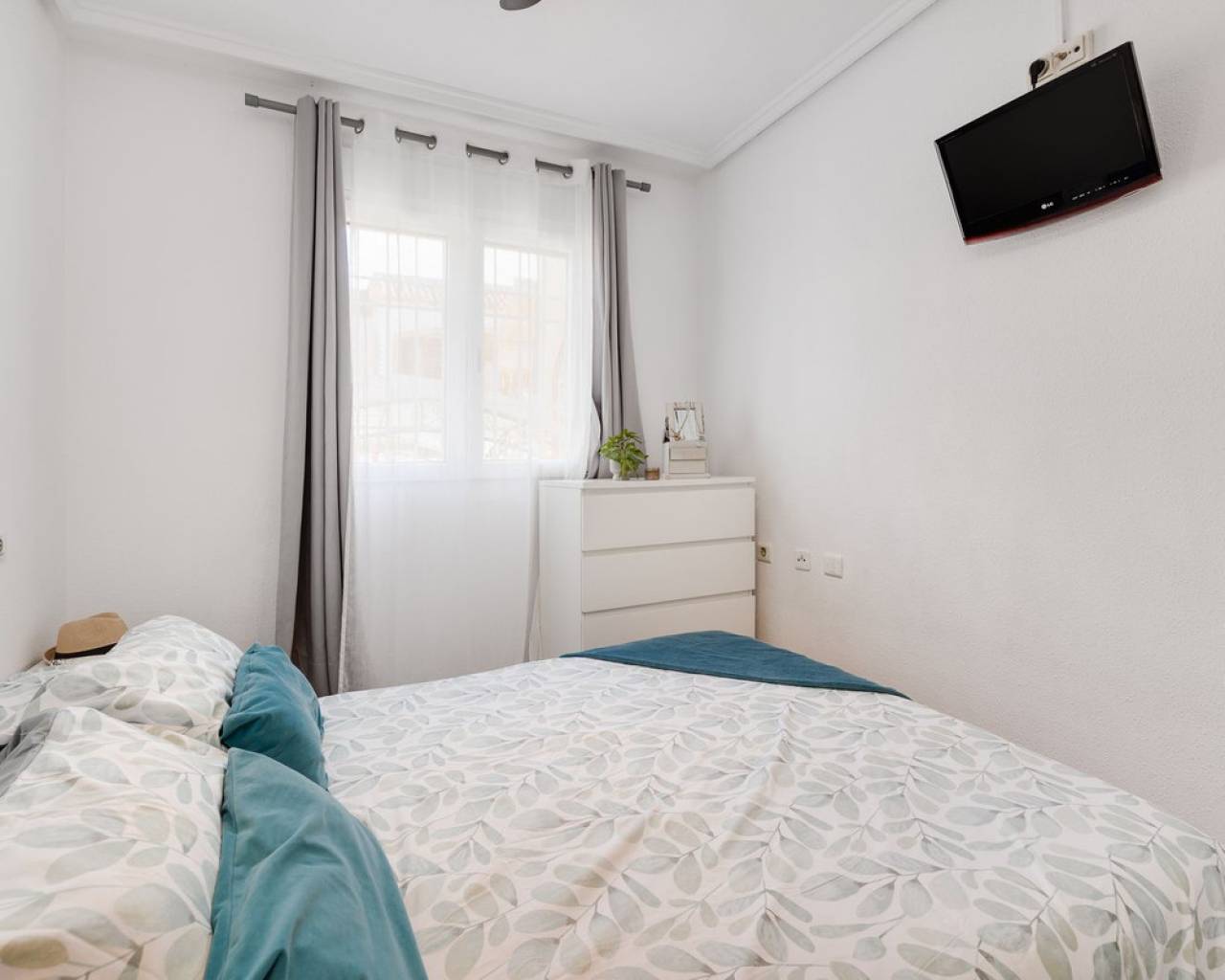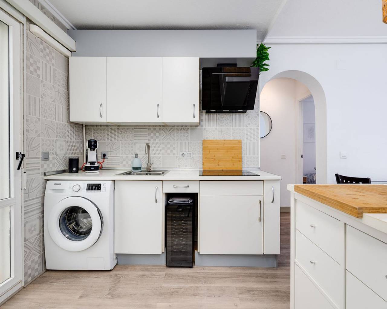 A stylish ground-floor apartment of approximately 65 m², recently renovated and ready to move in. The property features a modern open-plan American kitchen, a spacious living area, and two comfortable double bedrooms. There is also an additional space currently used as a laundry, offering extra convenience and storage space. The apartment includes a full bathroom. Before entering the apartment, you are welcomed by a private patio, perfect for creating a cozy barbecue area or an outdoor lounge to enjoy with family and friends. The community offers excellent amenities, including a communal swimming pool, a mini football pitch, and a tennis court. The location is truly outstanding—just a short walk to the Habaneras shopping center, as well as schools, bars, and restaurants. Everything you need is close at hand, making this apartment an ideal choice for comfortable and convenient living.