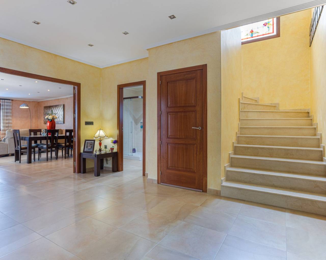 Exclusive detached villa in Los Montesinos – Space, comfort and Mediterranean style We present this beautiful home, situated in a quiet residential area of Los Montesinos, an ideal location for those seeking quality of life, privacy, and proximity to all essential amenities. With a built area of 417 square meters on a generous 532 square meter plot, this property is designed to offer space, functionality, and comfort in every corner. Upon entering, we are greeted by a well-maintained Mediterranean garden that surrounds the entire house, with spacious outdoor areas inviting you to relax and enjoy the year-round sunny climate. The private pool, perfectly integrated into the surroundings, is the ideal place to cool off in the summer or relax on the shaded terrace and gardens. The interior of the house stands out for its practical and bright layout. On the ground floor, there's a spacious living/dining room with a fireplace, perfect for family gatherings or cozy evenings. From here, there's direct access to the covered veranda and terrace, creating a natural connection between indoors and outdoors. The kitchen is separate, spacious, and fully equipped with modern appliances, designed for everyday use or for those who enjoy cooking at home. The house has four bedrooms, all bright and airy, ideal for families or those looking for guest rooms, offices, or multifunctional spaces. The three bathrooms are designed with high-quality finishes, combining style and functionality. The large basement offers a versatile space that could be used as a games room, private gym, wine cellar, or even a separate living area. The property also includes a private, enclosed garage with space for one car and additional storage. The house is fully furnished, with air conditioning in several rooms, a security door, and an intercom. It's move-in ready without renovation. Its southwest orientation guarantees natural light most of the day, creating a warm and pleasant atmosphere in every room. Located just a 15-minute drive from the beaches of the Costa Blanca, 40 minutes from Alicante Airport and just minutes from supermarkets, restaurants, leisure centres and golf courses, this property has everything it takes to become the perfect home or an excellent investment for tourist or holiday rentals. If you are looking for an exclusive home full of character and ready to enjoy from the first moment, then this villa in Los Montesinos is undoubtedly an opportunity not to be missed.