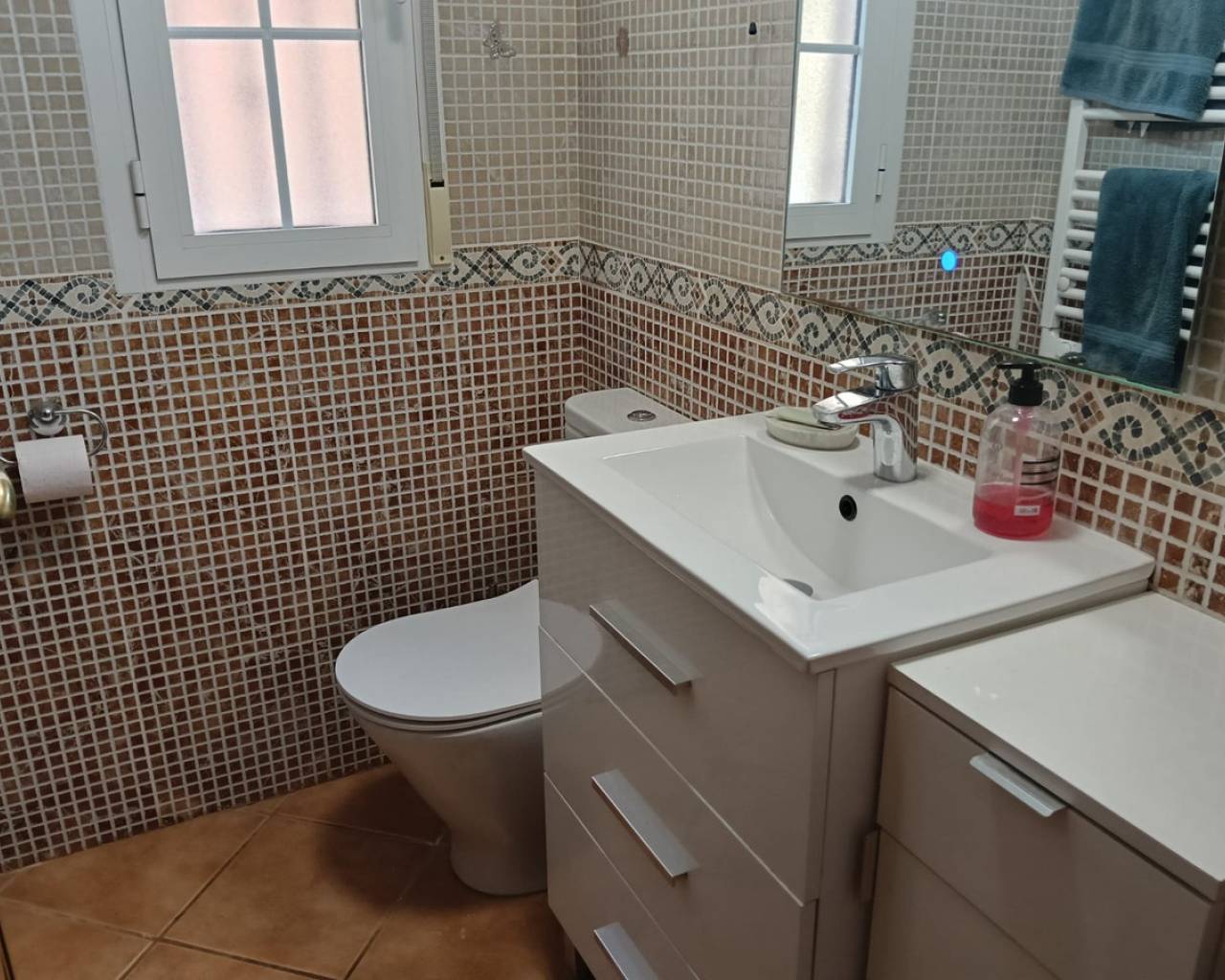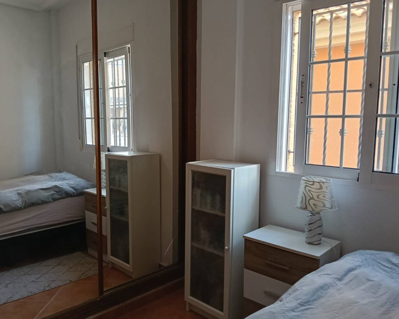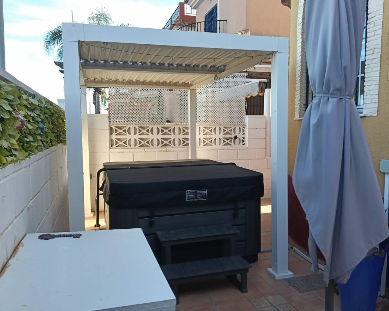 Charming detached villa in Los Montesinos – ready to move into We present this beautiful detached villa, situated in a quiet residential area of Los Montesinos, one of the most pleasant areas on the Costa Blanca. Ideal for both permanent residence and a seaside holiday, this property combines comfort, privacy, and a relaxing environment with all amenities within easy reach. The house has a built area of 80 m² on a private plot of 130 m², is perfectly used and well-maintained. Its Mediterranean design and excellent condition mean you can move in immediately without any renovation work. The house features three bright bedrooms with built-in wardrobes and two full bathrooms, fitted with high-quality materials. The separate kitchen (recently renovated) is fully equipped and includes appliances, ideal for culinary enthusiasts. The living/dining room is spacious and inviting, with direct access to the terrace and balcony, where you can enjoy the sunny climate typical of this region. Upstairs, a private solarium offers the perfect spot for sunbathing, reading, or simply relaxing with unobstructed panoramic views of the countryside. Outside you will find a barbecue area, ideal for gatherings with family or friends, and private parking is available on site. The villa is part of a beautiful residential complex with a communal swimming pool, where you can enjoy a quiet and family-friendly atmosphere. Extras include: Fully ducted air conditioning with 2 machines Furnished and equipped Jacuzzi Laundry room Secure door Mosquito nets Barbecue Terrace and balcony Solarium Private parking The location is unparalleled: Only 15 minutes from the beaches of Guardamar and Torrevieja 40 minutes from Alicante airport 5 minutes from shops, restaurants and recreational facilities 10 minutes from prestigious golf courses such as La Finca and Vistabella In short, this villa offers the perfect balance between comfort, privacy and proximity to everything you need to enjoy the Mediterranean lifestyle.