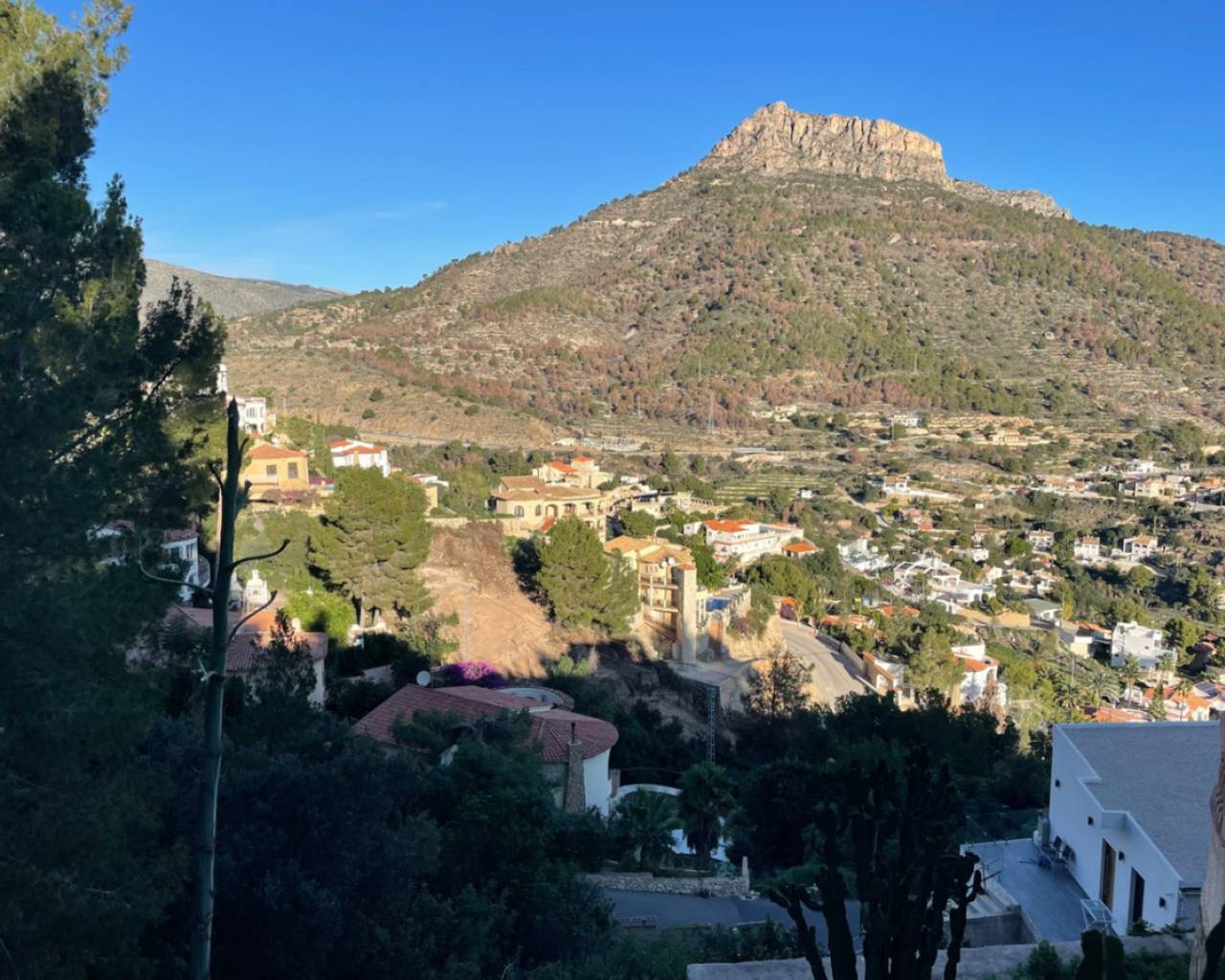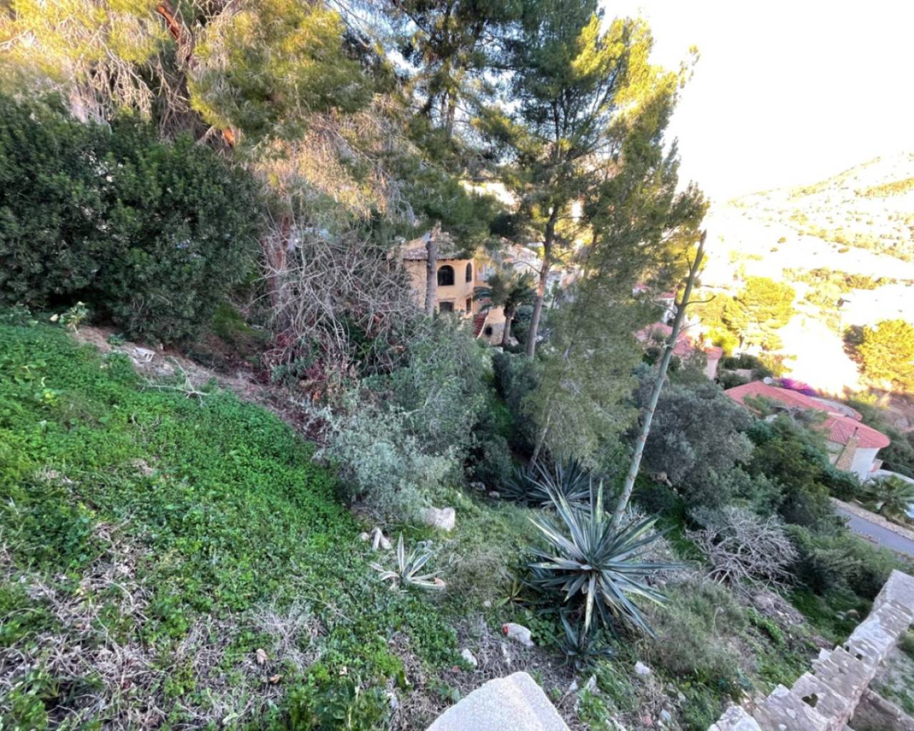 Building plot for sale in Maryvilla, Calpe This building plot with open views and east orientation is located in the Maryvilla urbanisation in Calpe. The plot has an area of 1,110 m² and offers space for the construction of a detached house. Description The plot is very sloping, which offers possibilities for a multi-level house. Water and electricity connections are already in place, which can speed up the permit process and construction process. Calpe is a town with a wide range of shops, restaurants and amenities, and is active all year round. Two sandy beaches and a promenade are a short distance away. Special features Surface area: 1,110 m²Sloping plot, suitable for multi-storey constructionWater and electricity connections availableLocated in an established residential areaUnobstructed viewWhy view this plot Freedom to choose your own builderRelatively low priceGood accessibility and amenities nearbyPossibility to build a spacious villaAn affordable plot with potential for sale in Calpe. Interested? Contact us for a viewing or additional information.