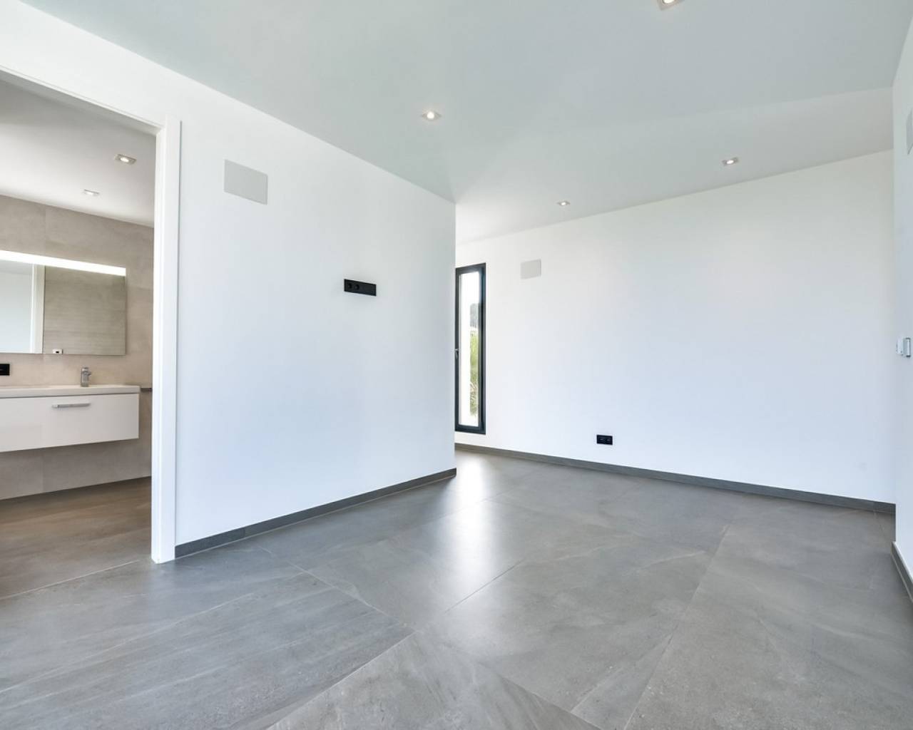 Modern luxury villa with sea views for sale in Javea This modern villa offers a comfortable living environment in an excellent location in Javea, with unobstructed views of the green hills and the Mediterranean Sea. On clear days, the panorama even extends to the island of Ibiza. The design combines clean lines and modern architecture with subtle classic accents and high-quality materials. Description The property has a double garage with automatic door and a spacious basement. On the ground floor, you will find a spacious living and dining room, a fully equipped kitchen with utility room and a guest toilet. Through the large sliding doors, you reach the covered terrace with a BBQ area and the adjoining sun terrace with infinity pool. Upstairs there are three spacious bedrooms and two bathrooms. The master bedroom has an en-suite bathroom and direct access to the large roof terrace. Special features Plot fully enclosed with walls and fencingElectric entrance gate and separate pedestrian entranceLots of natural lightCentral air conditioning throughout the houseHeating via air heat pump with solar energy supportTerraced garden with Mediterranean plants and central irrigation systemDouble garage and spacious basementWhy view this villa Views over the Mediterranean Sea to IbizaNo construction waiting timeEnergy efficient (label A)Modern, comfortable, luxuriousInfinity pool with spacious sun terraceLarge bedrooms with access to the roof terraceFully equipped kitchen with built-in appliances and high-quality furnitureThe villa offers a combination of modern comfort in a good location. Ideal for those looking for a luxury property for sale in Javea with sea views. Would you like to view this villa? Make an appointment with one of our staff members.