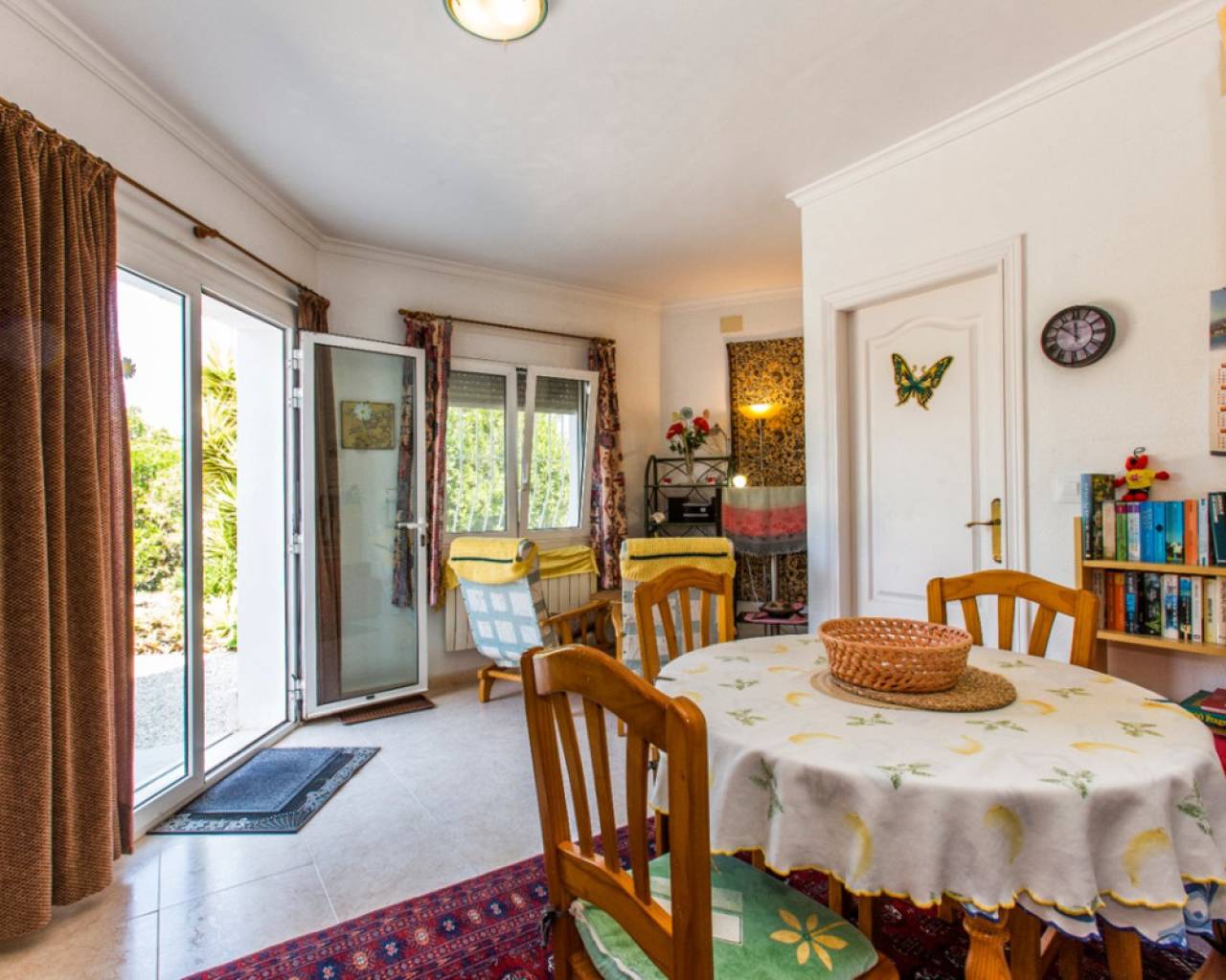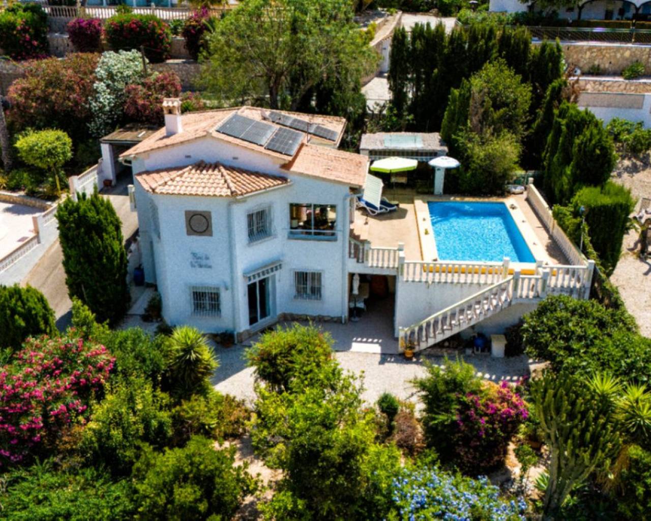 Villa with guest apartment for sale in La Cometa III, Calpe This detached villa with guest house is located in the quiet urbanisation of La Cometa III in Calpe, on a south-west facing plot. The property is spread over two floors and is less than 5 minutes by car from the centre and the beach. The villa, with panoramic views of the Bernia, was built by the current owner and is in its original condition. Description The main house on the upper floor consists of a living room that connects to a bright conservatory with a view of the pool and open kitchen. There are also two bedrooms, one of which has an en-suite bathroom. The second bathroom is separately accessible. The ground floor is furnished as a self-contained apartment, with a living room, kitchen, bedroom, bathroom and an extra room that is currently used as a practice room. This room has its own entrance and toilet and a door to the laundry/storage room. The house has a photovoltaic system (2024), heating with electric radiators, a fireplace, heat pump for hot water, air conditioning, double glazing, mosquito screens, insulated walls and a water filter system. Outside there is a covered terrace and a sun terrace surrounding the automatic saltwater swimming pool. The garden is lush with fruit trees, Mediterranean plants and a spacious herb garden. The driveway leads to a carport with space for two cars. From here it is possible to reach the main house without stairs. Special features Photovoltaic system (2024)Air conditioningLarge herb gardenWater filter systemFully fencedAutomatic saltwater swimming poolGuest apartment with own facilitiesWhy view this villa Suitable for double occupancy or guest accommodationQuiet location with good accessibilityVilla with various possibilitiesOne level entrance from carportThe villa will be ready for occupancy at the end of 2026 or beginning of 2027. The transfer of ownership at the notary can take place well before that time. This could be interesting for an investor! This comfortable villa for sale offers a solid foundation for those looking for space, functionality and potential in a quiet location in Calpe. Book a viewing today and discover the possibilities of this property.