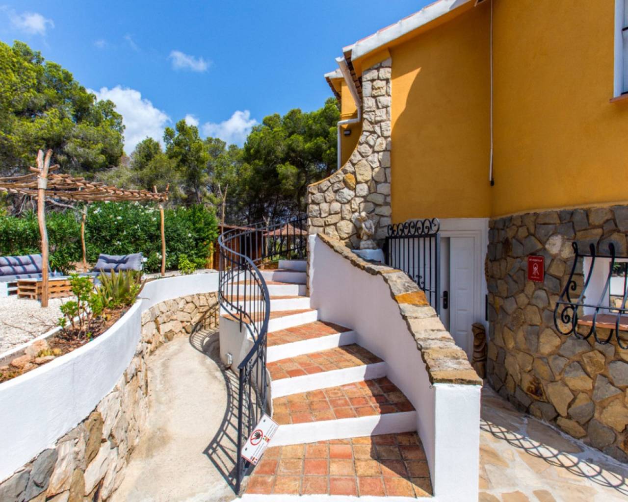 Detached villa with two separate apartments, that can be joined, for sale in Benissa, on a spacious plot, within walking distance of the sea In a quiet residential area, directly adjacent to a private forest with a lot of piece and quietness and with an open south-west facing position, this detached house is located just 700 meters from the Mediterranean Sea and bays. Ideally situated between Calpe and Moraira. The property was originally built in 1977, but was thoroughly renovated in 2022 and equipped with modern amenities. Description This property is spread over two floors, which are connected by an external staircases. The upper floor has a spacious living room with a fireplace, a dining room that opens onto a pleasant terrace area with seaviews, a fully equipped kitchen, two double bedrooms and a bathroom. On the ground floor, there is a living room with a dining area, a spacious fully equipped kitchen, two double bedrooms (one with a fireplace), a bathroom, a separate toilet and a laundry room with exit to the garden. Outside, the plot offers an 8x4 meter automatic salt water swimming pool with terrace, a jacuzzi, outdoor shower hot/cold, a summer kitchen with a 37m2 big covered terrace in front of the pool and several cosy seating and eating areas. There is a 20m2 big separate air conditioned room ideal for an office or small gym. The garden is green and low-maintenance, with fruit trees and other plants with beautiful night illumination. The property has a carport, parking space for several cars or mobile home and a spacious storage room. Special features Only 700 metres from the seaSouth-west facing with open views and seaviewsRenovated in 2022Air conditioning in all roomsDouble glazing, insect screens and roller shuttersFiber opticTourist licence (the ground floor is currently used for holiday rentals)Large flat plot with garden, fruit trees and seating areasWhy view this villa The location: quiet and in green surroundingsReady to move inSuitable for permanent residence and holiday rentalsIdeal for outdoor livingThe villa is an ideal combination of location, comfort and layout, ready for immediate use. Book a viewing with one of our staff today.