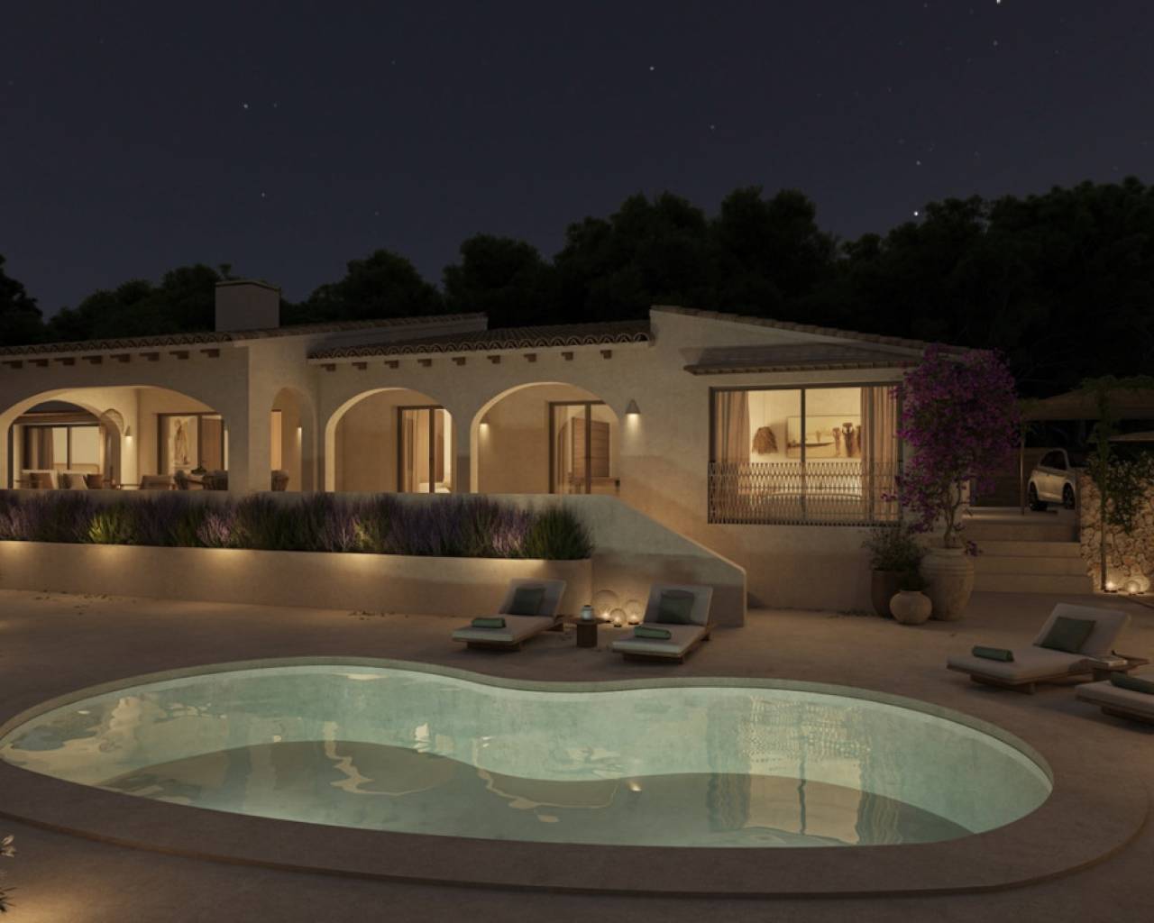 PROJECTFully renovated villa for sale in Benissa Costa, just 1 km from La Fustera beach. Mediterranean style, sea views, spacious terraces and swimming pool. This renovated Mediterranean-style villa is located in the La Fustera district, between Moraira and Calpe. Just one kilometre from the beach, supermarket and various restaurants. The centre of Calpe and its sandy beaches are within a 10-minute drive. Description The single-storey house is situated on a flat plot with a landscaped garden and has sea views. A covered pergola serves as a parking space and leads to the entrance. The open-plan living room, dining area and kitchen with cooking island create a spacious and comfortable feeling. Large windows provide plenty of light and connect the interior with the covered veranda and swimming pool. Wooden beams and lime finishes give the whole a natural look. The villa has three bedrooms with en-suite bathrooms. The master suite has a private terrace. There is also a guest toilet at the entrance. There are several terraces (both covered and open), a barbecue area and a swimming pool. Details Completely renovated villa with sea views1 km from La Fustera beach, supermarket and restaurants3 bedrooms en suiteOpen-plan living area with kitchen and direct access to terrace and swimming poolCovered parking and BBQSwimming pool with sun terraceTotal built area: 627.58 m² (144.58 m² interior + 483 m² exterior)Why view this villa Ground floorLocationFinishingsReady sooner than a new-build villaThis will be a modern villa in a central location in Benissa. A stylish home where comfort, light and Mediterranean atmosphere come together. Find out more about this special RENOVATION PROJECT. Call our office today or drop by for a chat.