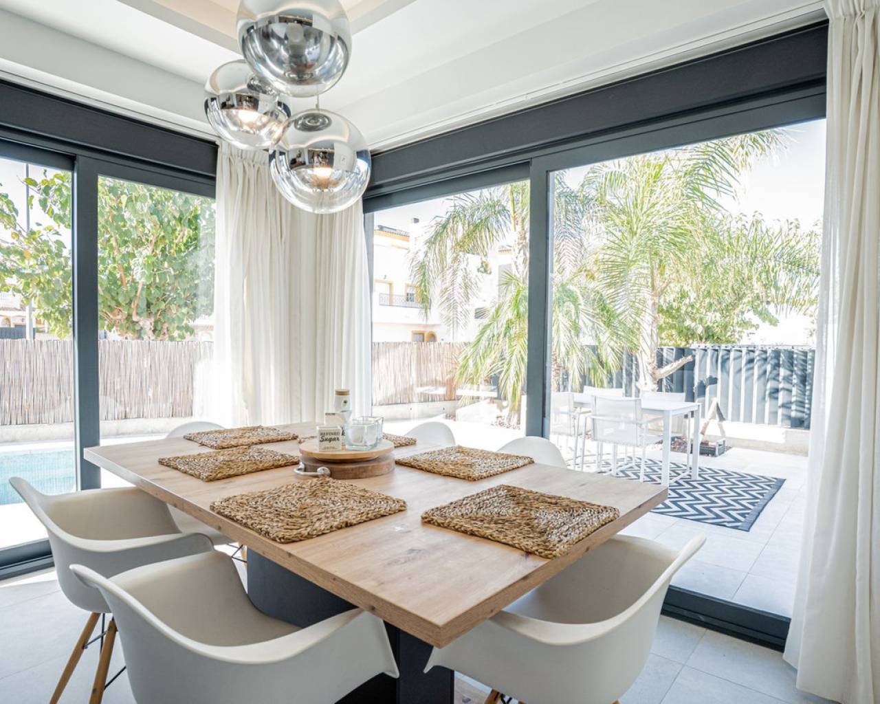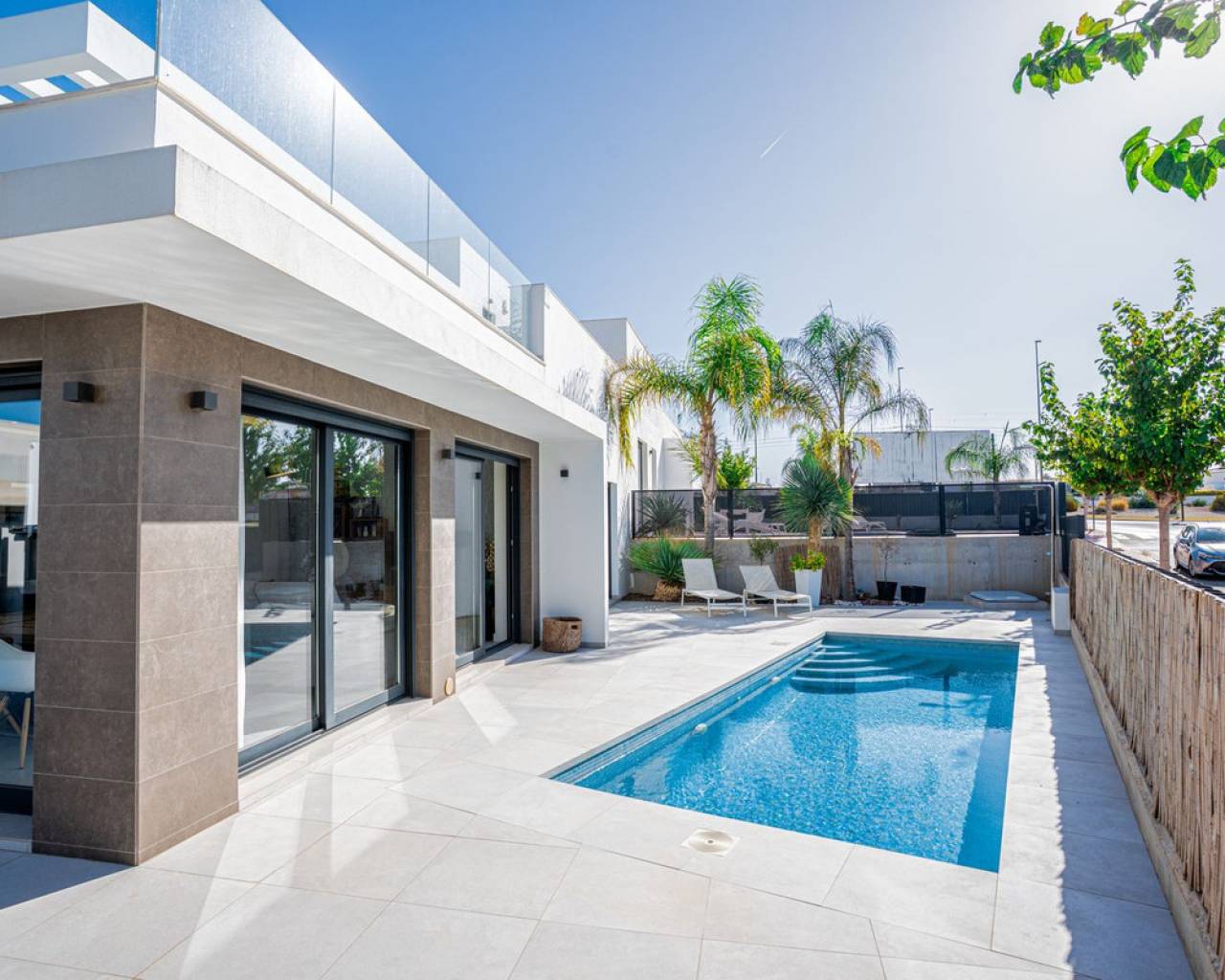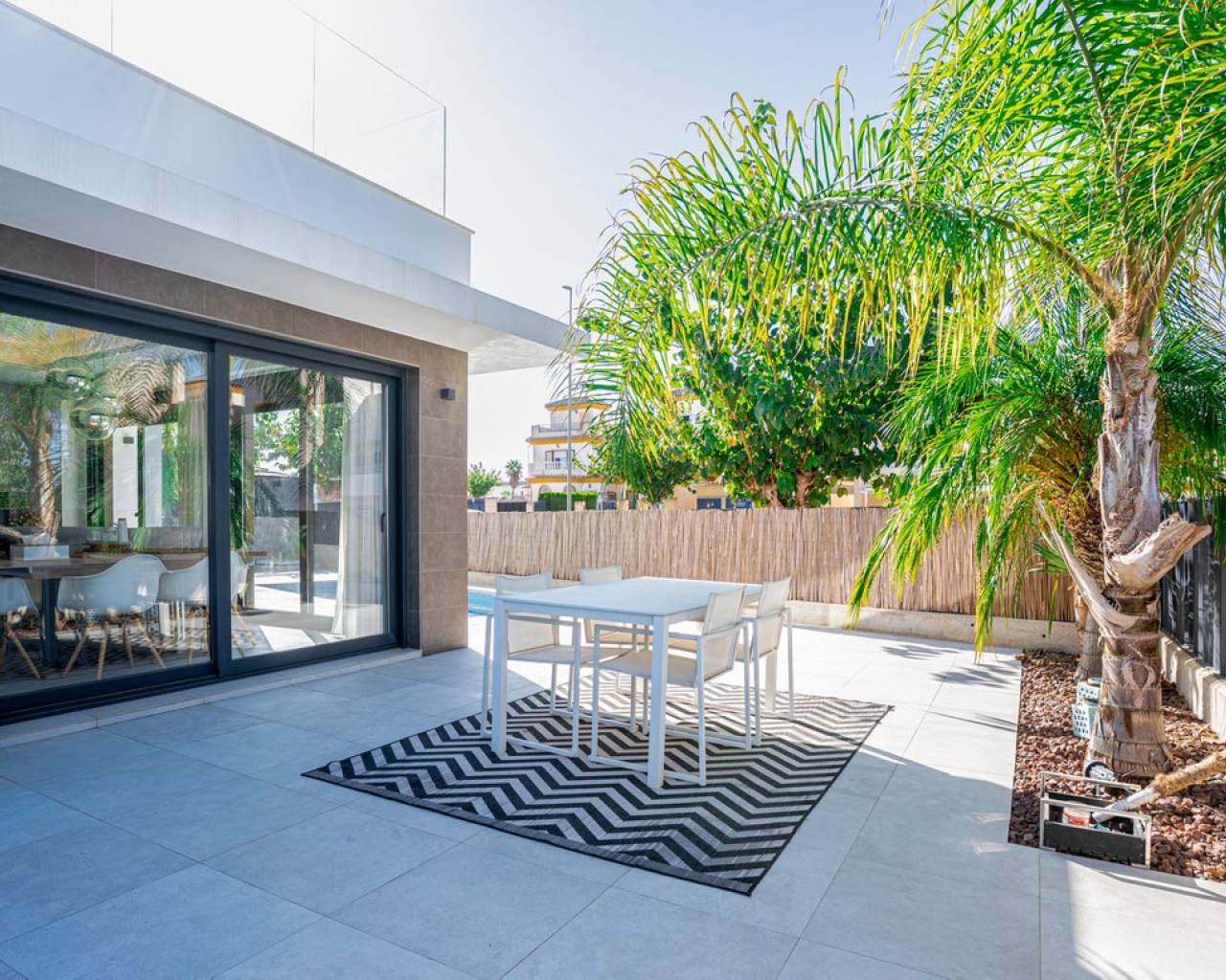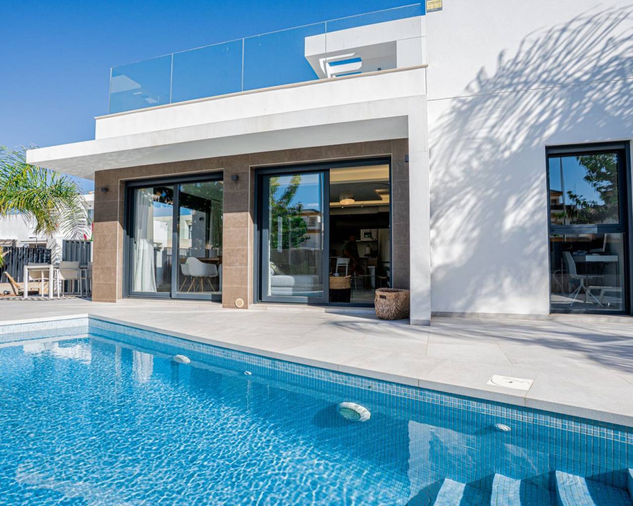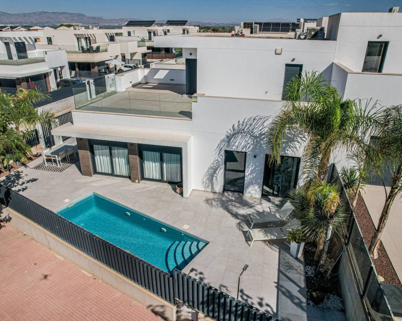 The Perfect Mediterranean Escape – Sunny Villa Living in San Fulgencio Imagine waking up every morning to the warmth of the Costa Blanca sun, the sound of palm leaves in the breeze, and complete freedom – all in your own private oasis. Could the perfect home be one move away? Modern Villa for Demanding Families & Professionals: Discover a sun-drenched, 120 m² villa (on a spacious 306 m² plot) designed for those who value privacy, cutting-edge comfort, and extraordinary quality of life. This home features three inviting bedrooms and two elegant bathrooms, providing space for both relaxation and daily convenience. The stunning 62 m² terrace and crystal-clear pool create an ideal summer living room, while every window is fitted with electric shutters for unrivaled comfort and security. Ultimate Comfort: -Is privacy and ample sunny space what you need? Enjoy a south-facing home with sunlight from dawn to dusk, perfect for family gatherings or peaceful evenings. -Is easy living important? The house is fully equipped, with premium finishes and ready for move-in – no waiting, no compromises. -Do you value security and convenience? Benefit from private gated parking and a friendly international neighborhood close to all daily amenities. Space That Inspires: Every detail brings a touch of Mediterranean flair: open-plan living, lots of glass, and smooth flow to the outdoors. Relax by your pool, dine al fresco, or recharge in your private retreat. Highlights at a Glance: -306 m² plot, 120 m² house -3 sun-filled bedrooms, 2 modern bathrooms -62 m² grand terrace with private pool -Fully equipped, designer kitchen -Electric shutters throughout -South-facing = maximum sun, year-round -Private gated parking, move-in ready Is this the kind of lifestyle change your family deserves? Reach out for a private tour and let this unique home surprise you.
