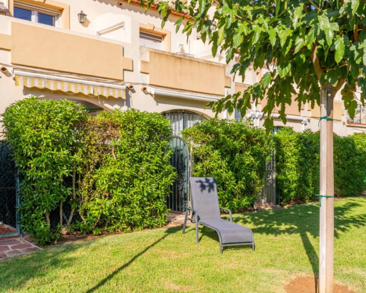 Casa Saint Tropez – Recently renovated Townhouse in Javea's most desirable complex This beautifully renovated townhouse is located in the prestigious La Isla complex in Javea, just 300 meters from the beach. The community boasts Javea's largest swimming pool and a stunning 7,000 m² private garden. The meticulously maintained lawn and lush palm garden ensure you can enjoy the sun all year round, even in winter. Casa Saint Tropez is only a short walk from the Arenal Beach, with numerous shops, restaurants, and even a takeaway just around the corner. Property Layout: Ground Floor: Modern kitchen, living room, dining area, a small bathroom with shower and toilet, spacious terrace, and direct access to the garden. First Floor: Bedroom 1 with a 160 cm bed, Bedroom 2 with bunk beds and a desk, and a bathroom with shower and toilet. Bedroom 1 features a balcony overlooking the garden. Second Floor: Bedroom 3 with a 180 cm bed, a bathroom with bath/shower and toilet, and a terrace with views of the garden. The fully equipped kitchen includes a fridge-freezer, oven, microwave, Nespresso machine, toaster, kettle, dishwasher, and more. Parking is available in front of the house, and a large covered parking area is just 50 meters away. Details: Living area: 129 m² 3 bedrooms and 3 bathrooms Air conditioning in all rooms except Bedroom 2 (bunk beds) Ceiling fans in all bedrooms This property offers comfort, convenience, and an unbeatable location—perfect for a relaxed holiday home or a permanent residence in Javea!