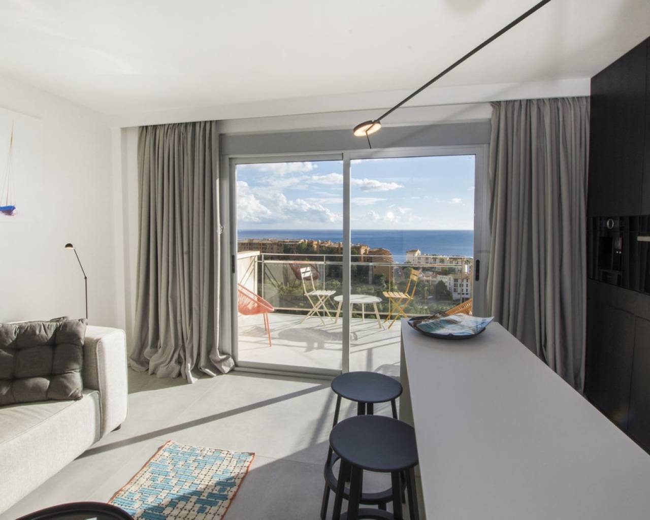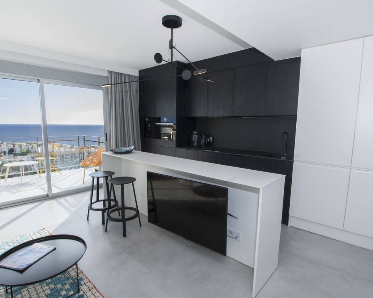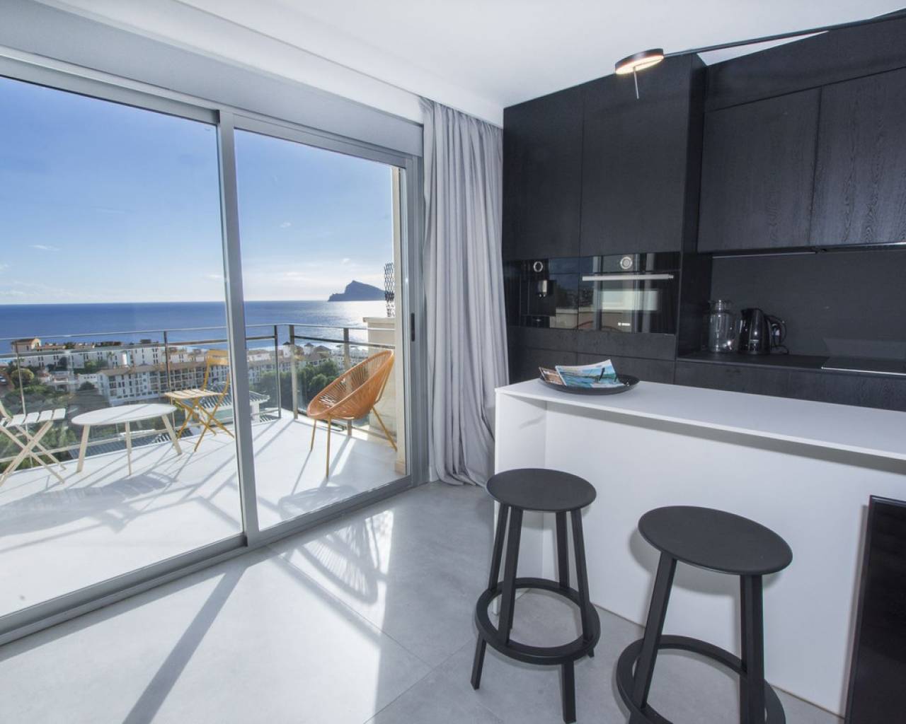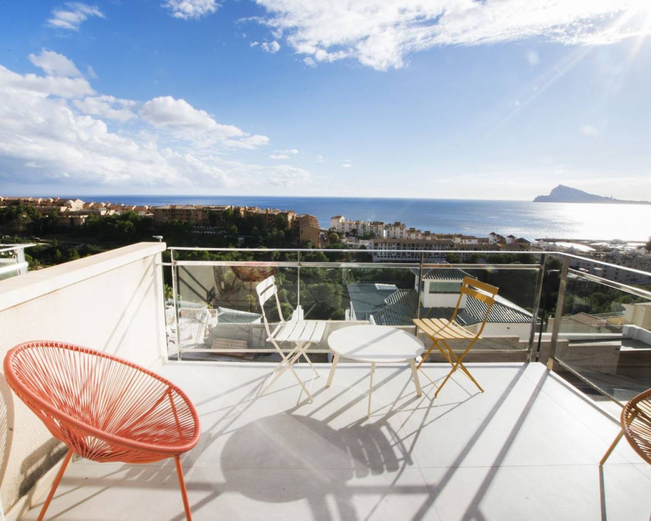 Modern duplex penthouse with panoramic view of the sea and the yacht harbor, located in a southwest-oriented building in a gated estate, in Altea, Mascarat district. The apartment has recently been completely renovated and is in excellent condition. The living area is distributed over two levels and includes: a spacious living room with dining area, an open, fully equipped kitchen with an island, 2 bedrooms (both with ensuite, one with access to a terrace), 2 bathrooms, a guest toilet and 3 sunny terraces. Features include: ducted air-conditioning (hot and cold), large-format tiles, aluminum sliding windows with room opening, high-quality exterior woodwork, fully equipped kitchen with appliances, fully equipped bathrooms, built-in closets, double glazing, broadband, LED lighting, finishing with top-quality materials. The price includes a large parking space in the garage hall. In the estate we can find plenty of green areas and a communal swimming pool both for children and adults. Within walking distance you can find many services and conveniences such as sandy beaches, Campomanes luxury yacht harbor, luxury restaurants and lounge bars, and in close distance: scenic parks, golf courses, a wide range of sports facilities with tennis courts, stores, international schools, banks, medical centers, walking trails and much more.