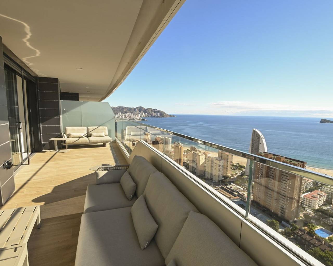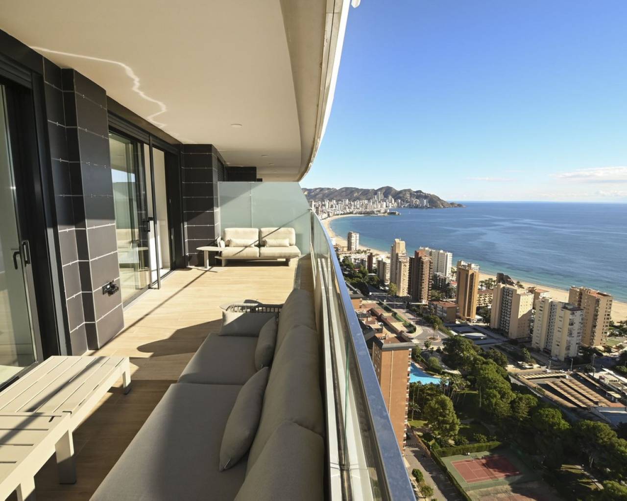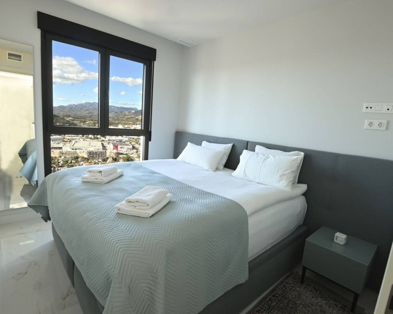 Luxury apartment with sea views on the 28th floor in Benidorm. A unique offer for lovers of modern design and comfort! Come and see this modern apartment of 102,21 m² located on the 28th floor of a prestigious glazed tower, recognized as the best residential development in Europe in the International Property Awards 2024. The space was created with comfort in mind, and the apartment itself impresses with its functional layout and luxurious solutions. The living space accommodates a spacious living room with a dining area connected to a modern open kitchen with an island, three elegant bedrooms for privacy and comfort, two en suite bathrooms decorated in a contemporary style, a 26.63 m² terrace with stunning views of the Mediterranean Sea and a practical utility room next to the kitchen. Also included in the price of the property is one 13.5 m² garage space and a 4.62 m² utility room. The apartment was completed at the end of 2023 and is distinguished by ducted air conditioning with heating and cooling, energy-efficient aerothermal installation, double glazing with thermal bridging and sunscreen, a kitchen equipped with high-end Balay appliances, electric blinds, video intercom and burglar-proof front door, built-in cabinets, porcelain floors and elegant woodwork. Prestigious complex - full relaxation and activity. The estate offers luxury amenities that will meet the expectations of the most demanding customers: A swimming pool for adults and children, a spa and two Jacuzzis, Children's playground and jogging track, Padel courts and a petanque court, Heated swimming pool and a modern gym with panoramic sea views on the 26th floor of the block. Exceptional location - the heart of Benidorm. The property is located just a 10-minute walk from the beautiful sandy Poniente Beach. Benidorm offers excellent weather conditions all year round, a wide range of attractions such as Sierra Cortina golf courses, amusement parks (Terra Mítica, Aqualandia, Mundomar), lively bars, casinos and shopping centers with international gastronomic offerings. It's a great option for families, those looking for a luxurious getaway and investors looking to invest capital in top-notch properties. Book your visit today and discover a unique apartment that combines modernity, luxury and unparalleled views of the Mediterranean Sea!