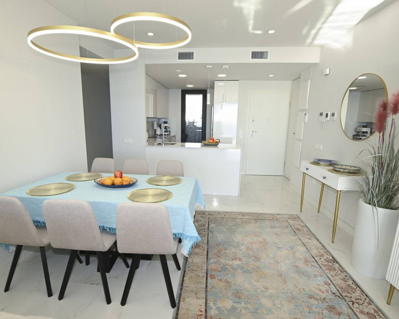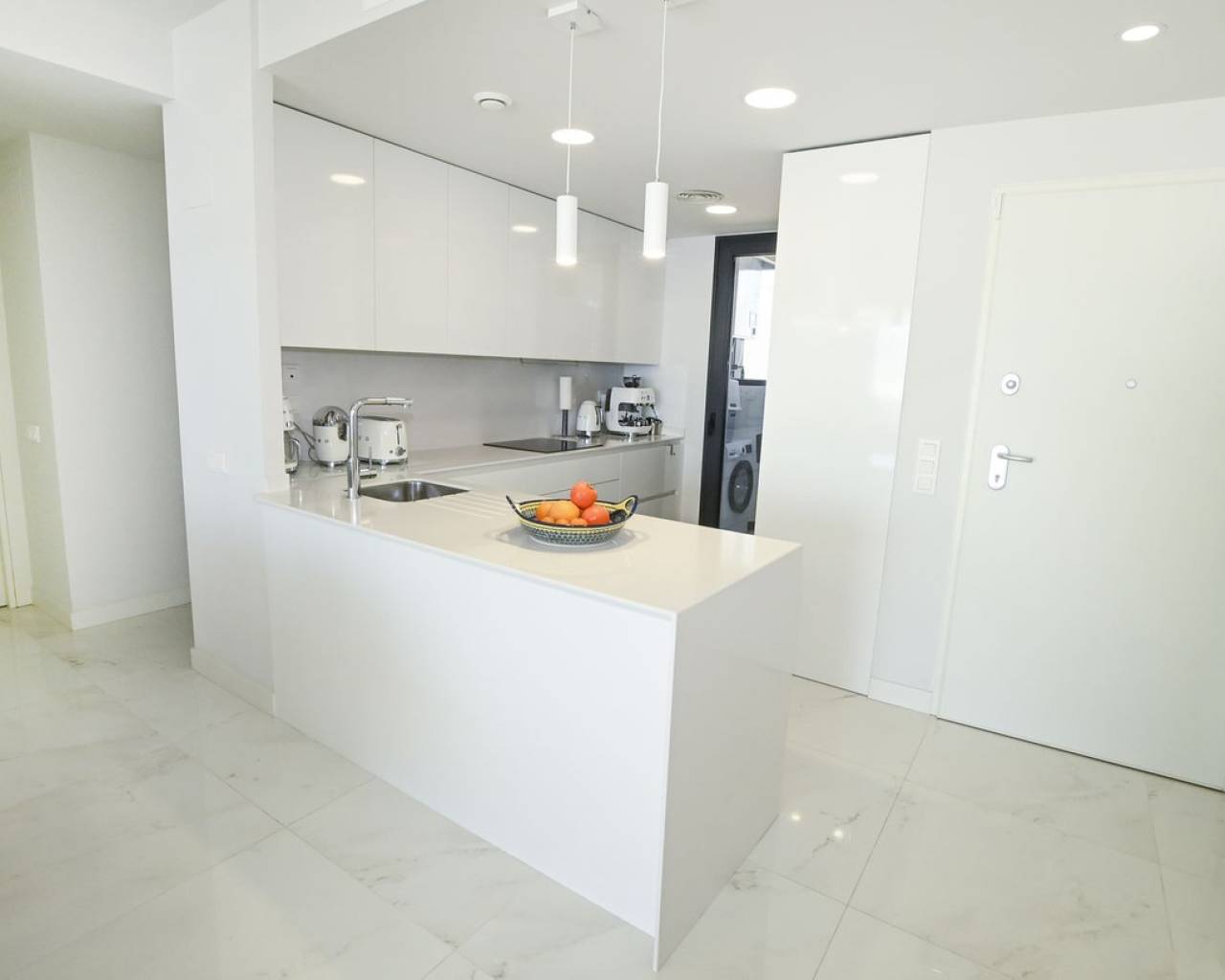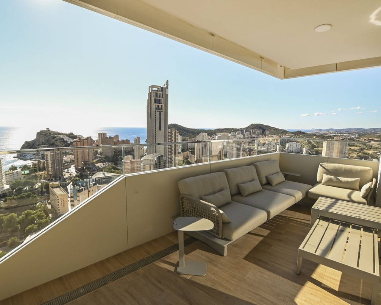 Luxury apartment with sea views on the 28th floor in Benidorm. A unique offer for lovers of modern design and comfort! Come and see this modern apartment of 102,21 m² located on the 28th floor of a prestigious glazed tower, recognized as the best residential development in Europe in the International Property Awards 2024. The space was created with comfort in mind, and the apartment itself impresses with its functional layout and luxurious solutions. The living space accommodates a spacious living room with a dining area connected to a modern open kitchen with an island, three elegant bedrooms for privacy and comfort, two en suite bathrooms decorated in a contemporary style, a 26.63 m² terrace with stunning views of the Mediterranean Sea and a practical utility room next to the kitchen. Also included in the price of the property is one 13.5 m² garage space and a 4.62 m² utility room. The apartment was completed at the end of 2023 and is distinguished by ducted air conditioning with heating and cooling, energy-efficient aerothermal installation, double glazing with thermal bridging and sunscreen, a kitchen equipped with high-end Balay appliances, electric blinds, video intercom and burglar-proof front door, built-in cabinets, porcelain floors and elegant woodwork. Prestigious complex - full relaxation and activity. The estate offers luxury amenities that will meet the expectations of the most demanding customers: A swimming pool for adults and children, a spa and two Jacuzzis, Children's playground and jogging track, Padel courts and a petanque court, Heated swimming pool and a modern gym with panoramic sea views on the 26th floor of the block. Exceptional location - the heart of Benidorm. The property is located just a 10-minute walk from the beautiful sandy Poniente Beach. Benidorm offers excellent weather conditions all year round, a wide range of attractions such as Sierra Cortina golf courses, amusement parks (Terra Mítica, Aqualandia, Mundomar), lively bars, casinos and shopping centers with international gastronomic offerings. It's a great option for families, those looking for a luxurious getaway and investors looking to invest capital in top-notch properties. Book your visit today and discover a unique apartment that combines modernity, luxury and unparalleled views of the Mediterranean Sea!