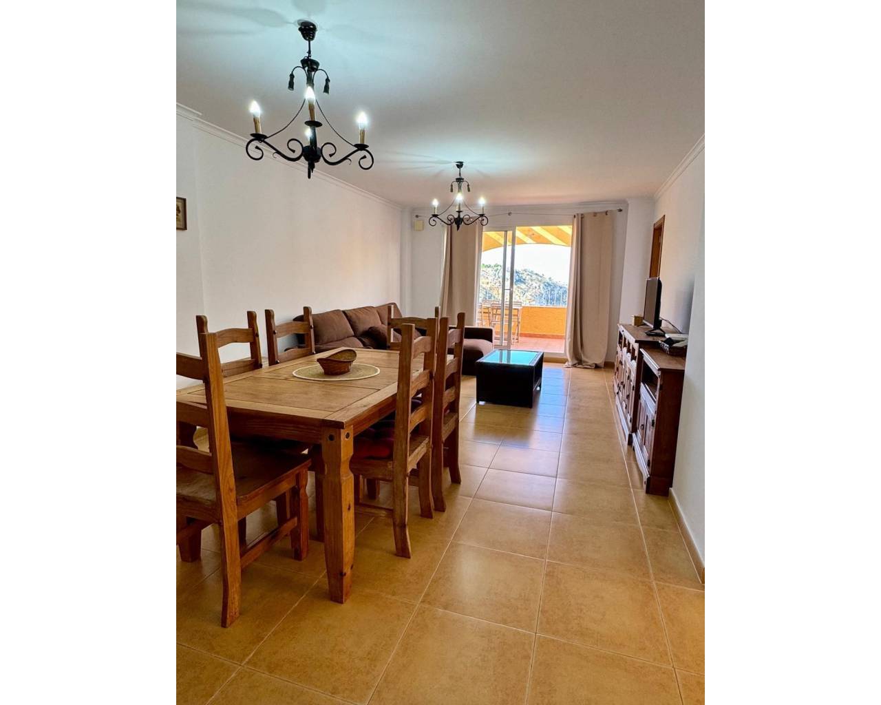 Located in the prestigious Cumbre del Sol complex, between Moraira and Jávea, this comfortable apartment is the perfect combination of tranquility, nature, and the most attractive places on the Costa Blanca. The property consists of three bedrooms, two full bathrooms, a spacious and cozy living room, and a separate, fully equipped kitchen. Next to the kitchen is a utility room with space for a washing machine and cleaning supplies – a very practical solution for everyday use. The living room and other parts of the apartment offer beautiful views of the mountains and the picturesque town of Calpe, which further emphasizes the unique character of this place. The complex offers several communal swimming pools with sun terraces, ideal for relaxing and enjoying the Mediterranean climate all year round. In Cumbre del Sol, you will also find a supermarket, pharmacy, restaurants, international school, sports facilities, and direct access to charming coves such as Cala Moraig. It is an excellent option both as a year-round home, a summer residence, and a safe investment – thanks to its attractive location in one of the most sought-after areas on the coast.