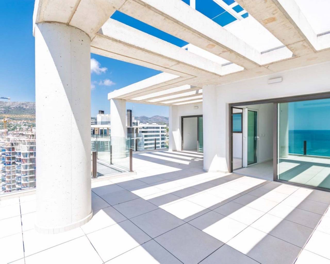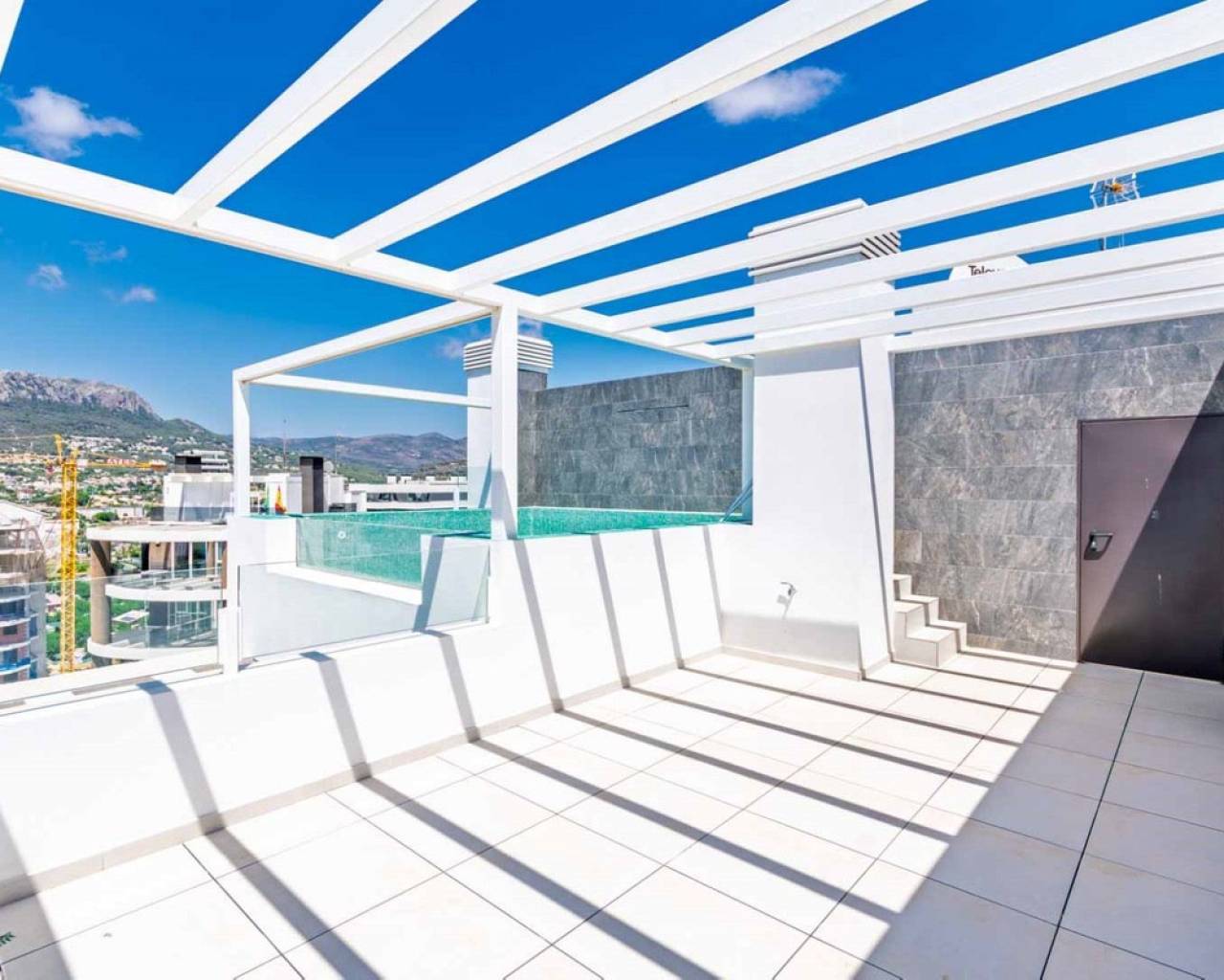 Spectacular, luxurious duplex penthouse with a private rooftop pool, located in the heart of Calpe – less than 200 meters from the beach! This unique apartment, located on the 15th floor of a prestigious south-facing building, offers some of the most impressive views on the Costa Blanca – the sea, the famous Peñón de Ifach, the city skyline, picturesque salt flats, and the Oltá mountain range. Built in 2024 and never inhabited, it impresses with its modern design, the highest quality finishes, and an atmosphere of luxury. The spacious living room with dining area flows seamlessly into the modern American-style kitchen, and large sliding windows open the space onto a sunny terrace. The apartment has three comfortable bedrooms – the master bedroom with a private bathroom and access to the main terrace, the second bedroom with its own intimate terrace, and the third bedroom – ideal for a guest room or study – complemented by an elegant family bathroom. The real gem of this property is the spectacular roof terrace with a private pool, where you can enjoy panoramic views, sunbathe in the sunshine, and spend unforgettable moments with your loved ones. The interior has been finished with the highest quality materials. The equipment includes: an efficient and energy-saving independent ducted air conditioning and heating system, high-class exterior woodwork, advanced acoustic and thermal insulation, large-format sliding windows in the living room and master bedroom, a complete kitchen with modern appliances, elegant bathrooms, built-in wardrobes, and fiber optic connection. An additional advantage is the possibility of personalizing the finish – from lamps and mirrors to the selection of furniture – which allows you to create a space fully tailored to the style of the future owner. The property has category A energy and emission certificates, which proves its high energy efficiency and care for the environment. The price includes a parking space in the garage and a large storage room. The estate features a large swimming pool and a carefully landscaped garden with relaxation areas. The excellent location means that everything is within easy reach – from golden beaches, marinas, and golf courses to exclusive boutiques, restaurants, bars, international schools, medical centers, and picturesque walking trails. This is not just a property – it is a lifestyle of the highest standard, ideal for those who appreciate modern luxury and a Mediterranean atmosphere. More details available on request.
