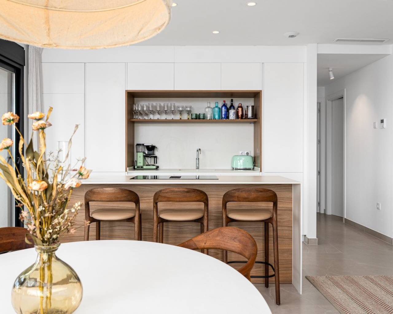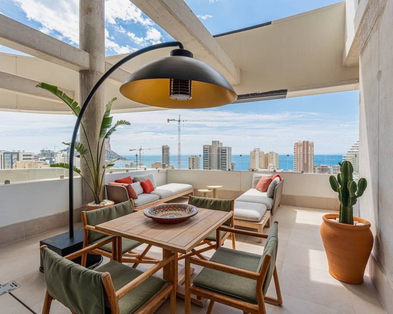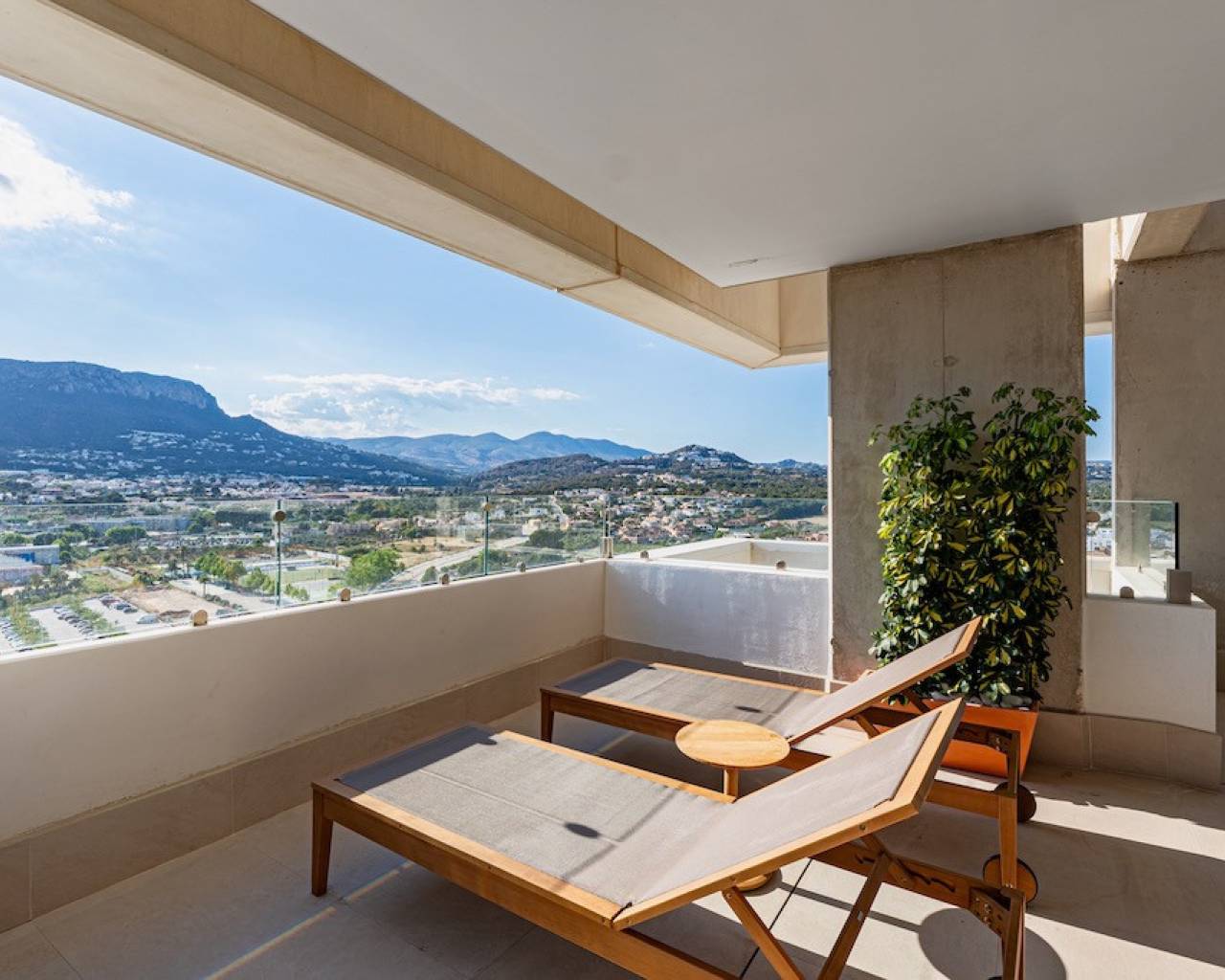 Luxury Apartment with Panoramic Seaviews Just Steps from the Beach in Calpe Discover this exceptional apartment built in 2024, located just a short stroll from the sandy shores of Calpe's Arenal Beach. Set within an exclusive, low-rise residential building with only 25 units, this 14th-floor home offers unmatched privacy—being the sole apartment on its level. Designed for comfort and space, the interior features a bright open-plan living area and kitchen, reconfigured from the original layout to maximize room and light. Large sliding doors open onto three expansive terraces, each over 30 m², offering sweeping views and sun exposure from morning until evening thanks to the east, south, and west-facing orientation. The property offers two generous bedrooms, both with en-suite bathrooms and direct access to the terraces. One of the terraces is equipped with an outdoor H/C shower and has a jacuzzi installation, creating a private retreat ideal for relaxation. Premium finishes include a contemporary kitchen fitted with Bosch appliances, underfloor heating in the bathrooms, and electric shutters throughout. The apartment is sold fully furnished and ready to move into, with a tourist rental license in place—making it an excellent opportunity for both private use and investment. Included in the price are a secure underground parking space and a storage room. A second parking space is available as an option. Residents enjoy access to a wide range of amenities including a 22-meter pool, a separate children's pool, a playground, a padel court, and a modern gym—offering a resort-style lifestyle just minutes from the town center and coastline. A rare opportunity to own a standout luxurious, modern apartment in one of Calpe's most desirable locations.
