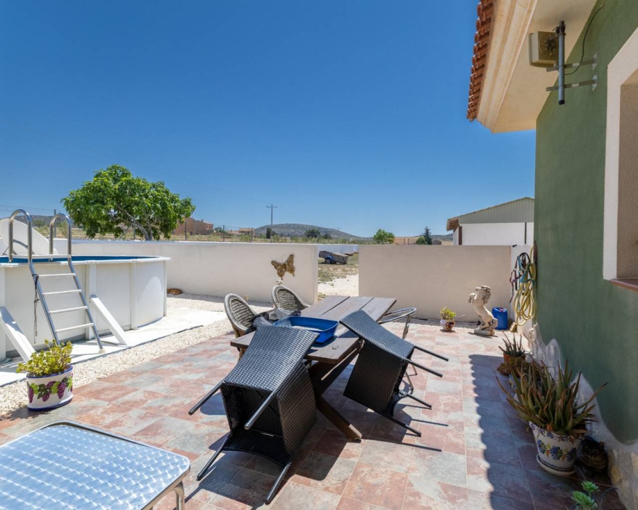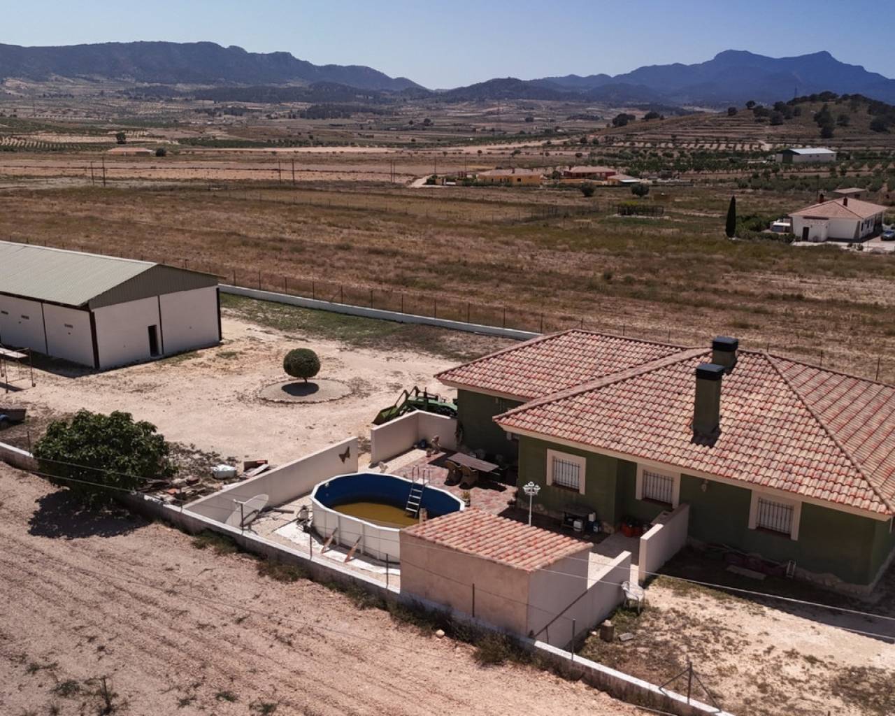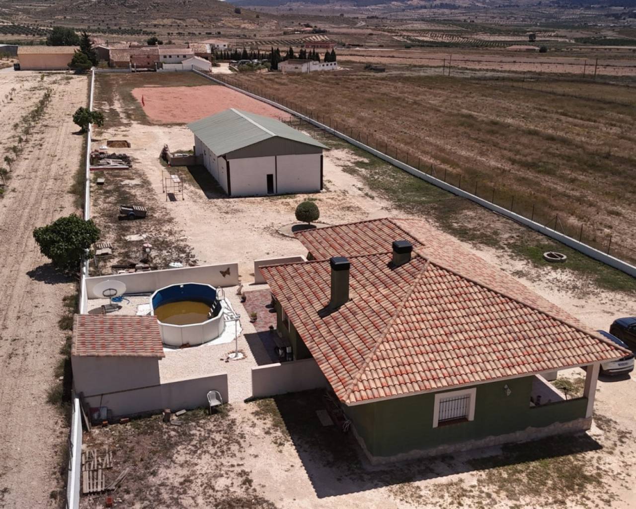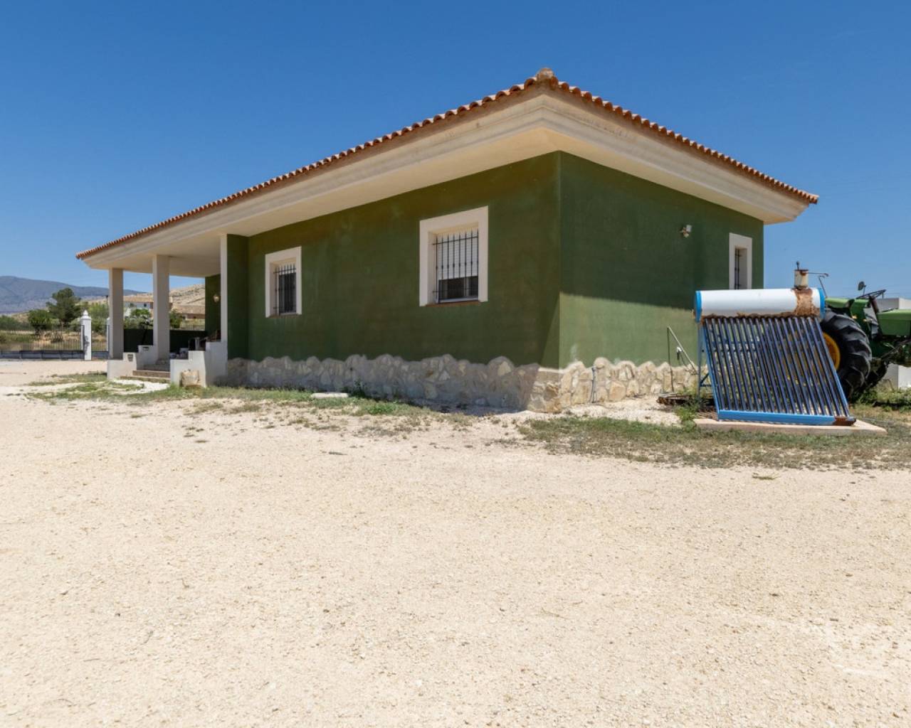 This charming, single-story villa with three bedrooms is situated on a fully fenced plot of no less than 7,944 m², surrounded by breathtaking mountain views. Located in the quiet village of Torre del Rico, just an 8-minute drive from the charming town of Pinoso and within walking distance of a local bar, this property combines the best of rural tranquility with easy access and daily amenities.