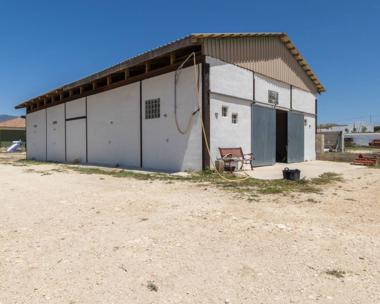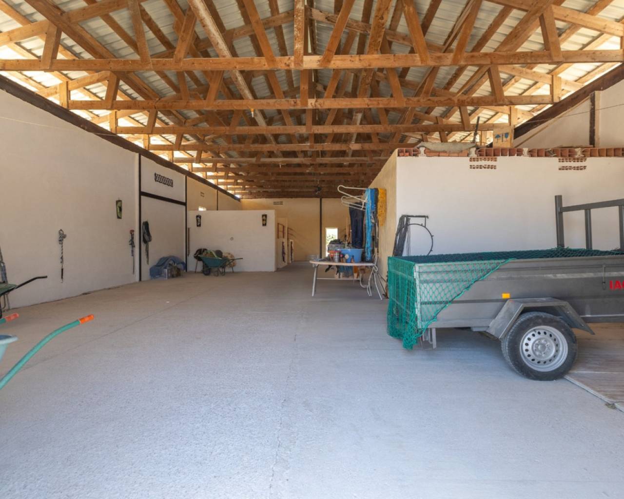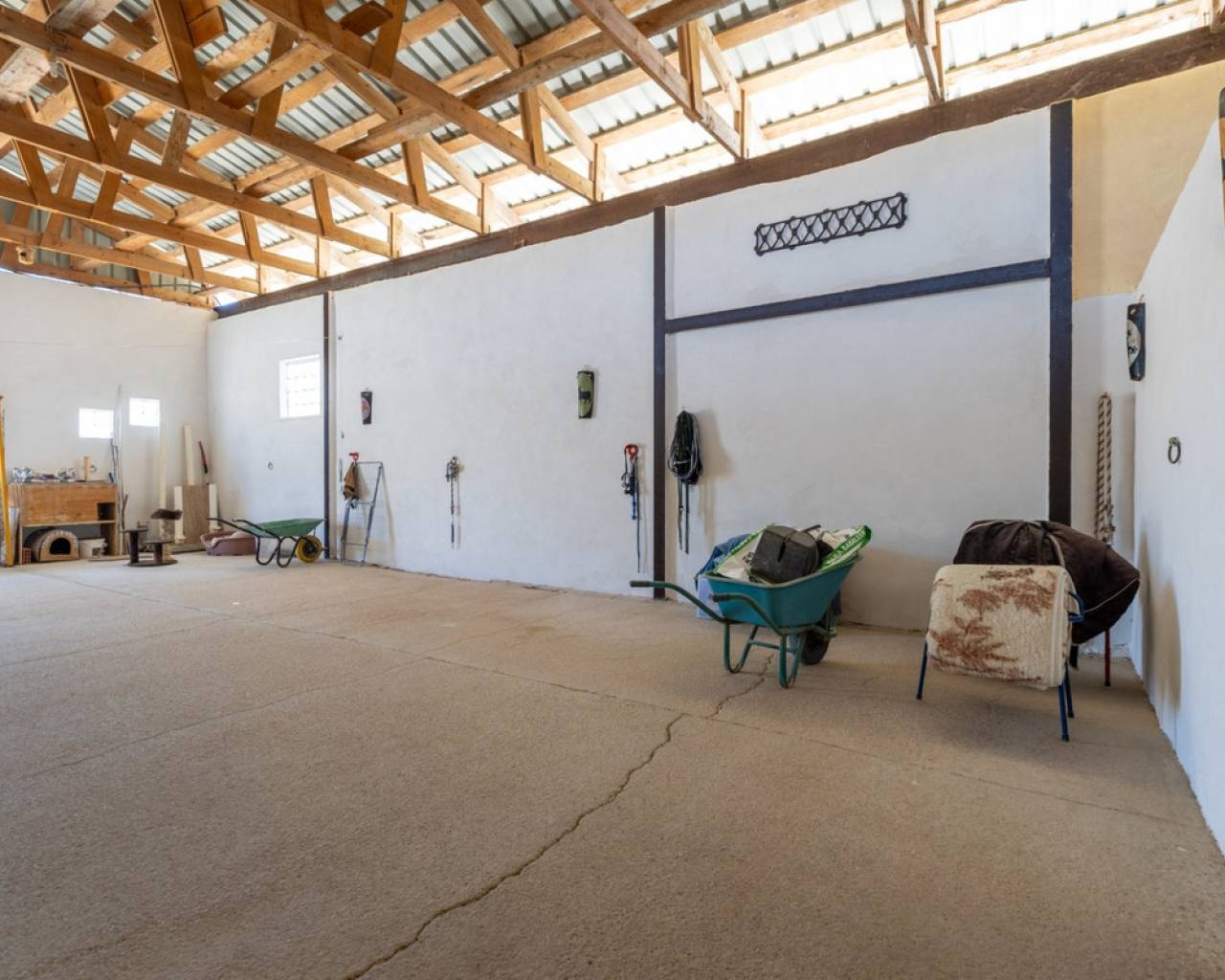 An absolute highlight of this property is the impressive 200 m² fully enclosed American-style barn, which was originally designed as a horse stable. This solid, multifunctional space currently features: