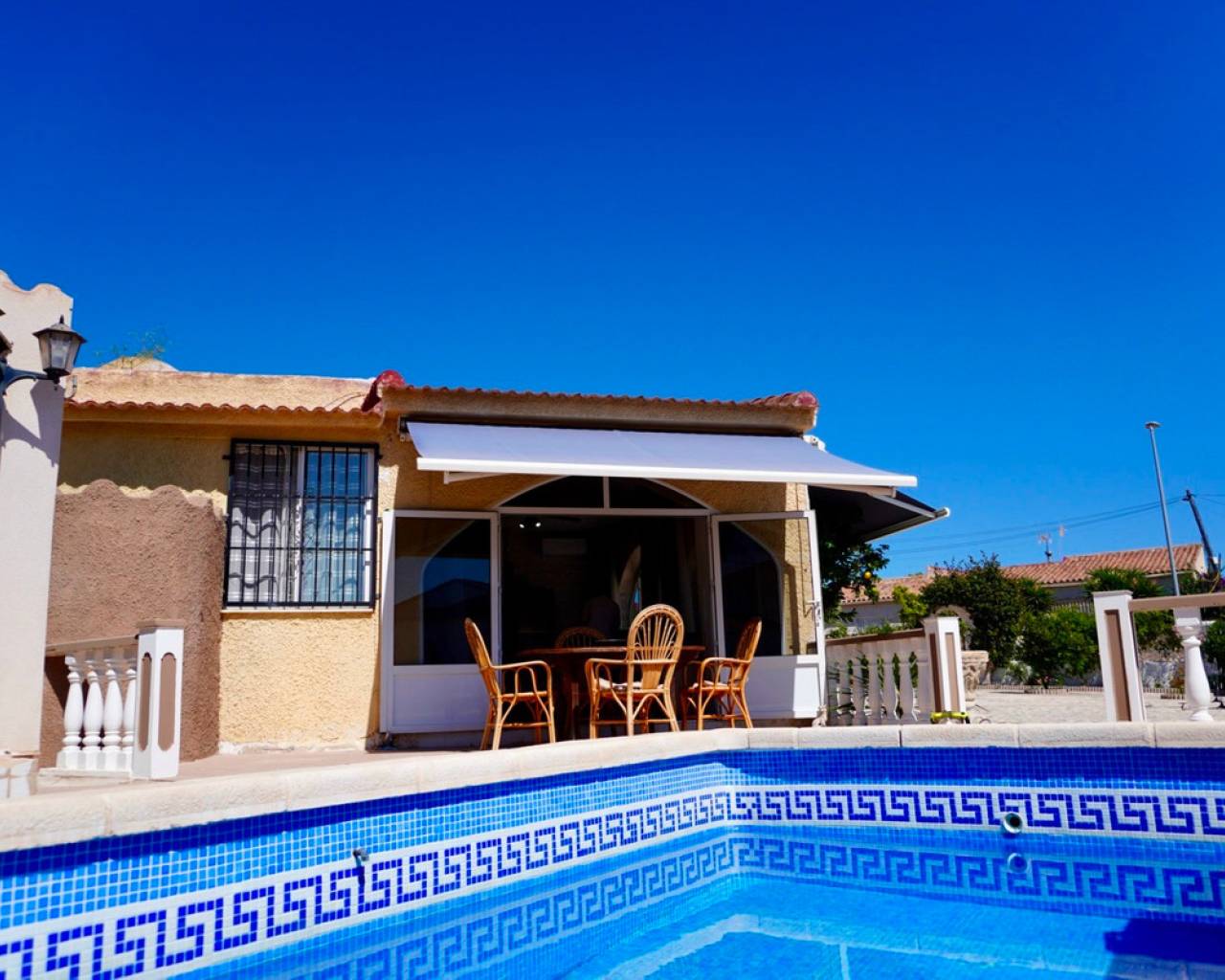 Renovated 5-Bedroom Villa with Private Pool and Garage in Quesada Town Centre Situated in a prime location right in the centre of Ciudad Quesada, this spacious 5-bedroom, 2-bathroom detached villa offers comfort, privacy, and convenience — all on a generous 800 m² south-east facing plot. The property is fully furnished and features a private swimming pool, a garage, multiple outdoor living areas, and has been recently renovated, making it an excellent move-in-ready home for permanent living or holidays. Property Features: 5 Bedrooms 2 Bathrooms Built Area: 210 m² Plot Size: 800 m² Private Pool Garage and additional off-street parking Solarium with open views Air Conditioning Units throughout Furnished Covered Terrace with awning for shade Barbecue Area Storage Room South-East Facing – ideal for morning and midday sun Located in a quiet yet central area, walking distance to shops, restaurants, and all local amenities This property combines space, location, and practicality — ideal for families or anyone looking for a larger home in one of the most desirable areas of Quesada. With a well-maintained plot and ample outdoor space, it's perfect for enjoying the Mediterranean climate all year round. Viewings by Appointment Contact us today for more information or to arrange a viewing.