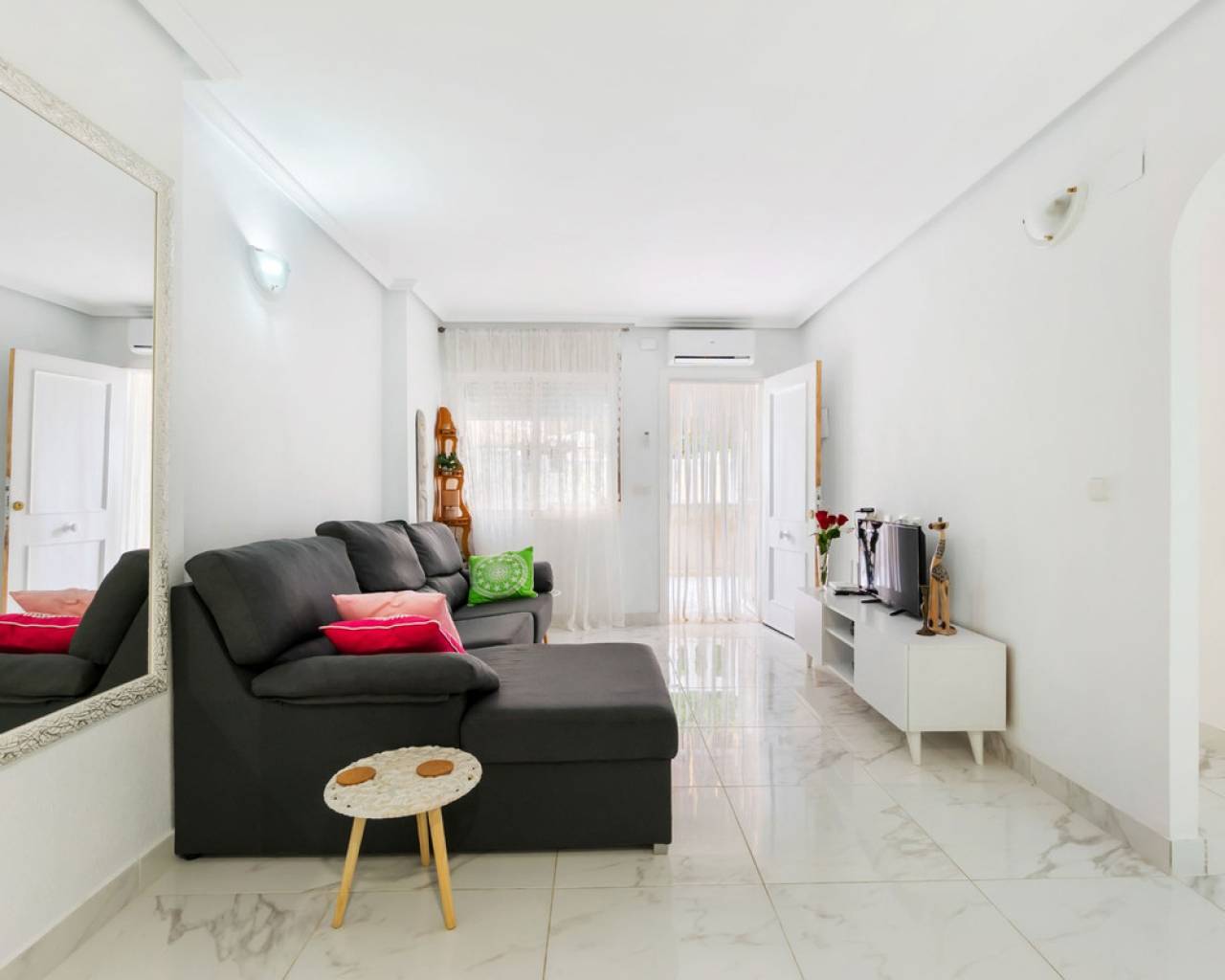 Renovated 2-Bedroom Ground Floor Apartment in Torrevieja Located in the peaceful and established area of Nueva Torrevieja, this ground floor 2-bedroom, 1-bathroom apartment is ideal for year-round living, a holiday home, or a solid rental investment. The apartment is set within a well-maintained residential complex that offers access to a communal swimming pool, and is situated on the ground floor for easy access. It features a modern bathroom with a walk-in shower, an updated kitchen, and new floor tiling, offering a clean and functional living space. One of the highlights of this property is the two private terraces — one at the front and one at the rear — allowing you to enjoy both morning and afternoon sun, relax outdoors, or use the space for extra storage or dining. The total built area is 62 m², providing a comfortable and practical layout. The apartment is well-connected by road and local transport. Supermarkets, cafés, and other essential services are just a short walk away. Property Features: 62 m² built 2 bedrooms air conditioning 1 bathroom with walk-in shower Renovated kitchen New floor tiles Ground floor – step-free access Two private terraces (front and rear) Communal swimming pool Quiet residential location in Torrevieja Easy access to shops, services, and public transport A great opportunity to own a move-in-ready property in a calm area of Torrevieja, offering both indoor comfort and outdoor space.