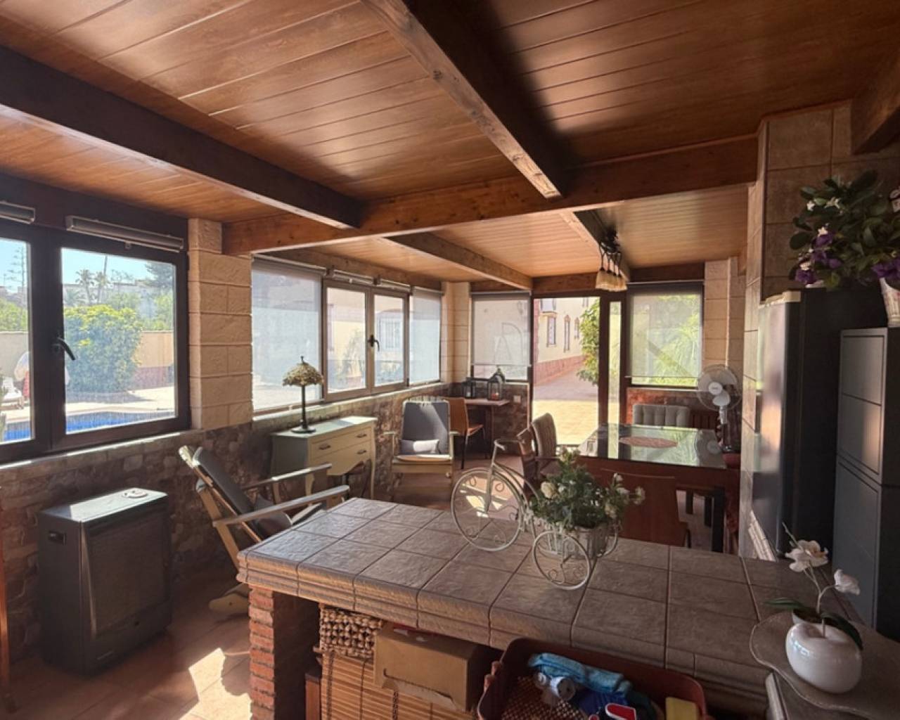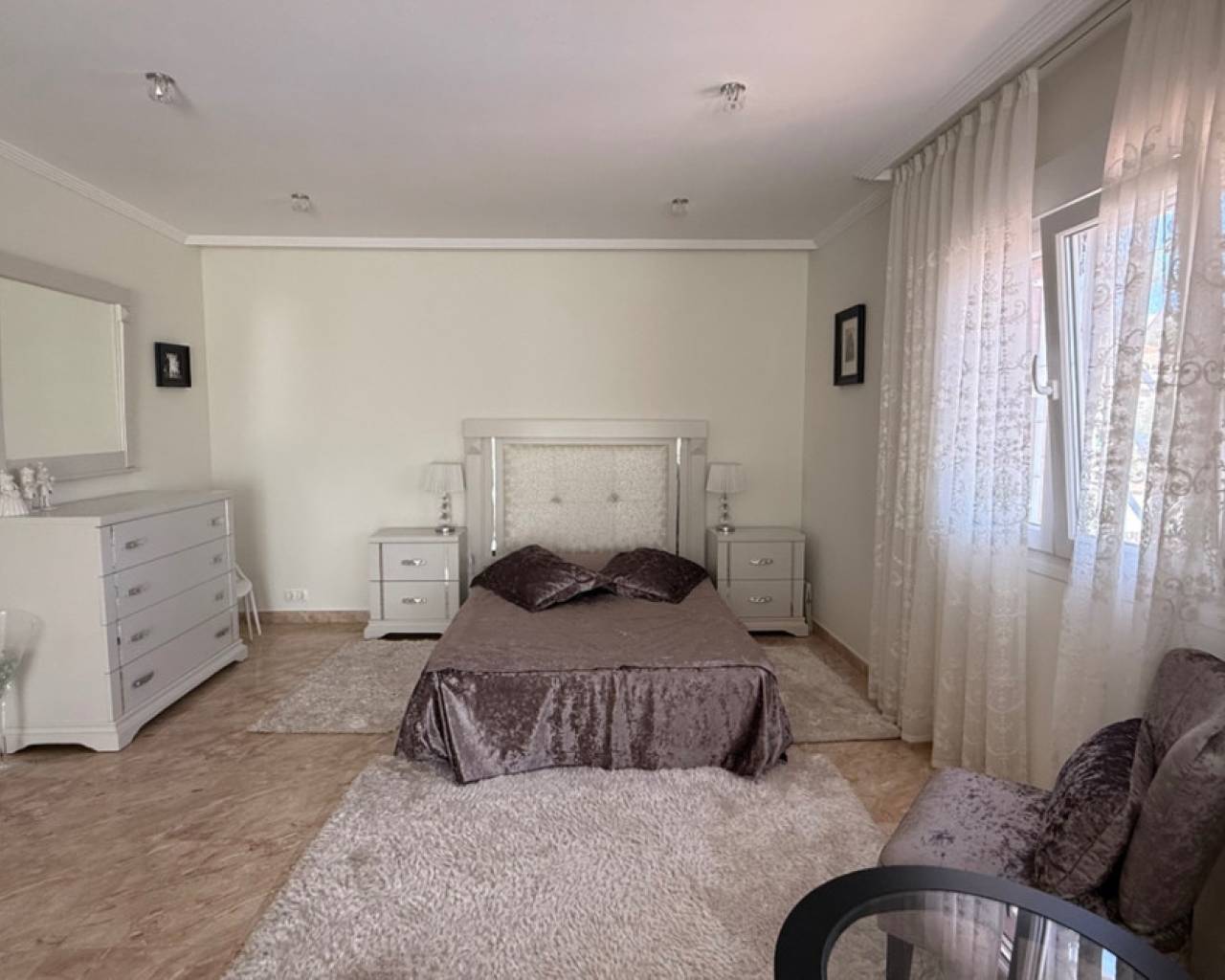 Impeccable 7-Bedroom Villa with Saltwater Pool in Los Balcones Discover this exceptional fully refurbished villa in the sought-after area of Los Balcones, set on a stunning 800m² plot that combines elegance, comfort, and space in perfect harmony. Originally renovated to the highest standards in 2017, this expansive property boasts 7 large bedrooms and 4 spacious bathrooms, making it ideal for large families or those seeking a luxurious retreat with ample accommodation for guests. At the heart of the property is a beautiful saltwater swimming pool, surrounded by lush landscaped gardens and multiple seating areas, perfect for soaking up the Mediterranean sun. A sun-drenched solárium provides sweeping views and the perfect spot for relaxing or entertaining. In addition to the main villa, the property features a self-contained studio apartment, offering privacy and flexibility—ideal for guests, rental income, or a home office. Every corner of this home reflects quality craftsmanship and modern design, with updated fixtures, stylish finishes, and a layout that blends indoor and outdoor living seamlessly. Located in a peaceful and well-connected residential area, close to beaches, golf courses, and all amenities, this is a rare opportunity to own a truly impeccable villa in one of the Costa Blanca's most desirable neighborhoods.