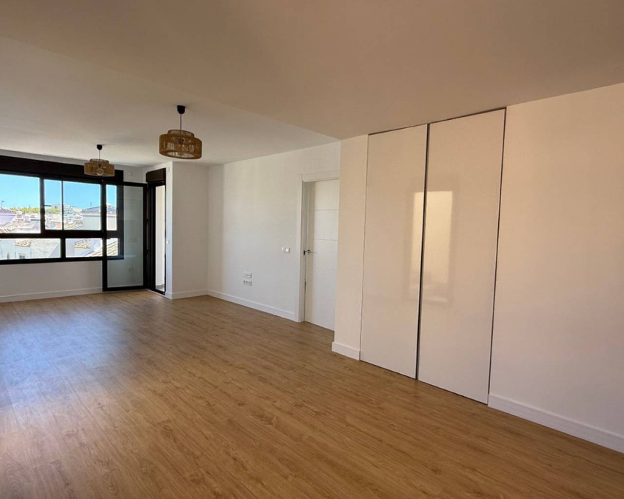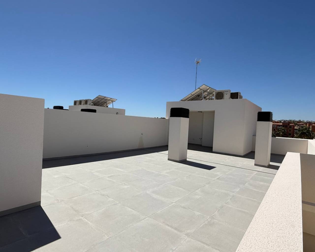 This stunning penthouse located in Orihuela Costa, in the captivating PAU 8 area, Villamartin, is the ideal retreat for those seeking a life full of comfort and beauty. With a layout that maximizes natural light and views, this space will become your personal sanctuary. Distribution and SpacesThe penthouse features two cozy bedrooms, perfect for resting after a day exploring the vibrant life of the area. Every corner has been designed with your comfort in mind. The two bathrooms are equipped for optimal functionality, providing an intimate and relaxing space. The wooden flooring adds an extra touch of quality. With a generous size of 80 m² built, the open design of the kitchen integrates with the living room, creating a fluid environment perfect for entertaining, whether preparing dinner with friends or enjoying a quiet family meal. Additionally, the kitchen is equipped with pre-installation for air conditioning, ensuring that hot days are comfortable and enjoyable. Terrace and ViewsOne of the jewels of this penthouse is its charming 10 m² terrace, facing southeast. Imagine enjoying a morning coffee while feeling the gentle sea breeze, or simply relaxing in the sun with a good book. This outdoor space is perfect for sharing unforgettable moments with friends and family under the blue sky of the Costa Blanca. It also features a private solarium of 60 m² that includes a roof and pre-installation for building an outdoor kitchen with water and electricity connections. Amenities and ServicesThe building has a communal swimming pool, providing you with endless moments of fun and relaxation under the sun. Convenience extends to the building's facilities, which include an alarm system for your peace of mind, a spacious parking space in a closed and private garage, a storage room for additional storage, and a convenient elevator that facilitates access to your home. The property is in a prime location, with good communication links allowing you to enjoy everything Orihuela and the surrounding areas have to offer. From beautiful beaches to a rich cultural and culinary offering, everything will be within your reach. A Place to Call HomeThis penthouse is not just a place to live; it is an opportunity to enjoy a full life in one of the most sought-after areas of Alicante. Here you will find the perfect balance between serenity and activity, where each day can be a new adventure. Don't miss the chance to visit this beautiful home, where the combination of good taste and functionality creates a truly special space.