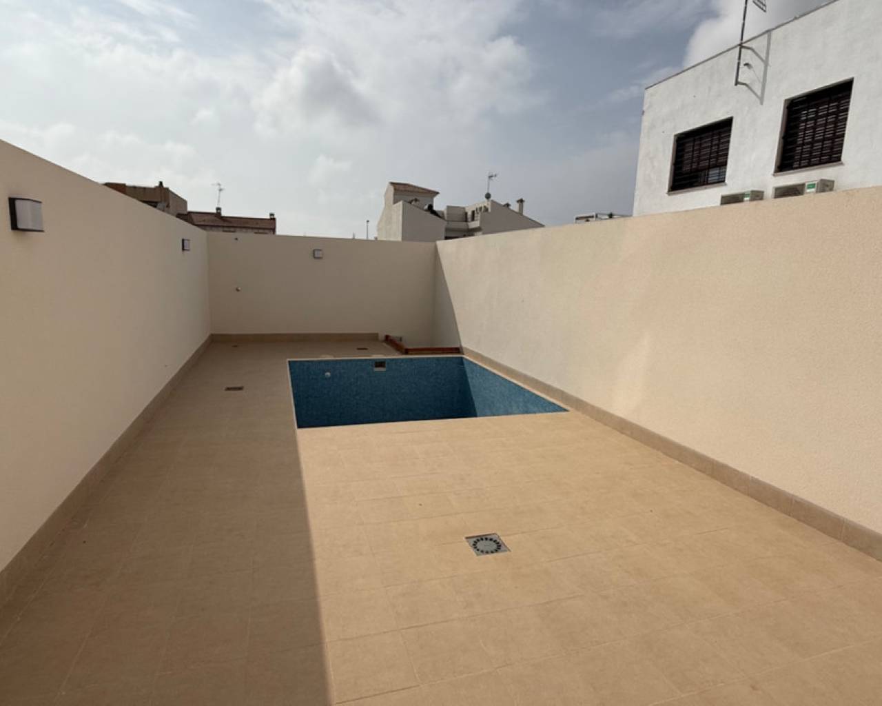 Modern 3-Bedroom Adosado with Private Pool – Built in 2024 Discover exceptional privacy and tranquility in this sleek, newly built (2024) modern adosado. Featuring 3 bedrooms and 2 bathrooms, the home offers 120 m² of living space on a 130 m² plot. The fully enclosed back garden boasts a beautiful private pool, allowing you to relax and bathe in total seclusion—completely shielded from outside view. Designed for modern comfort and peaceful living, this property is a perfect escape from the everyday. With developments like this rising quickly, Pilar de la Horadada is set to become a completely transformed city in the coming years, as more and more builders shape it into one of the most desirable spots on the Costa Blanca.