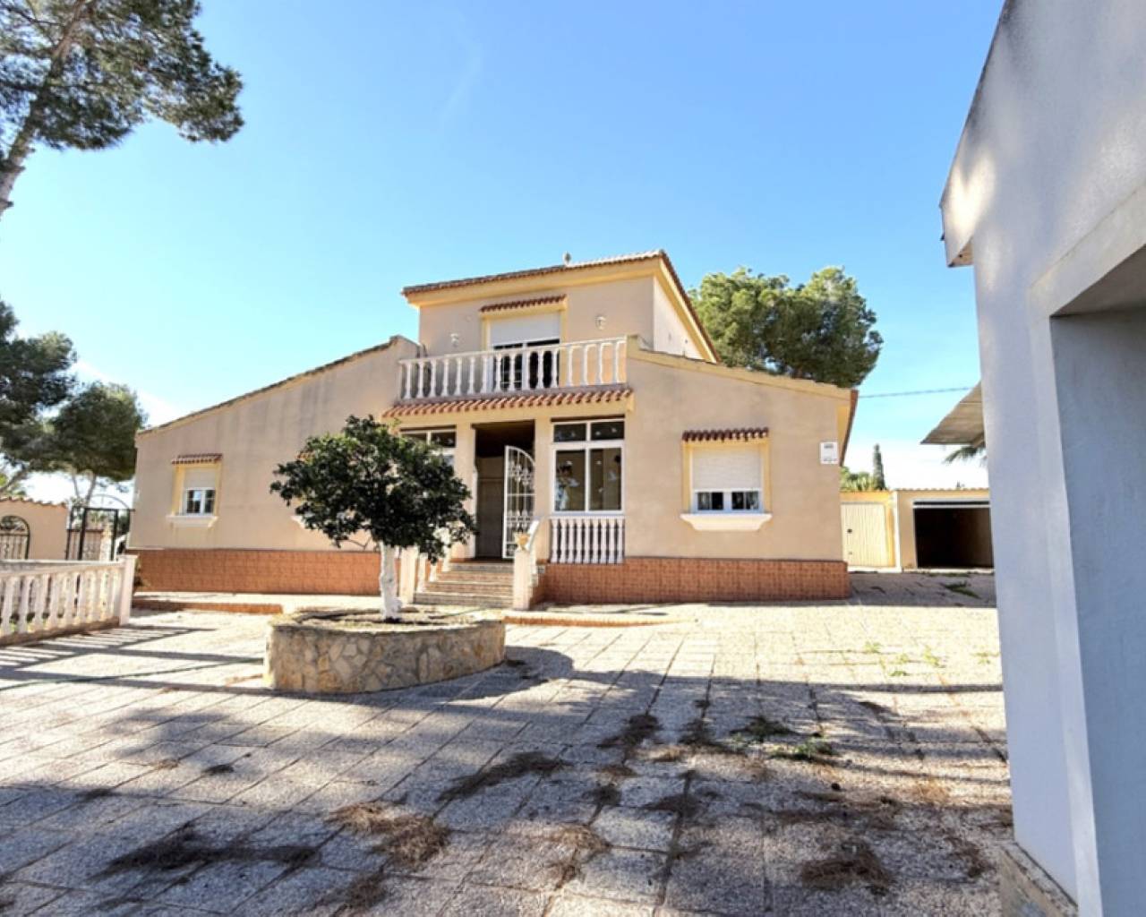 Welcome to Your Dream Home in Costa Blanca Sur Discover the charm of this exquisite detached house nestled in the beautiful city of Pilar de la Horadada, a gem in Alicante's stunning Costa Blanca Sur region. This property embodies the perfect blend of traditional style and modern comforts, promising a luxurious lifestyle enveloped in serene surroundings. Spacious Living Areas With a generous built area of 257 square meters, this residence offers ample space for both relaxation and entertainment. The thoughtfully designed layout features four well-proportioned bedrooms and three bathrooms, ensuring comfort and convenience for family and guests alike. Each living area embraces the beauty of natural light, thanks to the southeast orientation that bathes the interiors in warm sunshine. Outdoor Oasis Set on a remarkable 1030 square meter plot, the outdoor spaces of this property are truly spectacular. The private pool invites you to unwind under the sun or enjoy refreshing dips on warm afternoons, while the beautifully landscaped garden creates a tranquil retreat. The open and covered terraces are perfect for al fresco dining or simply soaking in the vibrant surroundings. Imagine hosting barbecues with family and friends in your very own summer kitchen or enjoying peaceful evenings under the stars. Comfort and Convenience This home is equipped with modern amenities for comfortable living. The air conditioning system ensures a cool environment during the warm summer months, while the oil central heating offers warmth in the cooler seasons. Experience cozy evenings beside the fireplace, creating lasting memories with loved ones in a delightful atmosphere. Designed for Functionality The independent kitchen is a culinary haven, perfect for preparing everything from casual meals to gourmet dinners. The property also includes practical features such as a garage, storage room, and laundry room, adding ease to everyday living. Double-glazing windows enhance energy efficiency, providing you with peace of mind while lowering your environmental footprint. Security and Privacy With an enclosed plot, you have complete privacy to enjoy your outdoor haven. The outdoor shower is an added benefit for cleaning up after a day spent by the pool. The combination of these elements fosters an atmosphere of relaxation and security that you will appreciate. This detached house in Pilar de la Horadada is not just a property; it is a lifestyle waiting for you to embrace. With the vibrant culture of the Costa Blanca Sur region at your doorstep, this home offers a unique opportunity to own a piece of paradise in one of Spain's most desirable areas.